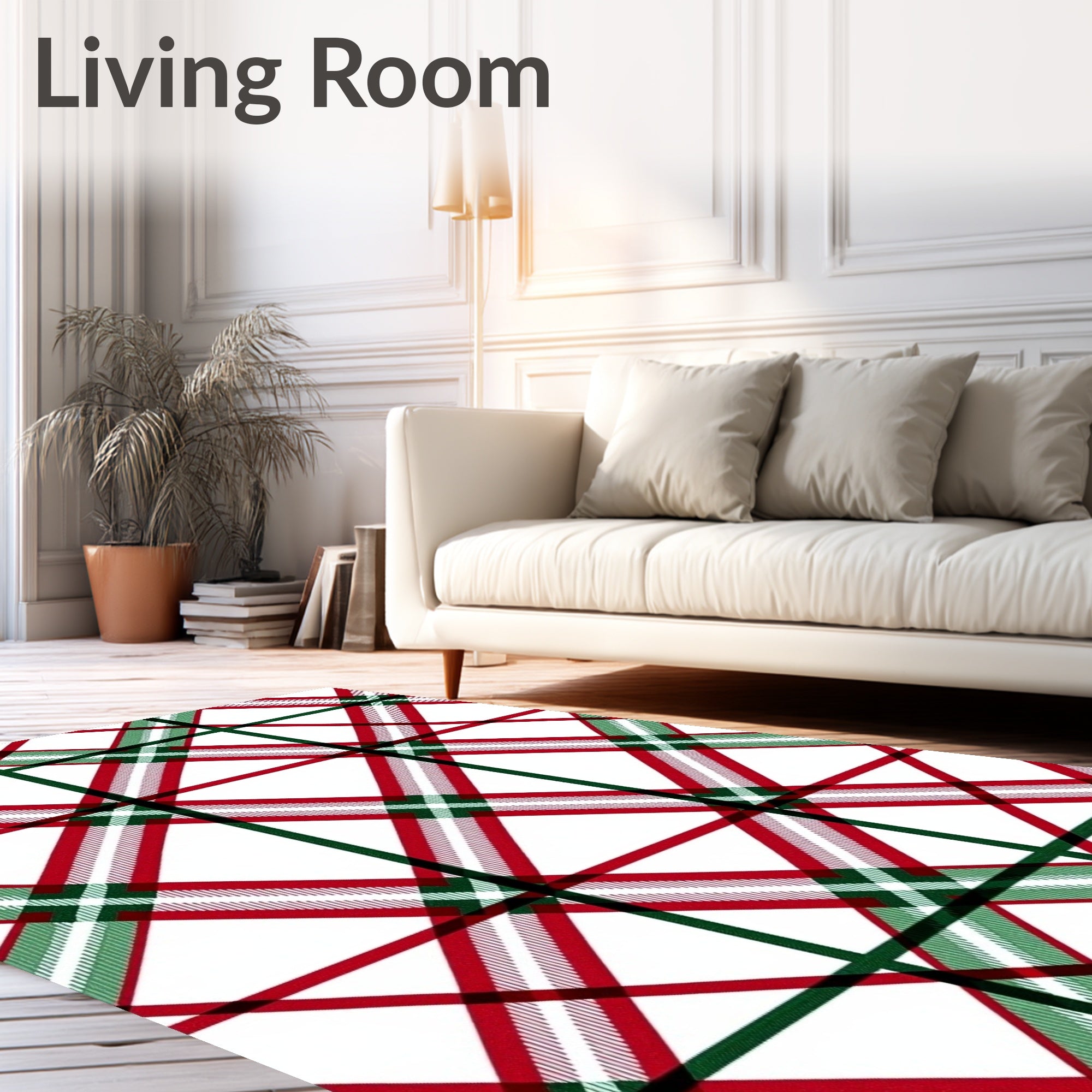 Ultra Soft Area Rug, Non Slip, Stain Resistant, Washable Area Rugs for Living Room, Bedroom, Festive Plaid Holiday Decorative Floor Covering(Red) Overview: