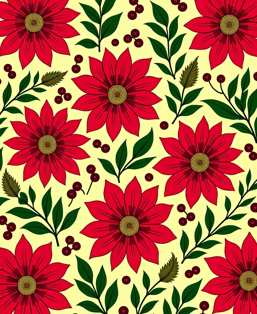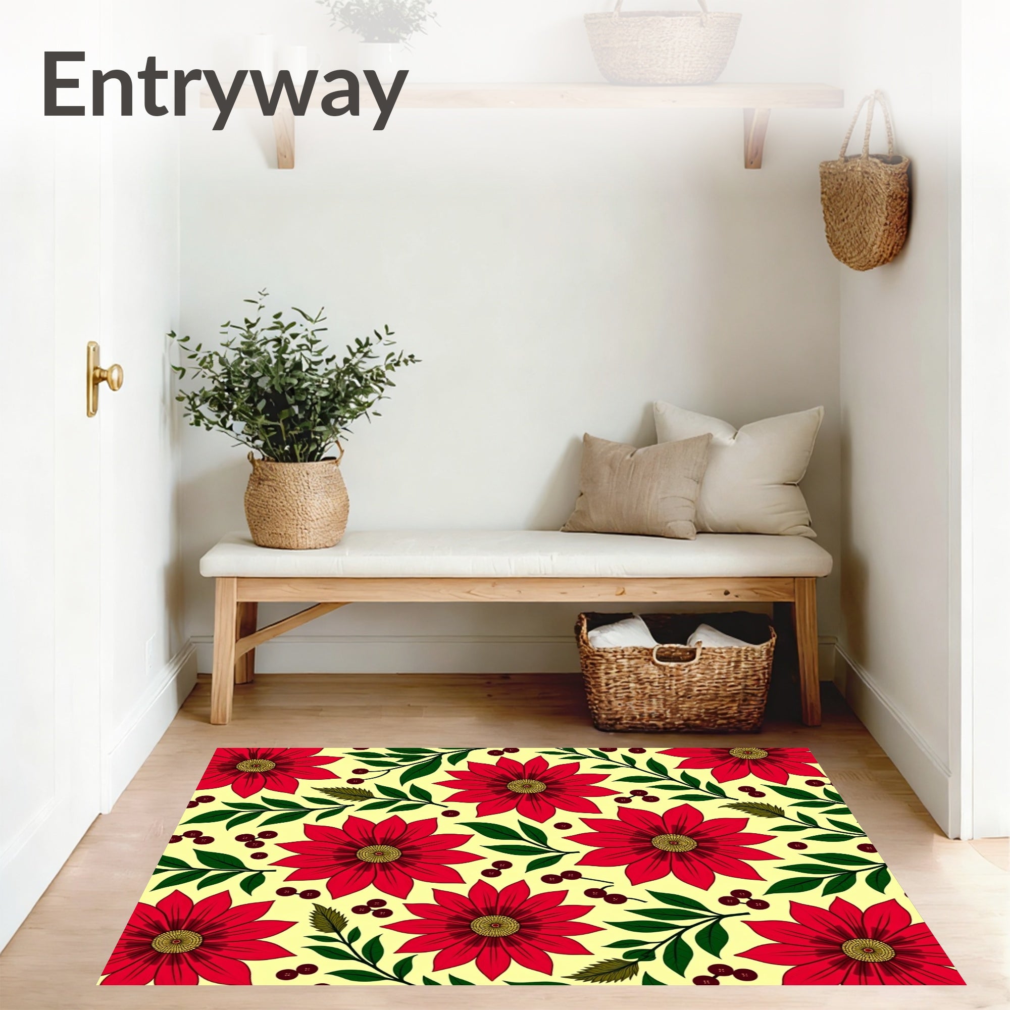 Festive Poinsettia Bloom Indoor Floor Covering with Floral Accents(Red)