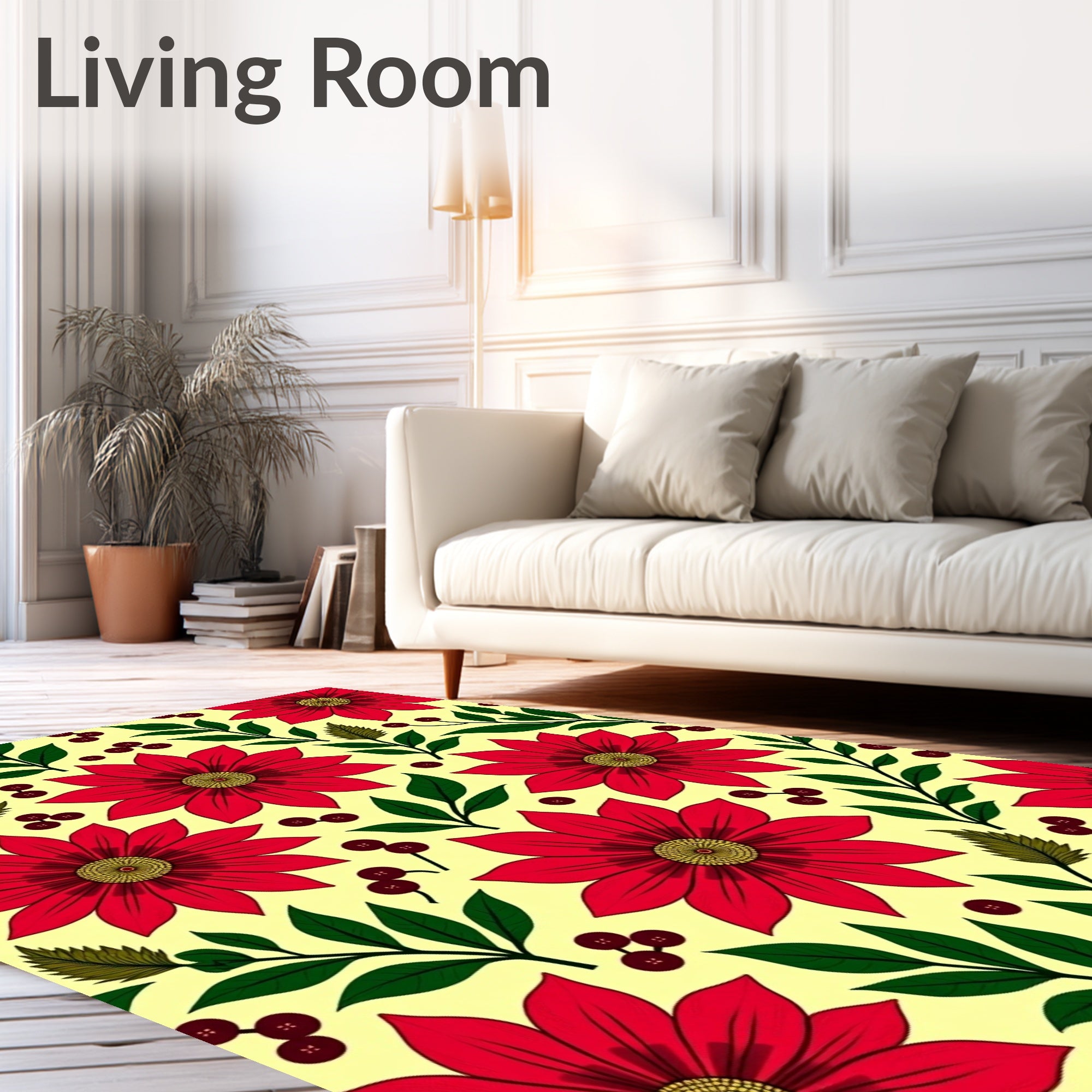 Ultra Soft Area Rug, Non Slip, Stain Resistant, Washable Area Rugs for Living Room, Bedroom, Festive Poinsettia Bloom Indoor Floor Covering with Floral Accents(Red) Overview: