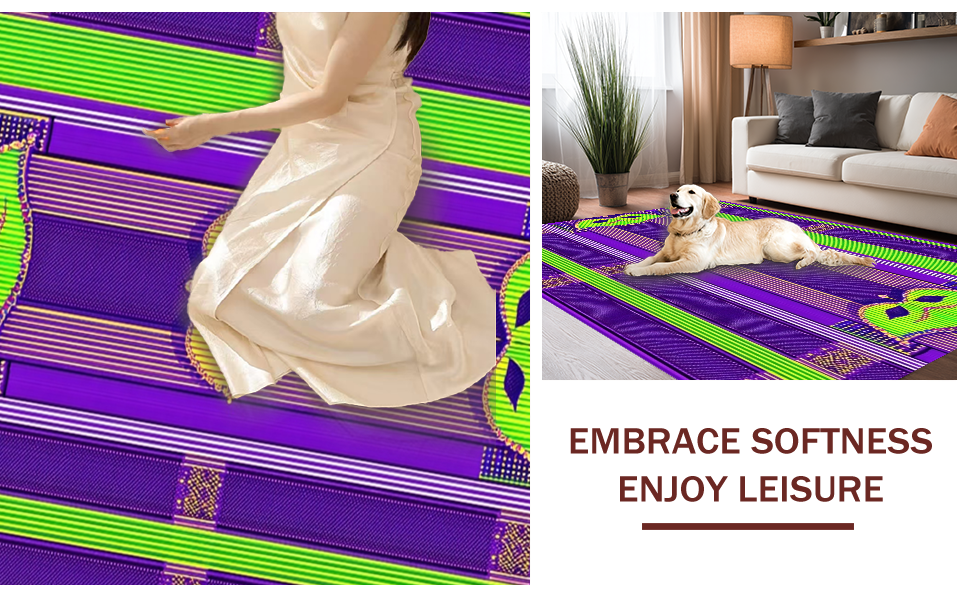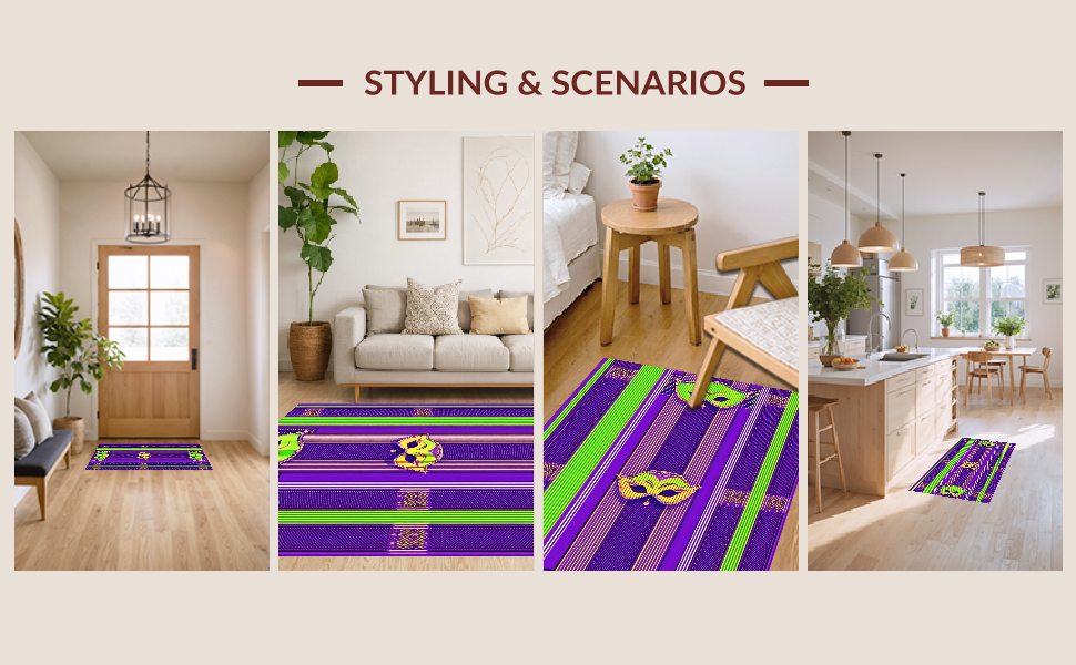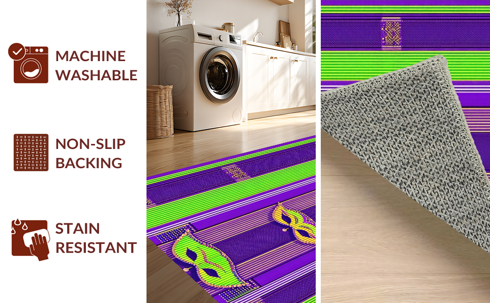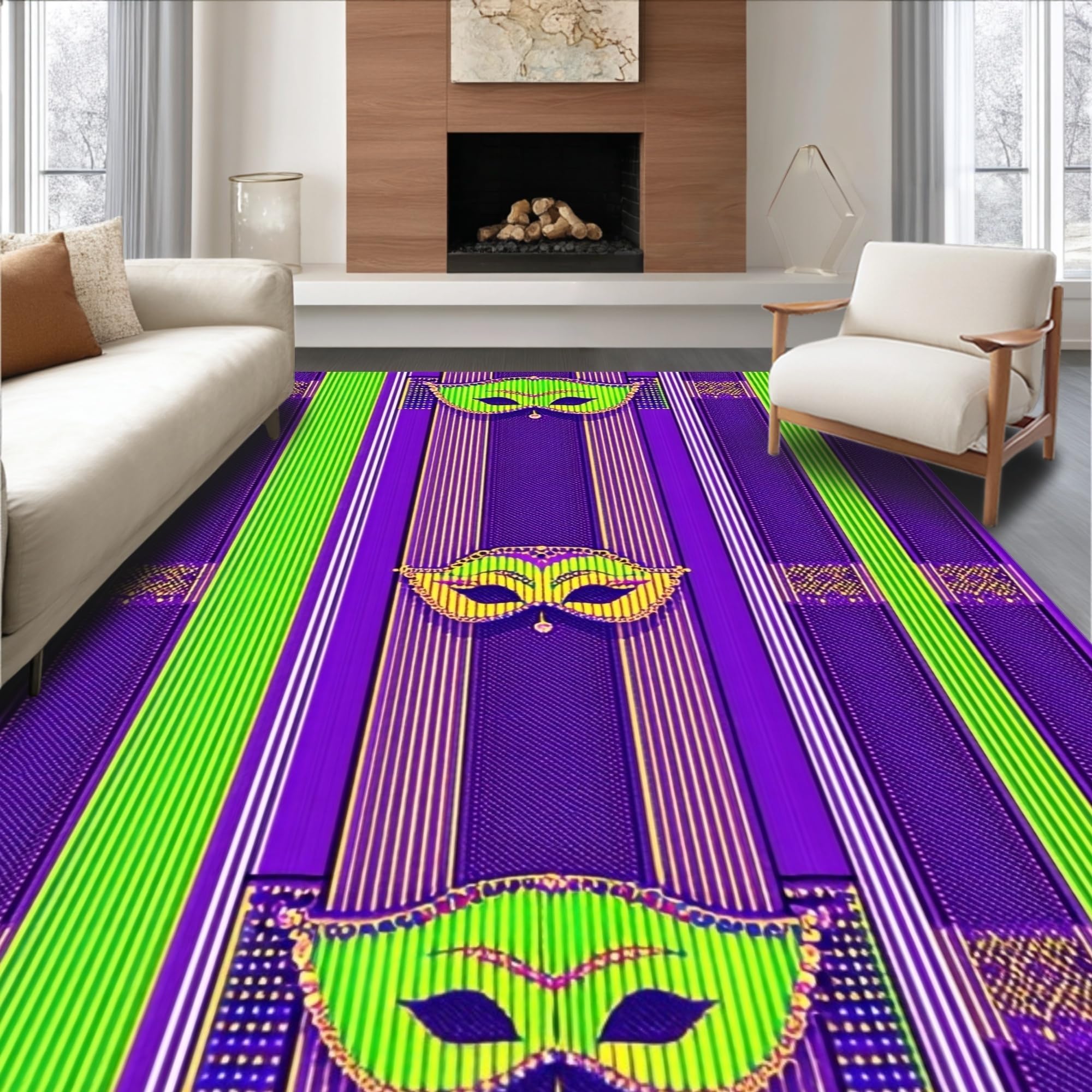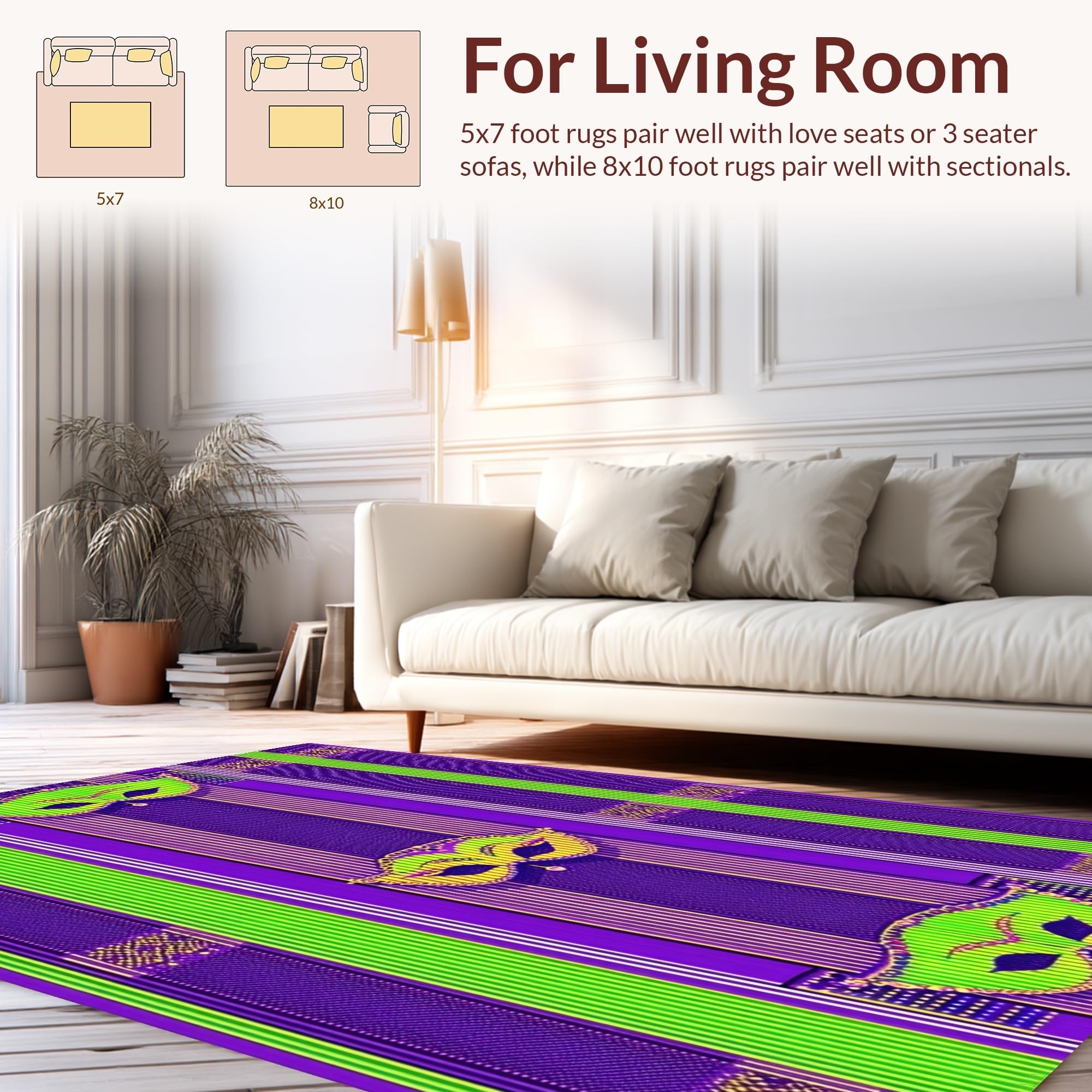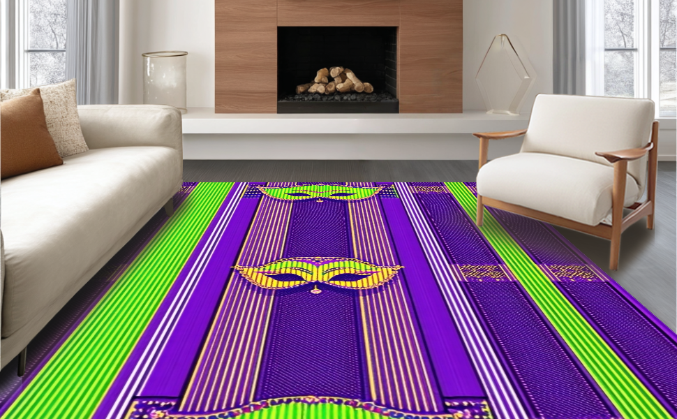 Ultra Soft Area Rug, Non Slip, Stain Resistant, Washable Area Rugs for Living Room, Bedroom, Festive Purple Green Striped Aesthetic(Green) Overview: