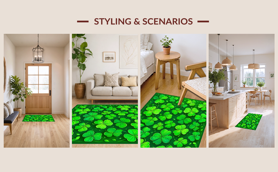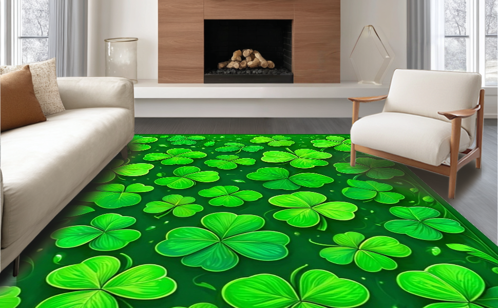 Ultra Soft Area Rug, Non Slip, Stain Resistant, Washable Area Rugs for Living Room, Bedroom, Festive Seasonal Geometric Design(Green) Overview: