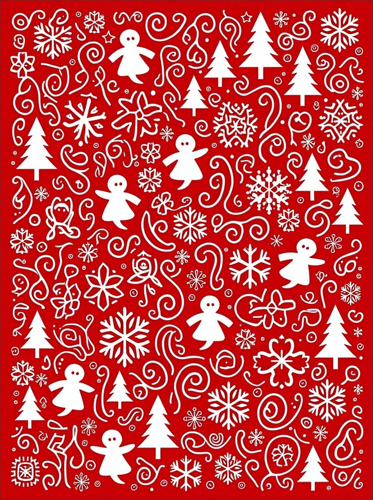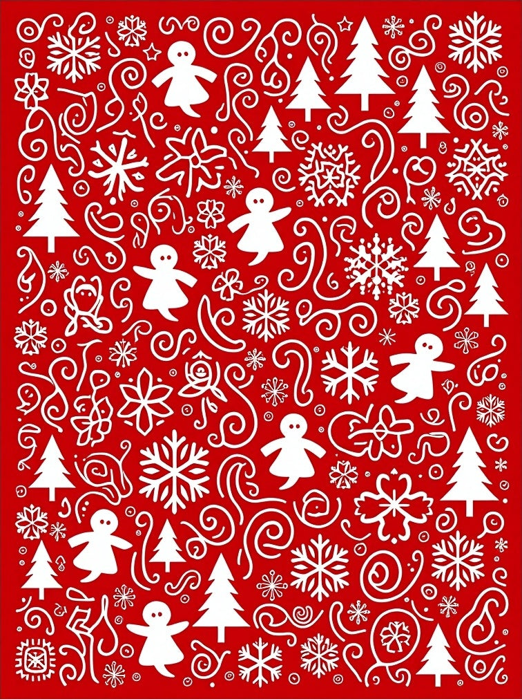 Festive Snowflake Cascade With Whimsical Winter Characters(Red)