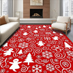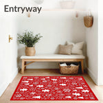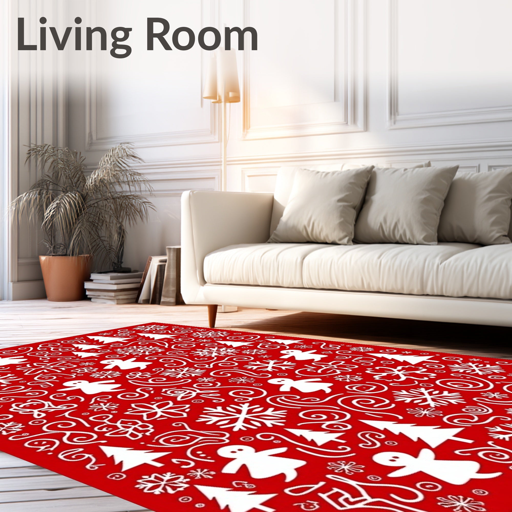 Ultra Soft Area Rug, Non Slip, Stain Resistant, Washable Area Rugs for Living Room, Bedroom, Festive Snowflake Cascade With Whimsical Winter Characters(Red) Overview: