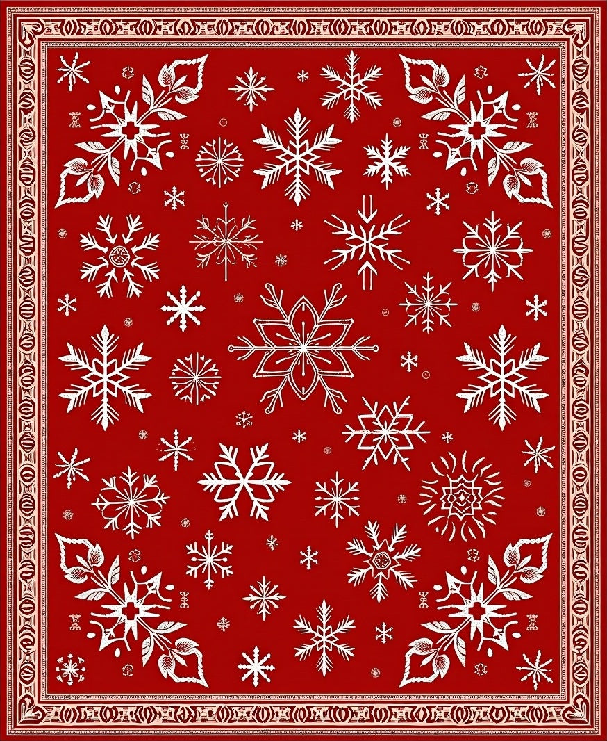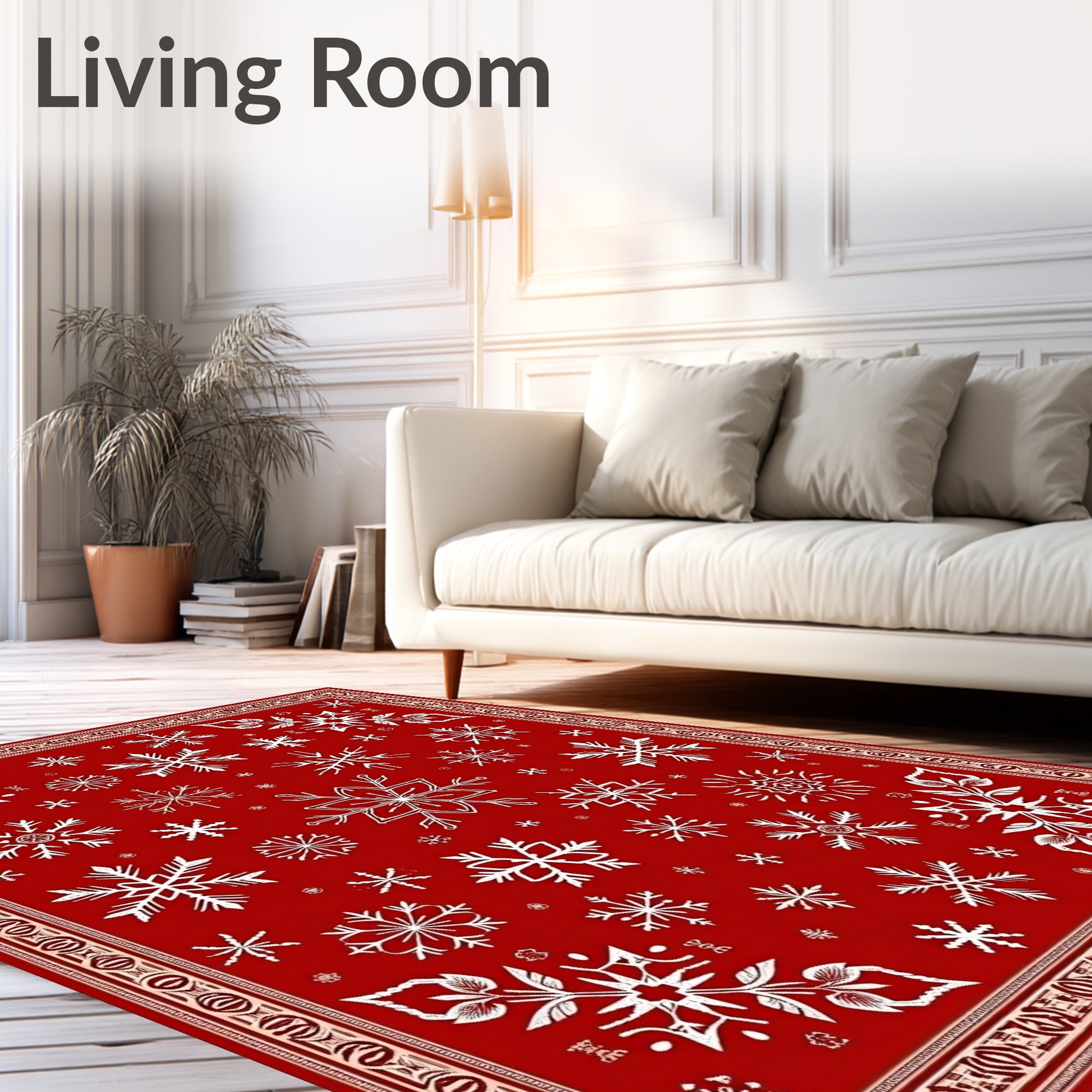 Ultra Soft Area Rug, Non Slip, Stain Resistant, Washable Area Rugs for Living Room, Bedroom, Festive Snowflake Entryway Welcome Holiday(Red) Overview: