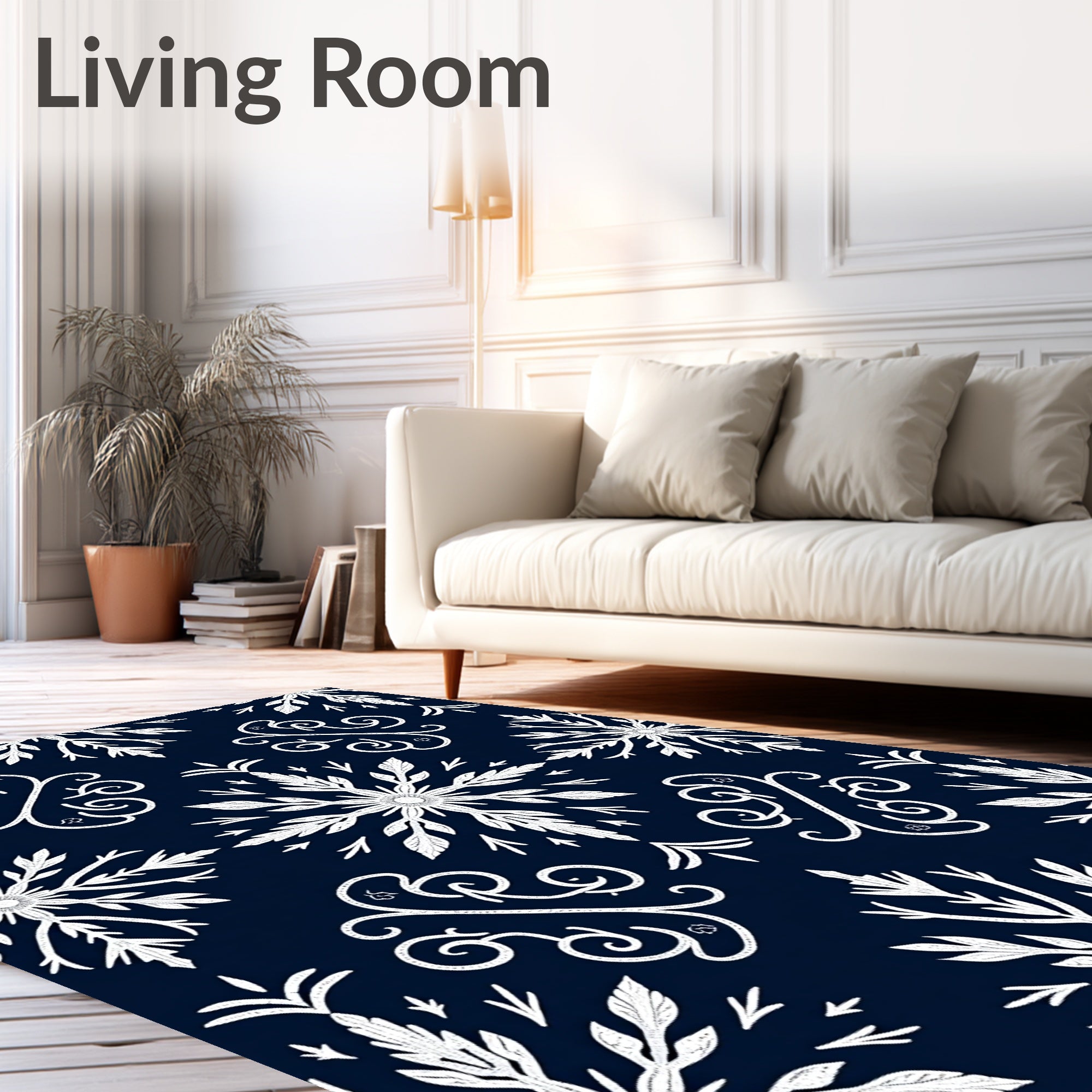 Ultra Soft Area Rug, Non Slip, Stain Resistant, Washable Area Rugs for Living Room, Bedroom, Festive Snowflake Winter Wonderland Semi Circle Welcome Entryway(Blue) Overview: