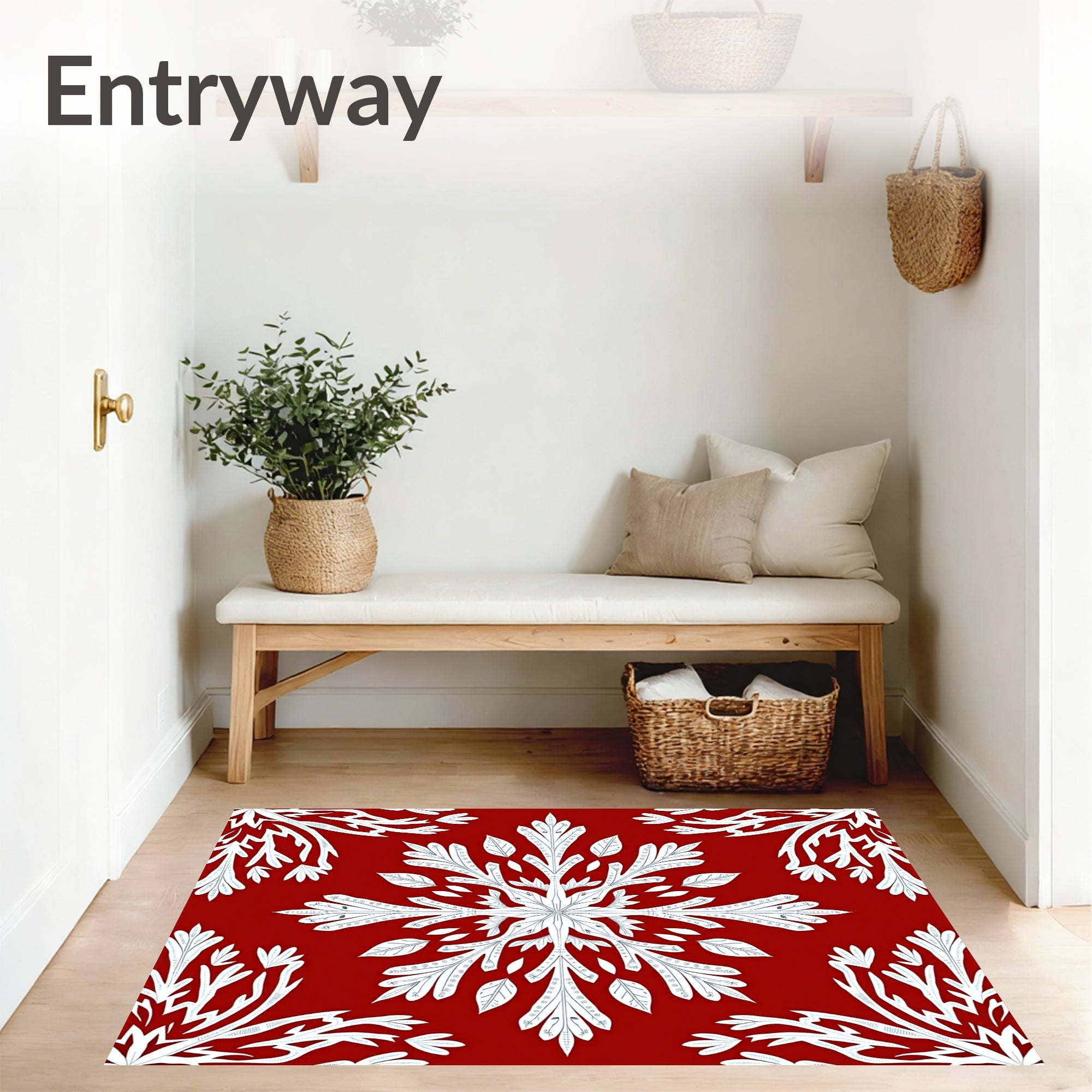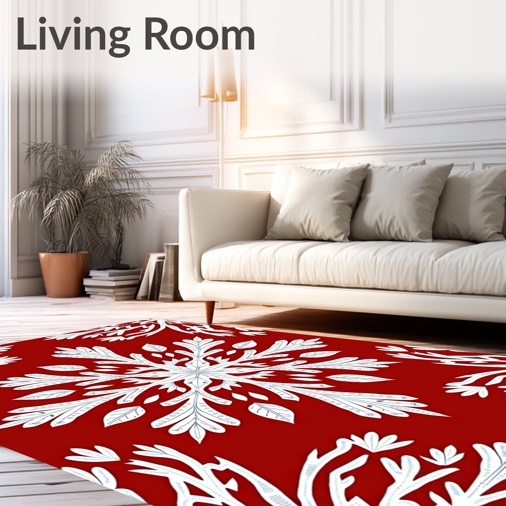 Ultra Soft Area Rug, Non Slip, Stain Resistant, Washable Area Rugs for Living Room, Bedroom, Festive Snowflake Wonderland Decorative Accent(Red) Overview: