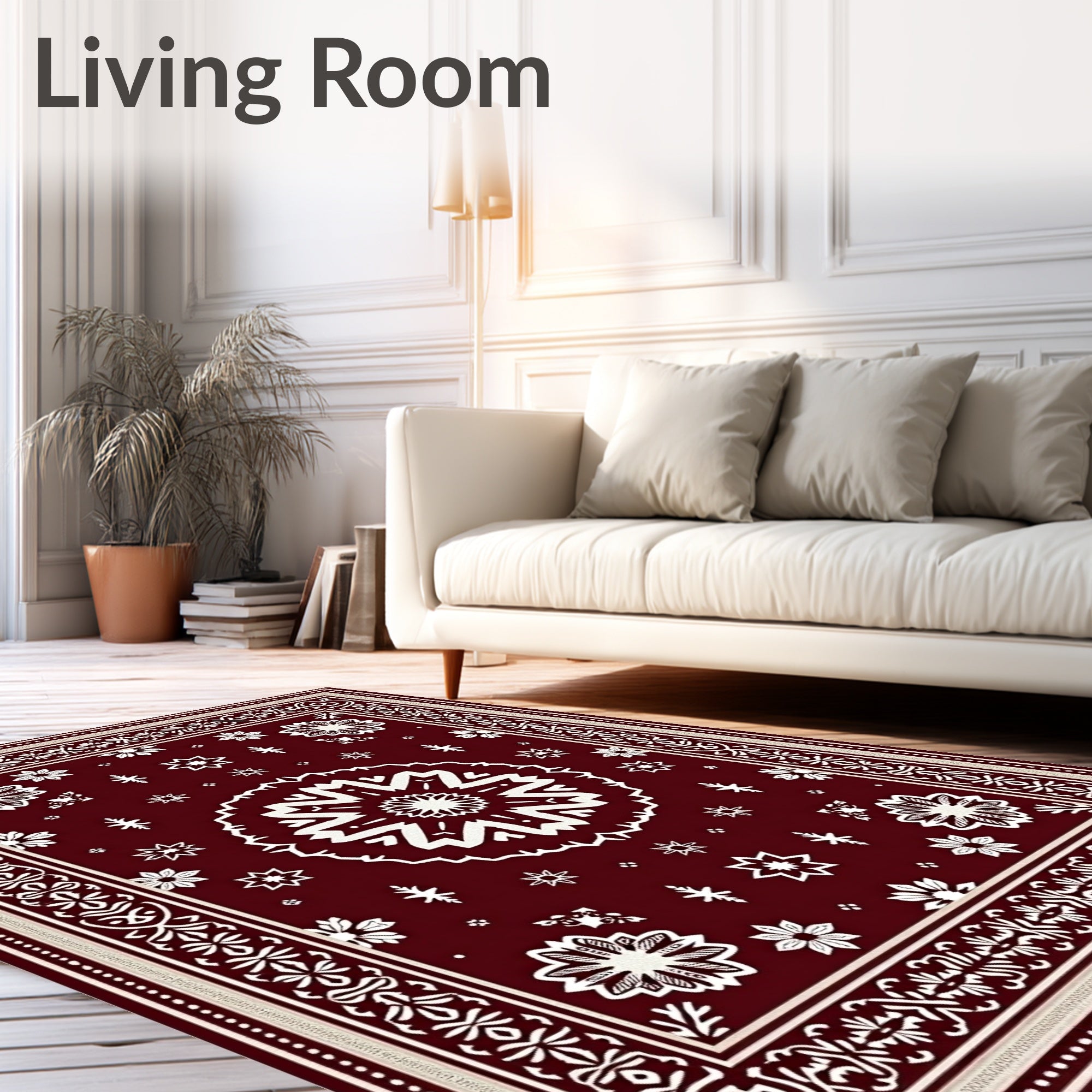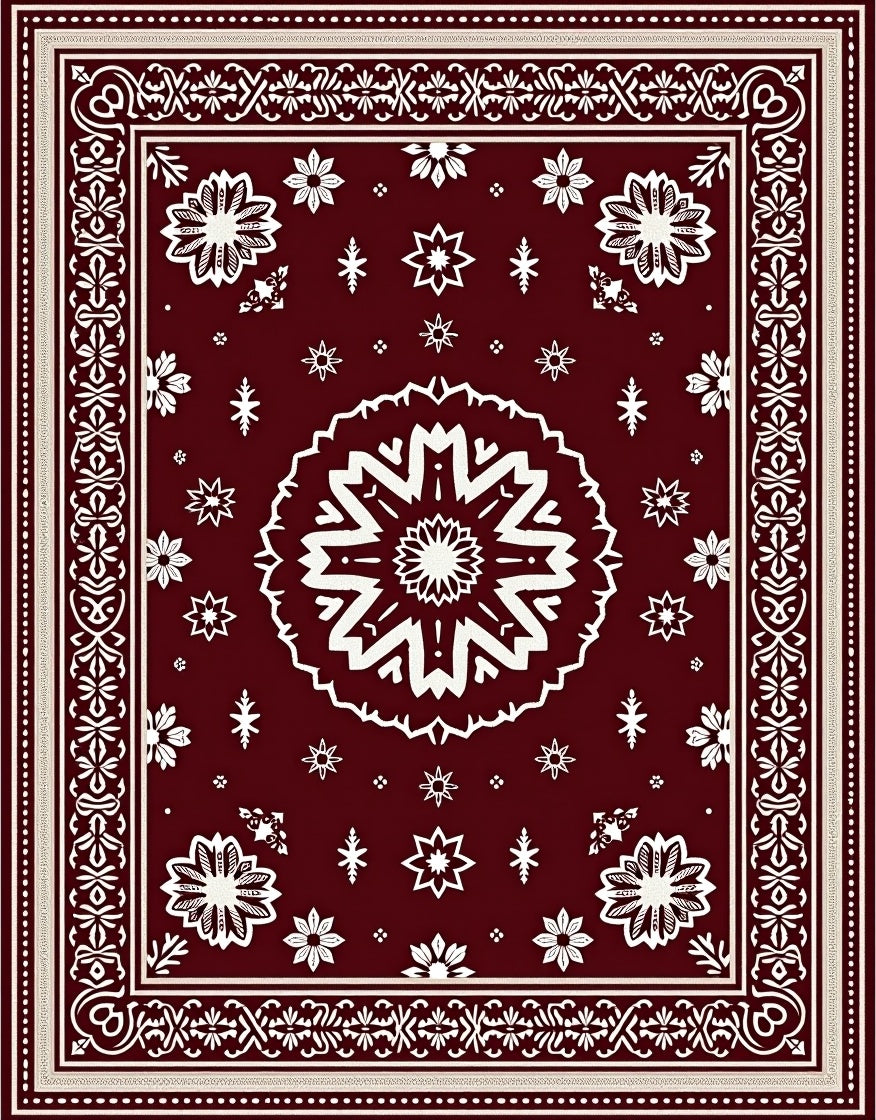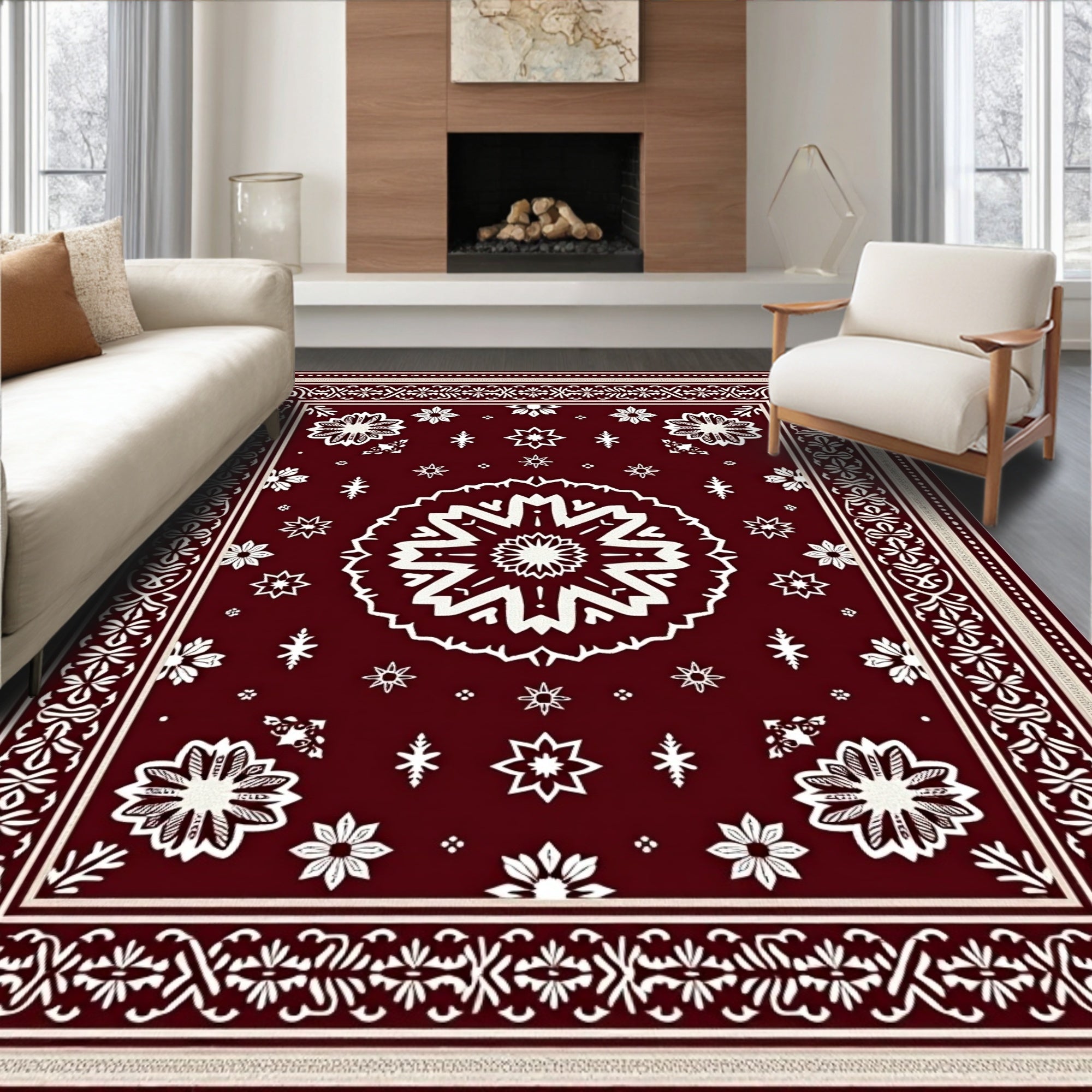 Ultra Soft Area Rug, Non Slip, Stain Resistant, Washable Area Rugs for Living Room, Bedroom, Festive Snowflake Wonderland Holiday Pathway Decoration(Red) Overview: