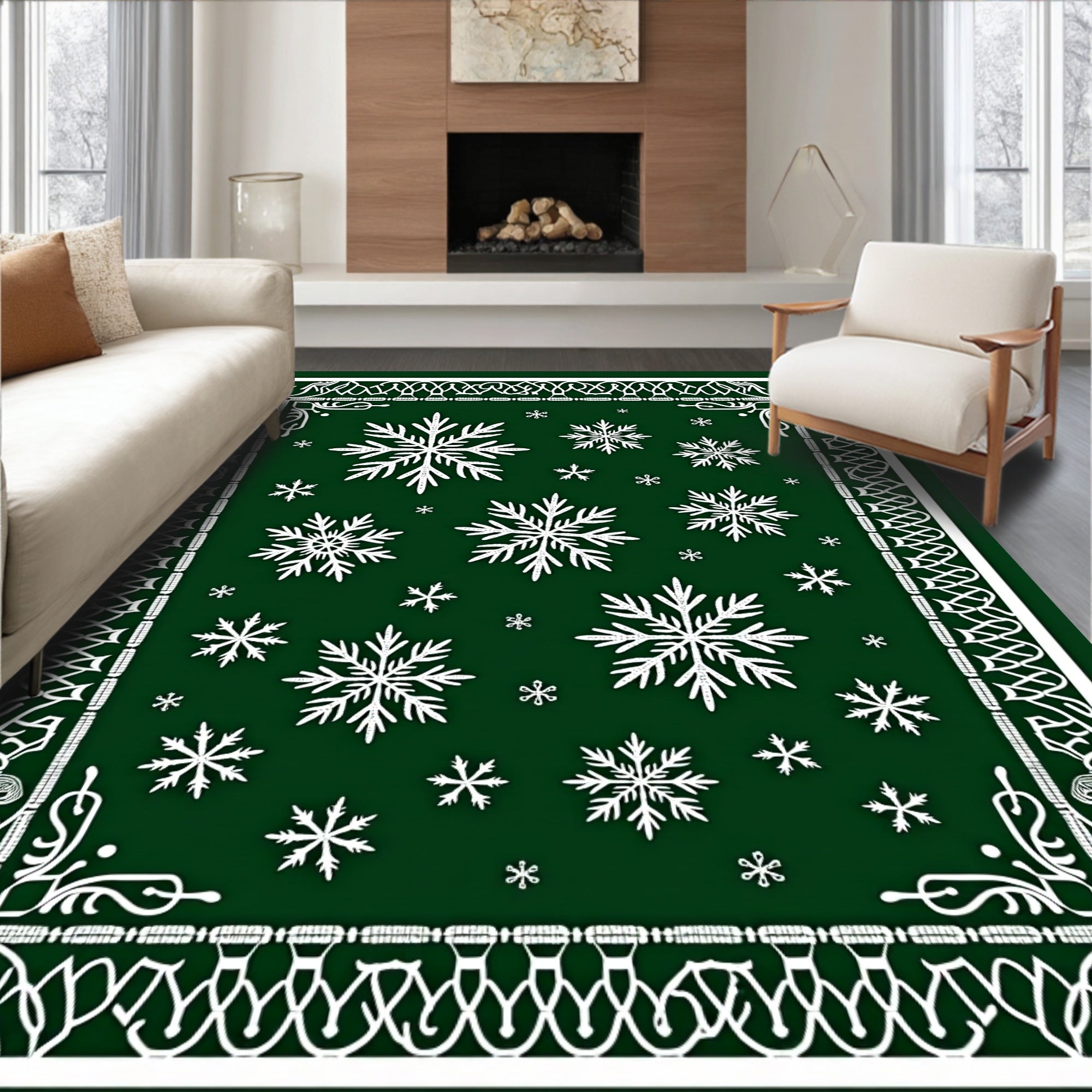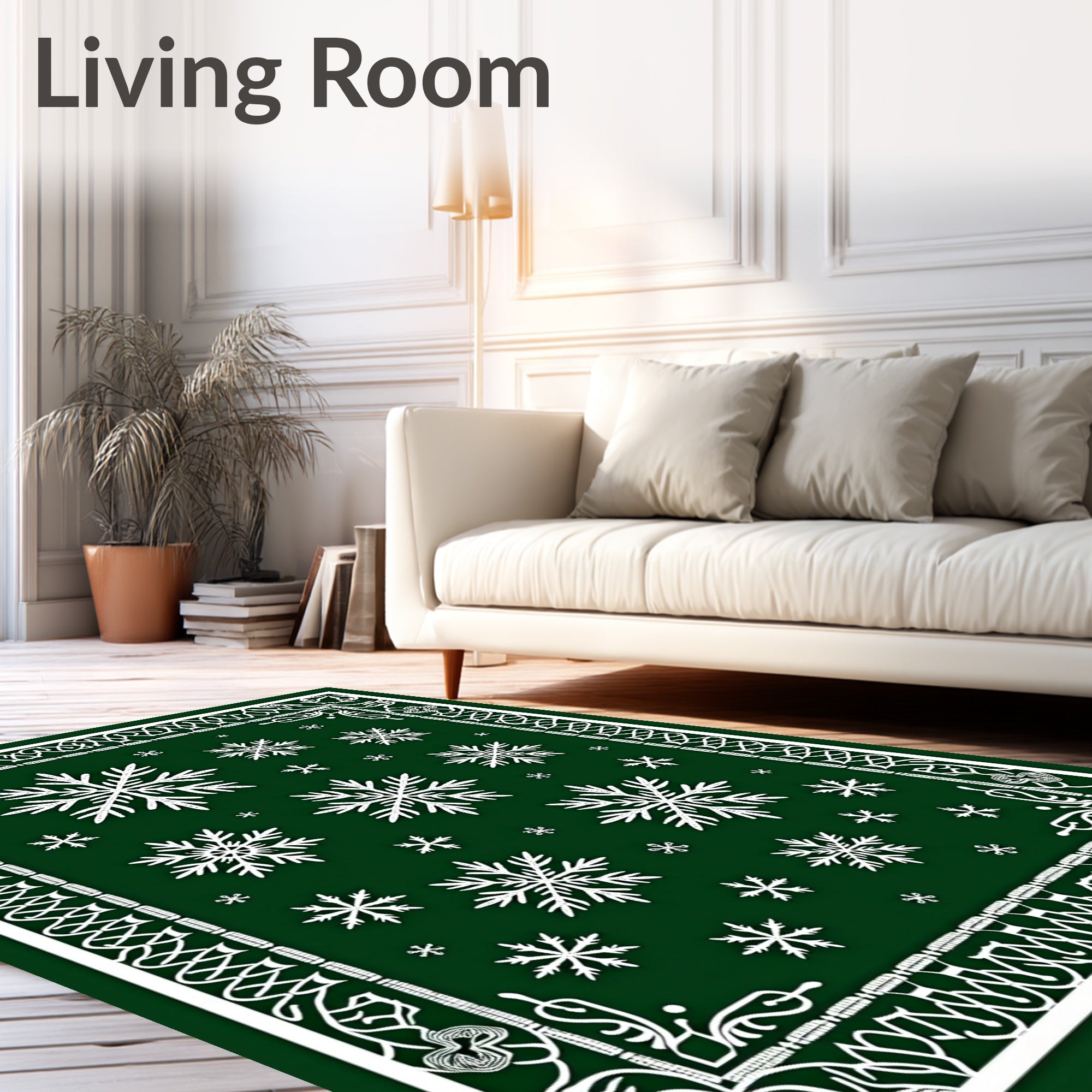 Ultra Soft Area Rug, Non Slip, Stain Resistant, Washable Area Rugs for Living Room, Bedroom, Festive Snowflake Wonderland Winter Holiday Doormat(Green) Overview: