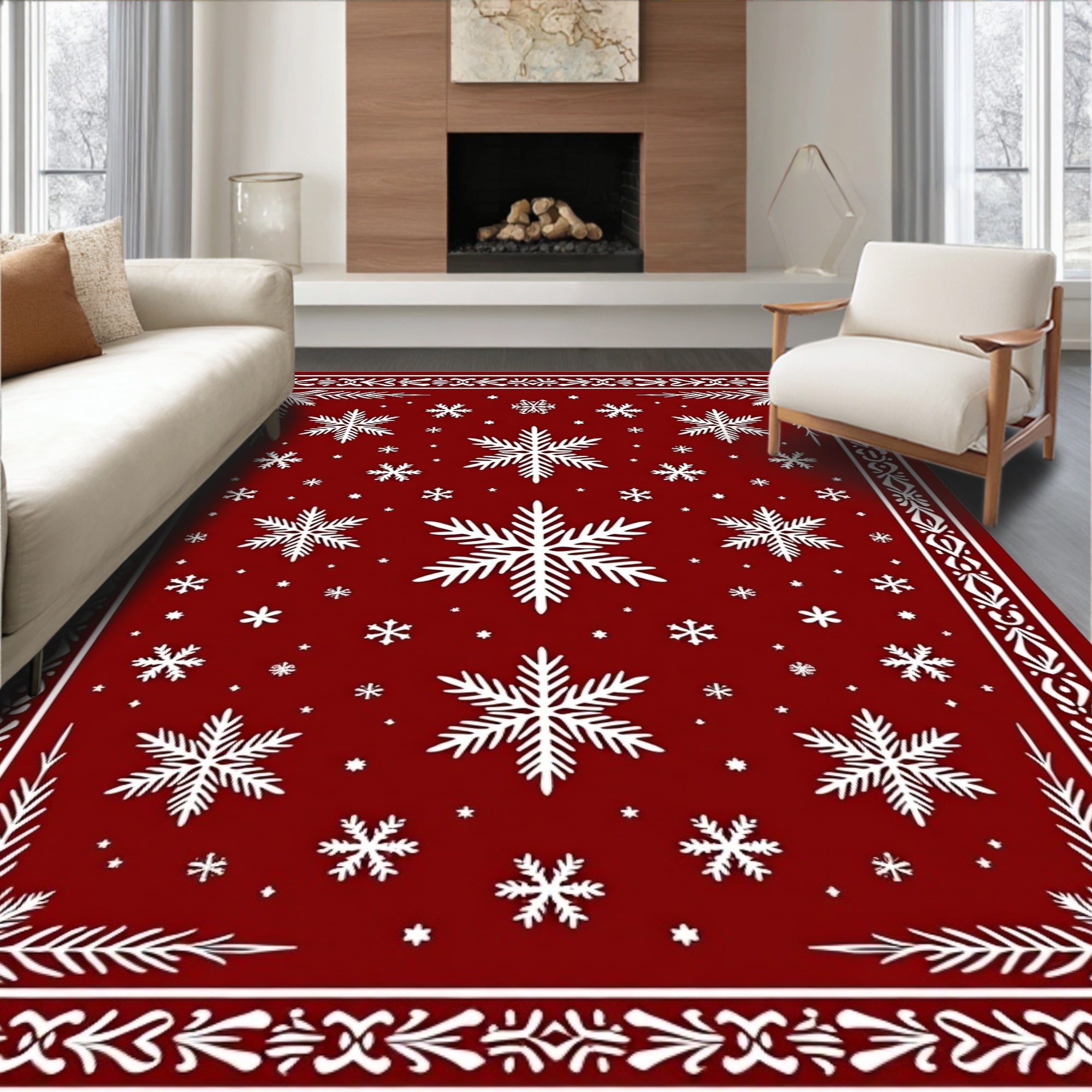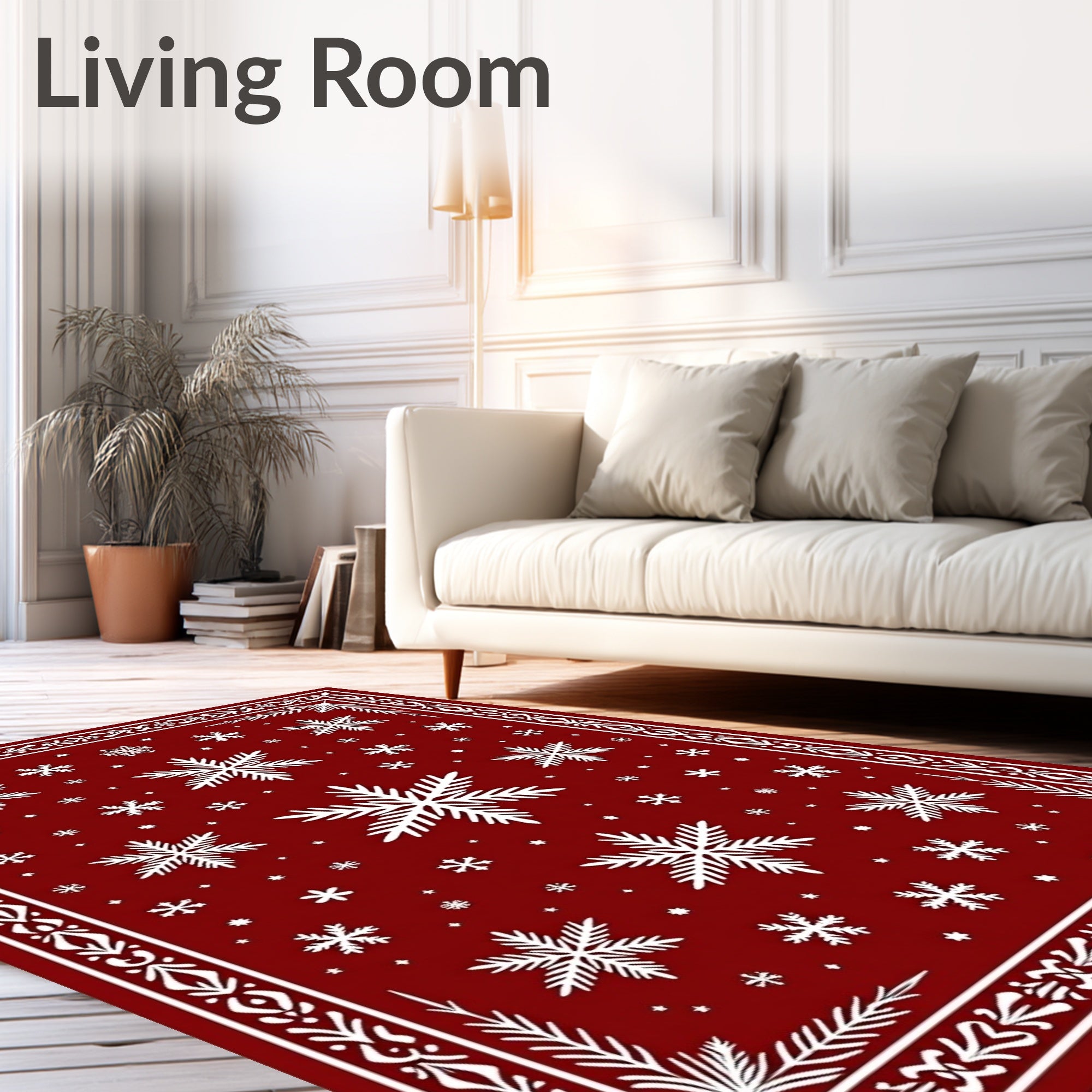 Ultra Soft Area Rug, Non Slip, Stain Resistant, Washable Area Rugs for Living Room, Bedroom, Festive Snowflake Wonderland With Elegant Holiday Motifs(Red) Overview: