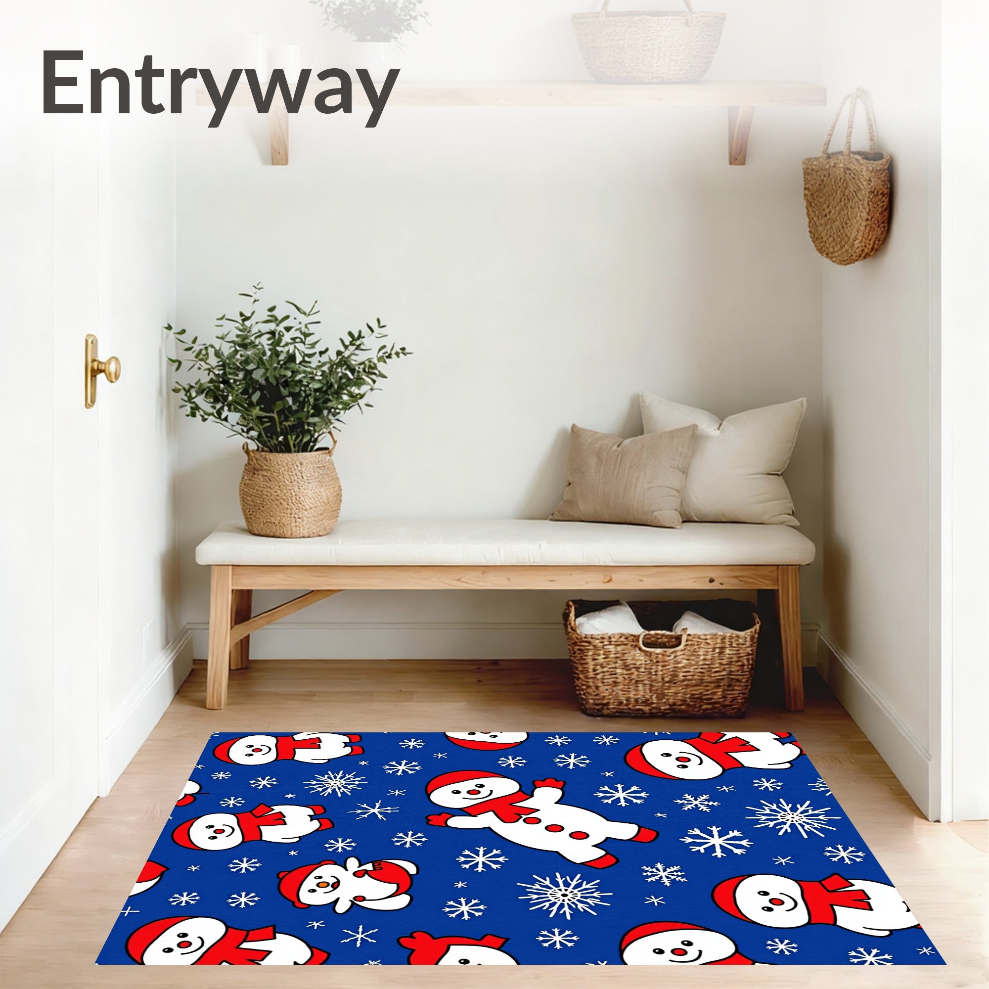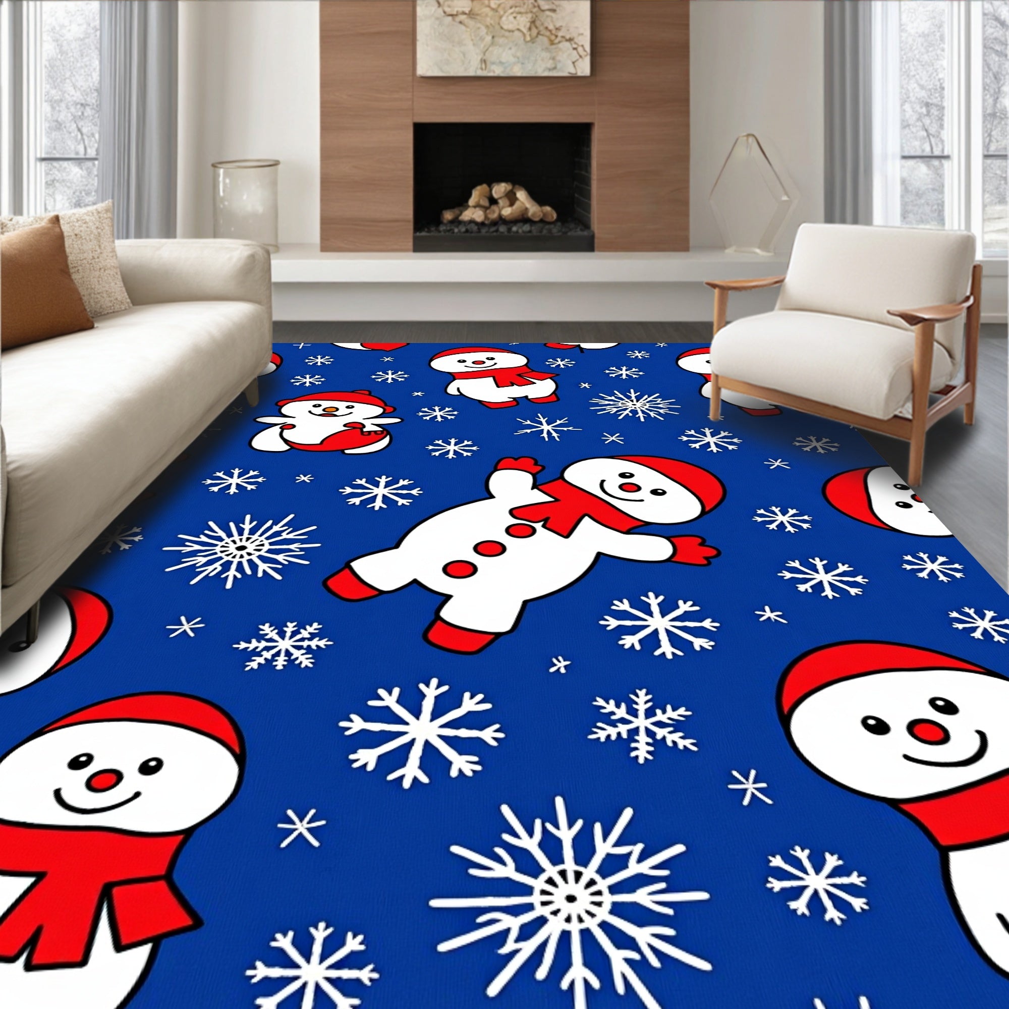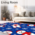 Flatwoven High Traffic Area Rug, Festive Snowman Holiday with Sparkling Winter Wonderland Design, Non Slip, Stain Resistant, Washable Area Rugs for Living Room, Bedroom (Blue) Overview: