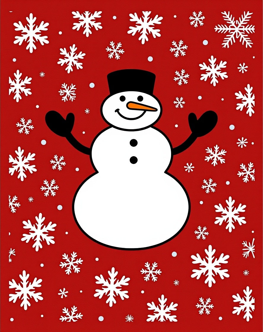 Festive Snowman with Falling Snowflakes Holiday(Red)