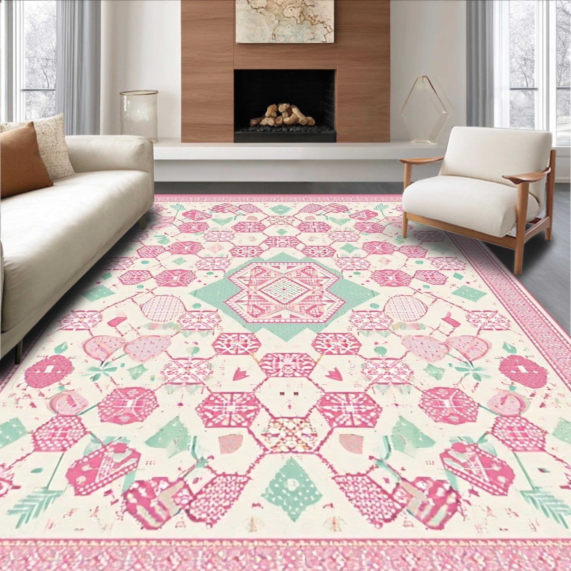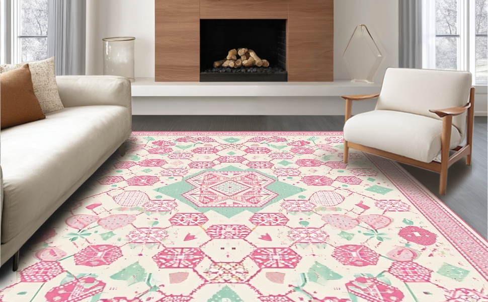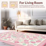 Ultra Soft Area Rug, Non Slip, Stain Resistant, Washable Area Rugs for Living Room, Bedroom, Festive Springtime Floral Pattern(Pink) Overview: