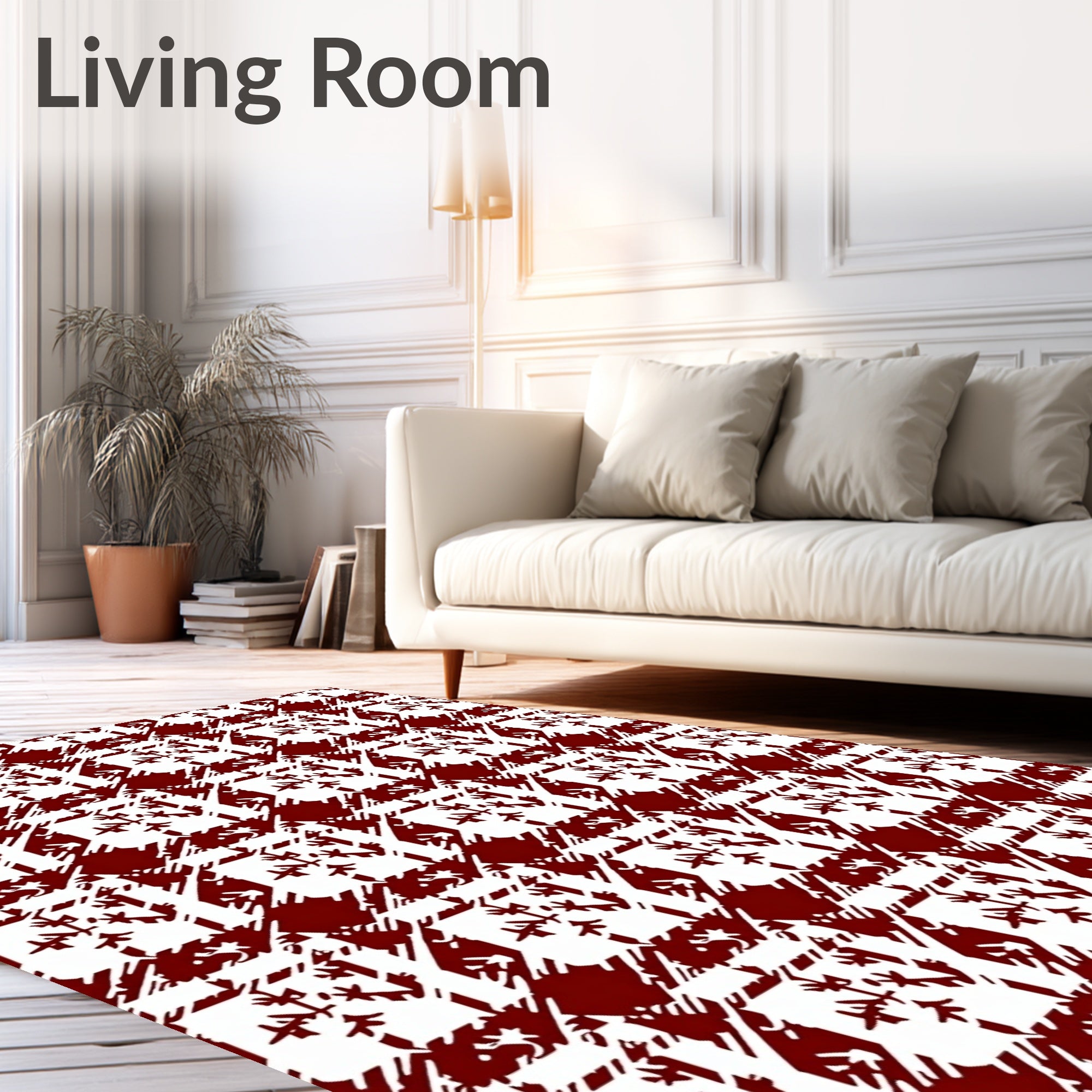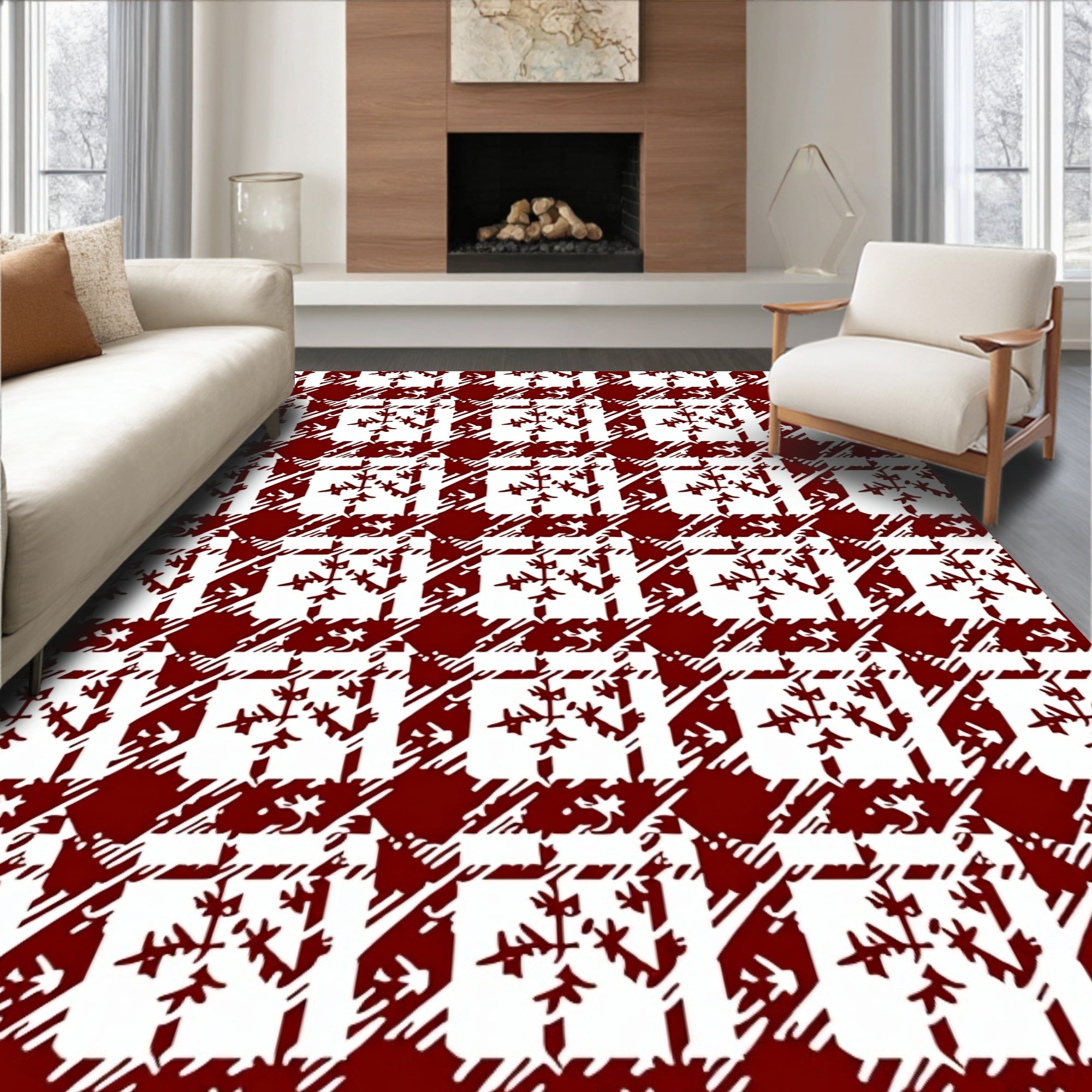 Flatwoven High Traffic Area Rug, Festive Tartan Check with Snowflake Accents, Non Slip, Stain Resistant, Washable Area Rugs for Living Room, Bedroom (Red) Overview: