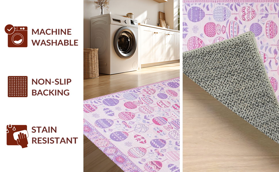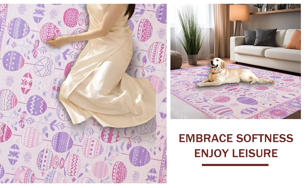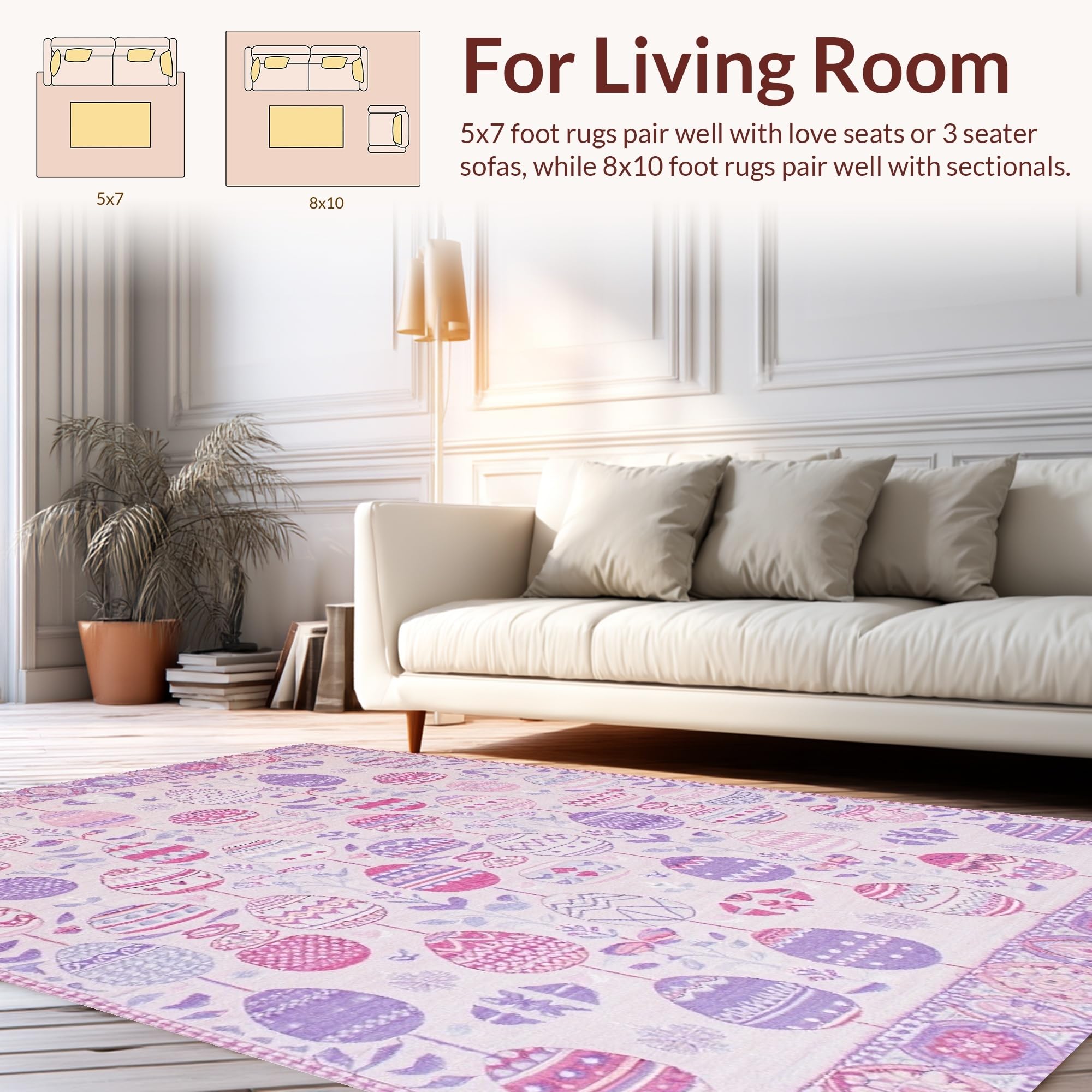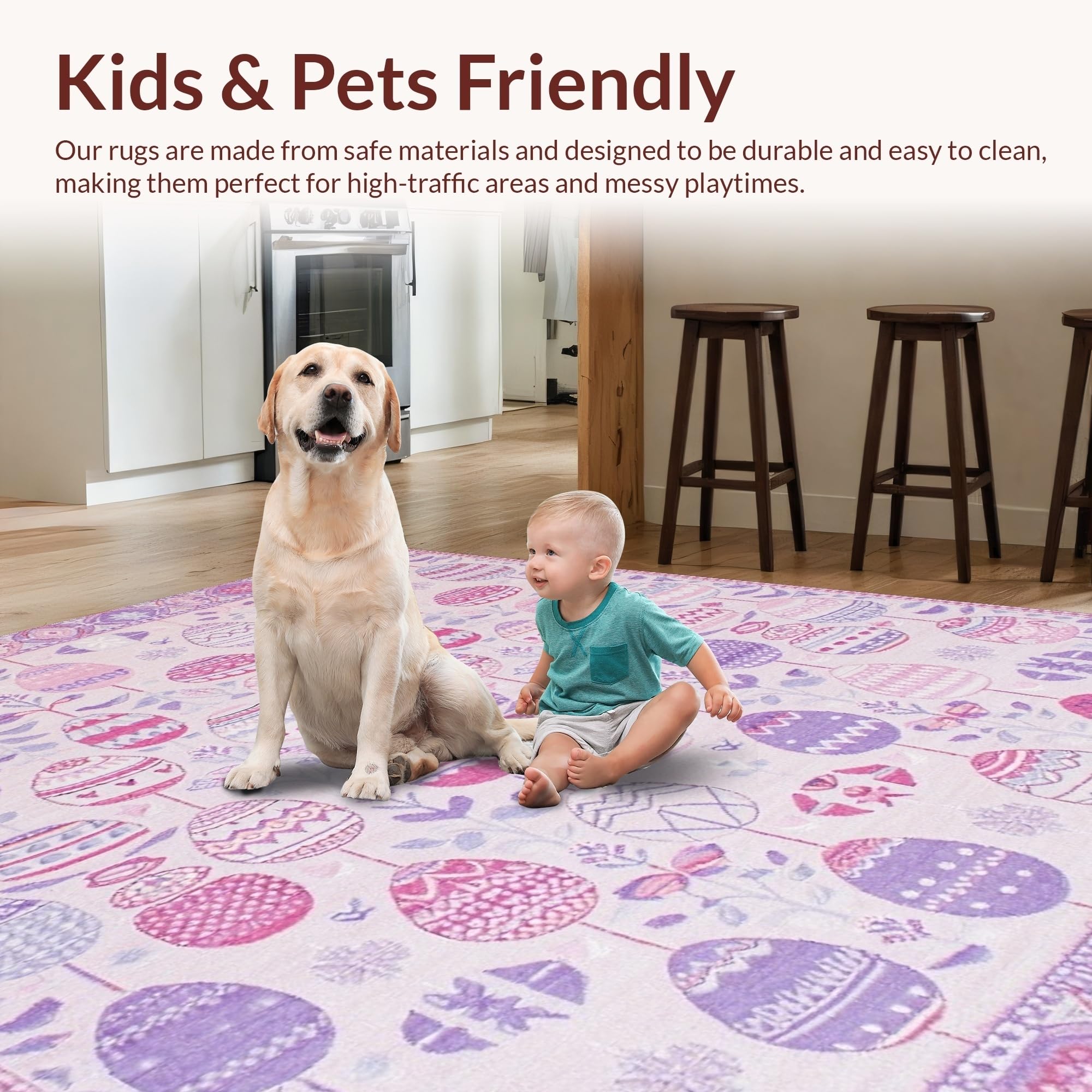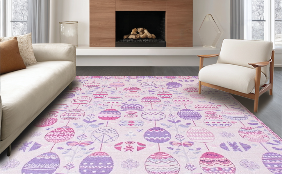 Ultra Soft Area Rug, Non Slip, Stain Resistant, Washable Area Rugs for Living Room, Bedroom, Festive Whimsical Egg Motif(Pink) Overview: