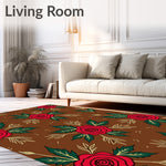 Flatwoven High Traffic Area Rug, Festive Yuletide with Stylized Winter Florals, Non Slip, Stain Resistant, Washable Area Rugs for Living Room, Bedroom (Brown) Overview: