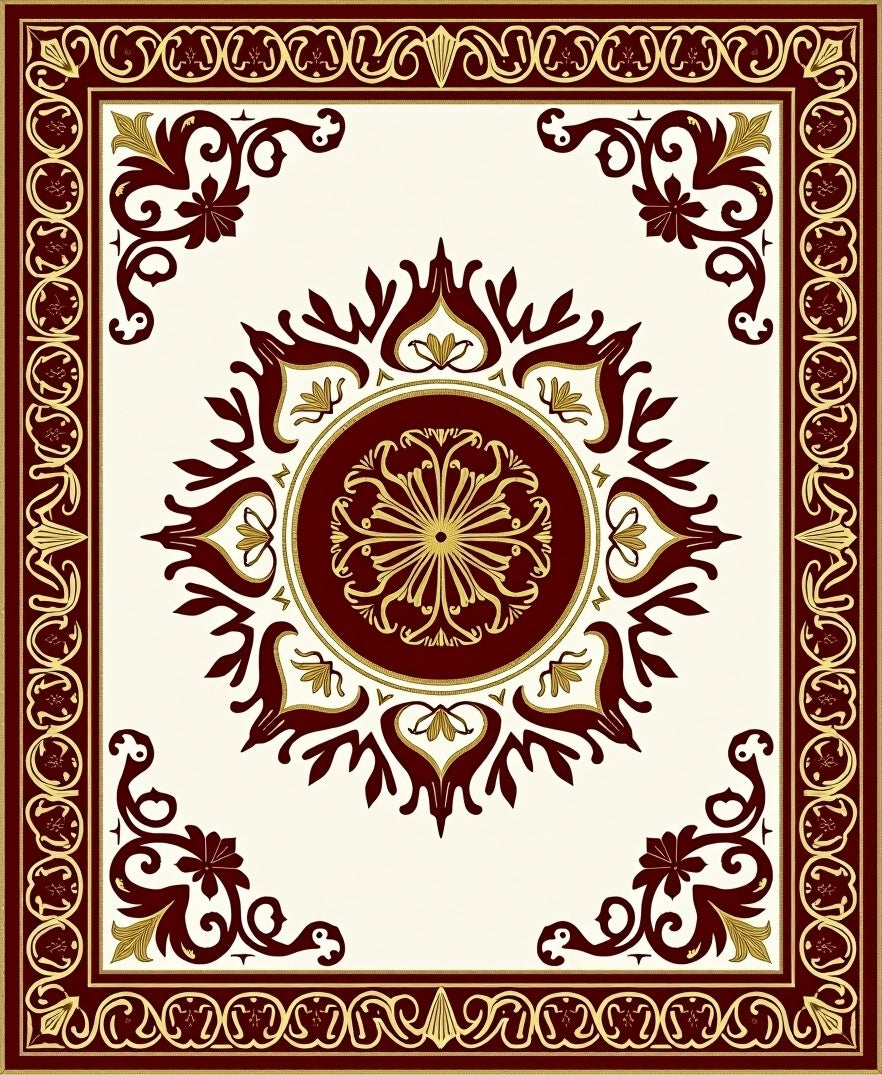 Filigree Medallion Surrounded by Heraldic Floral and Vinework(Brown)