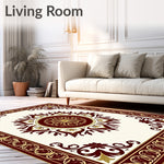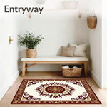 Flatwoven High Traffic Area Rug, Filigree Medallion Surrounded by Heraldic Floral and Vinework, Non Slip, Stain Resistant, Washable Area Rugs for Living Room, Bedroom (Brown) Overview: