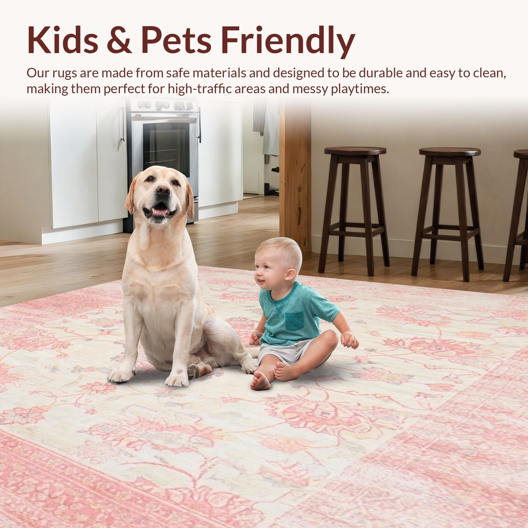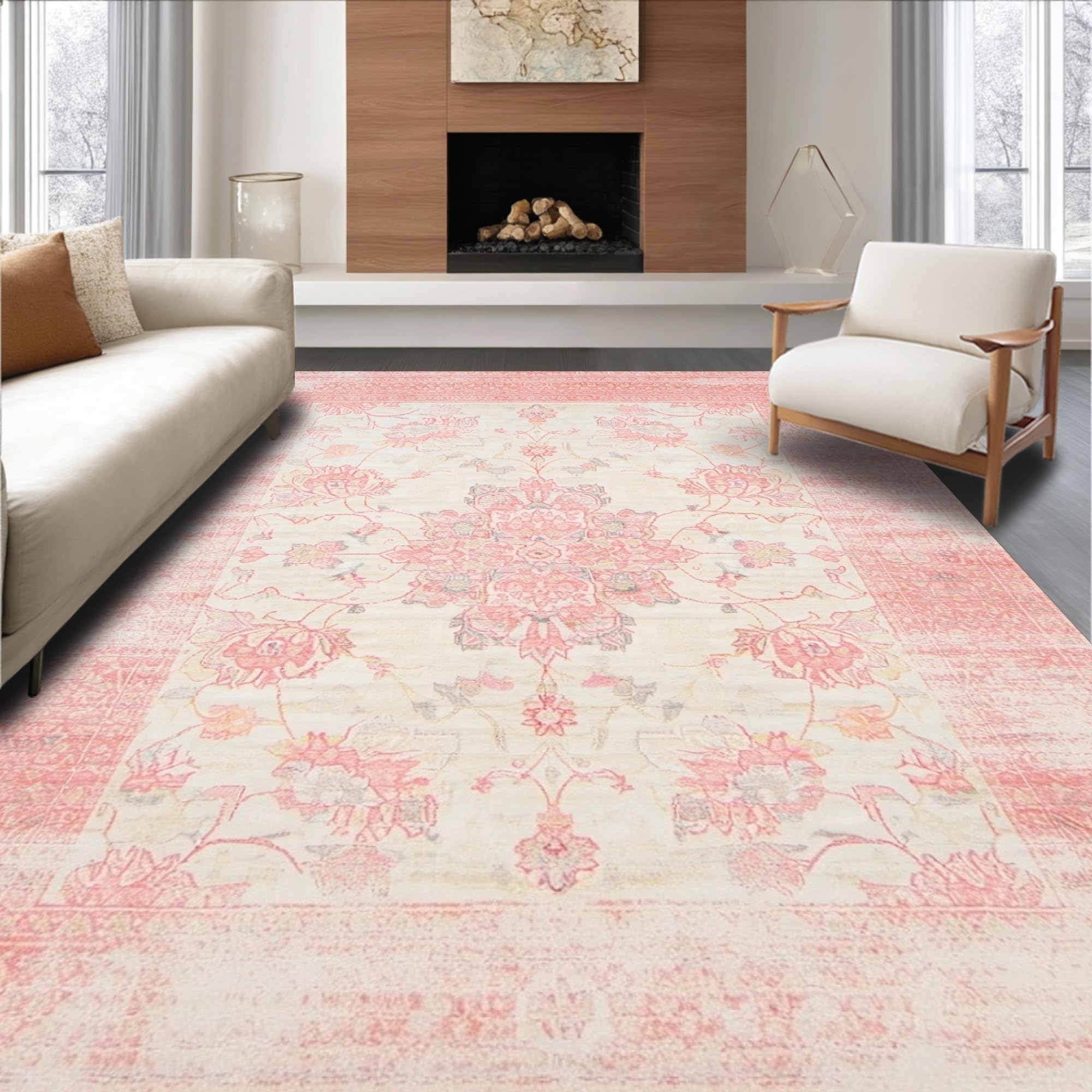 Ultra Soft Area Rug, Non Slip, Stain Resistant, Washable Area Rugs for Living Room, Bedroom, Floral Area Bohemian Flair Modern Home Decor Pink & Beige(Pink) Overview: