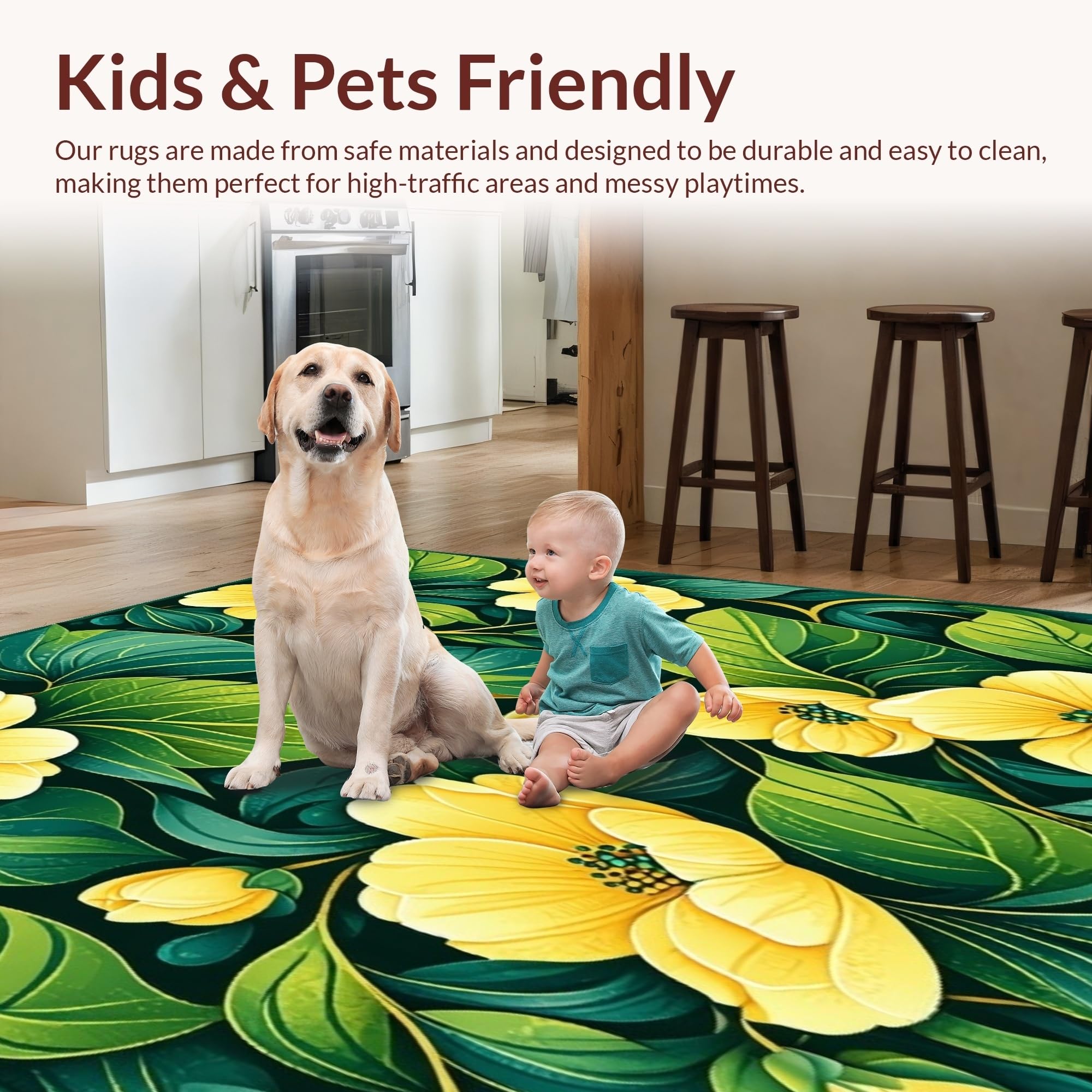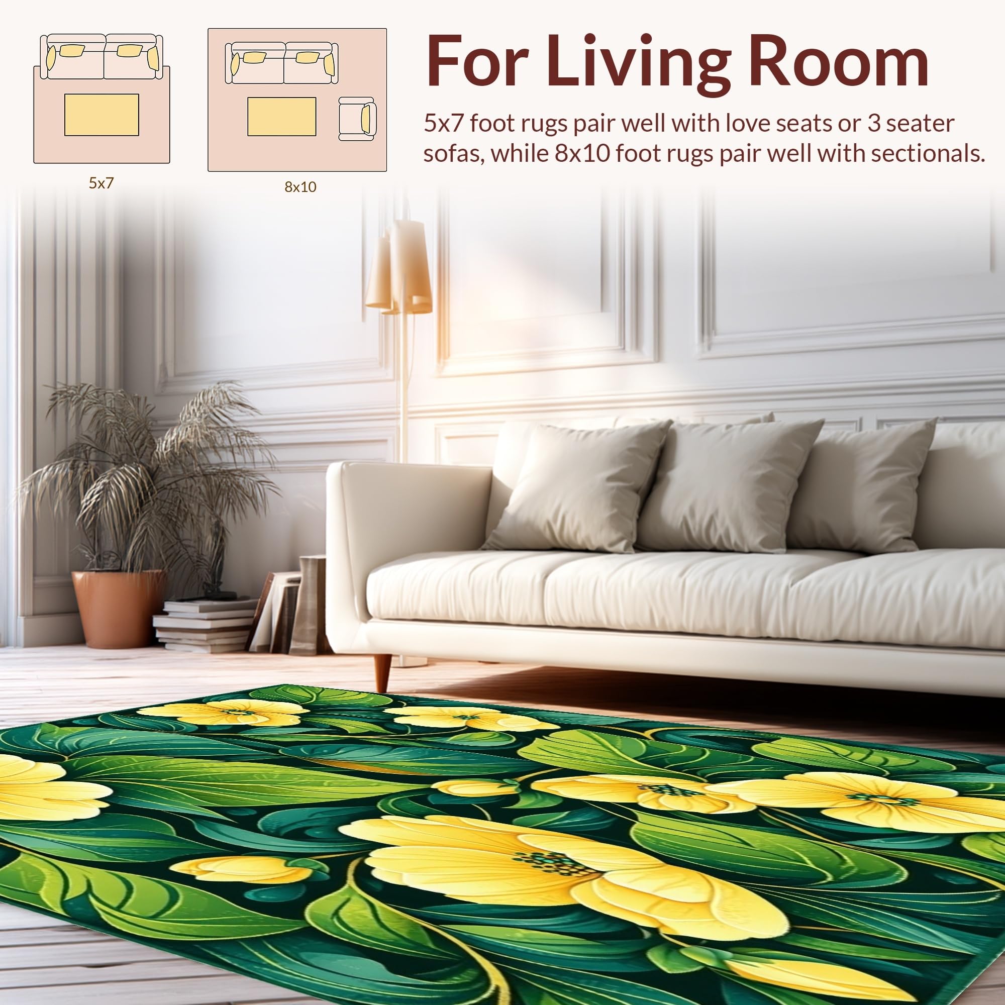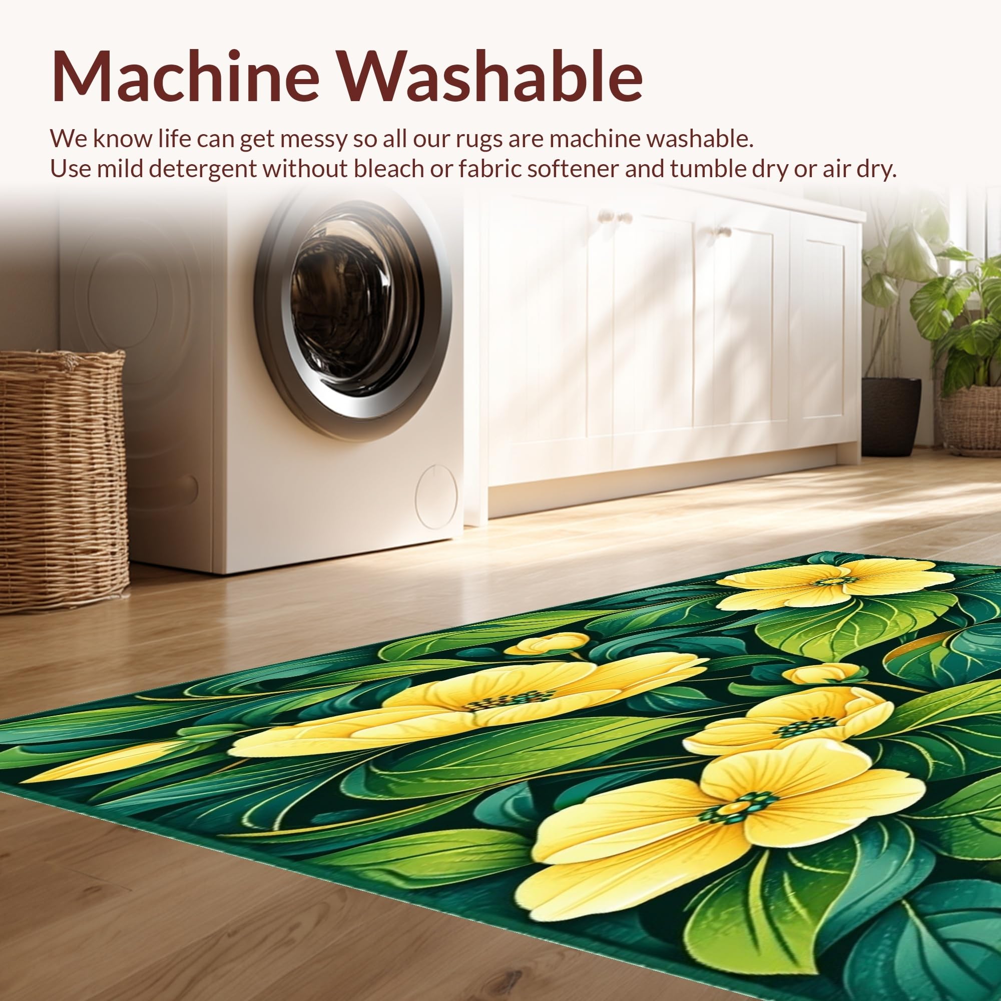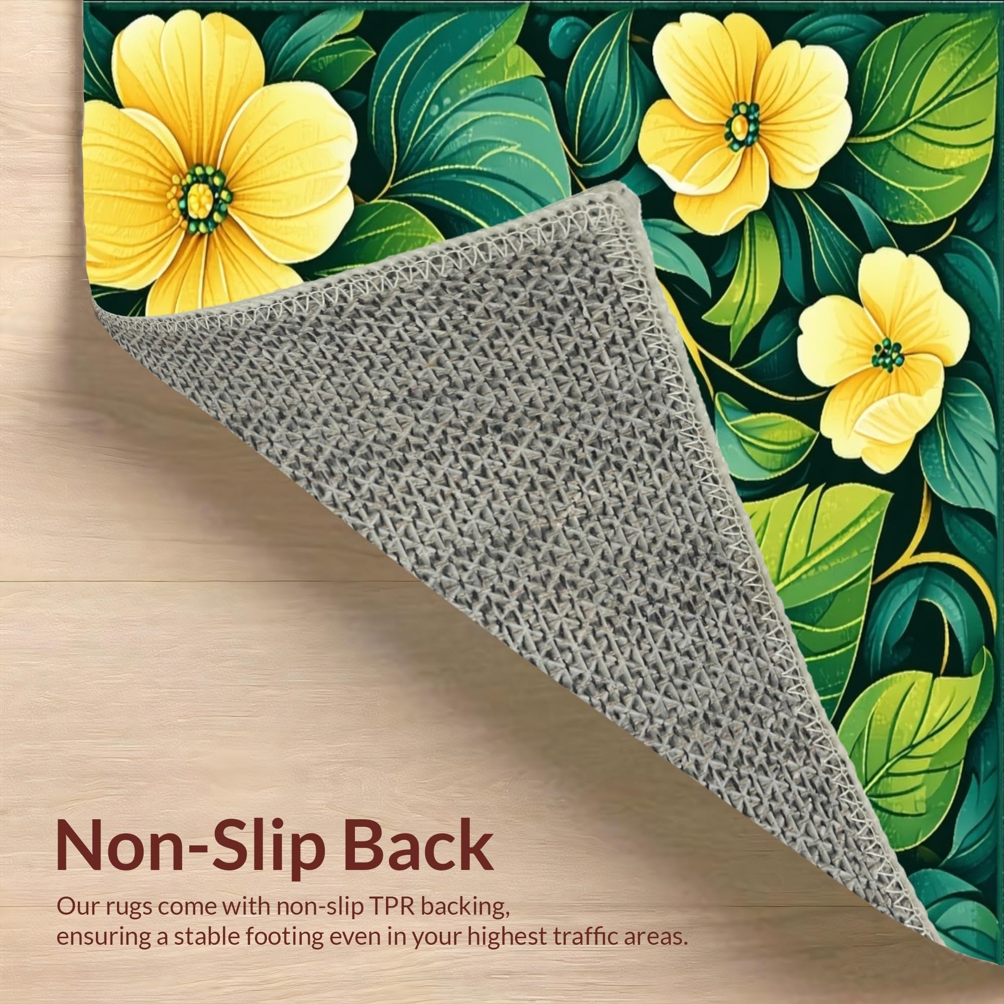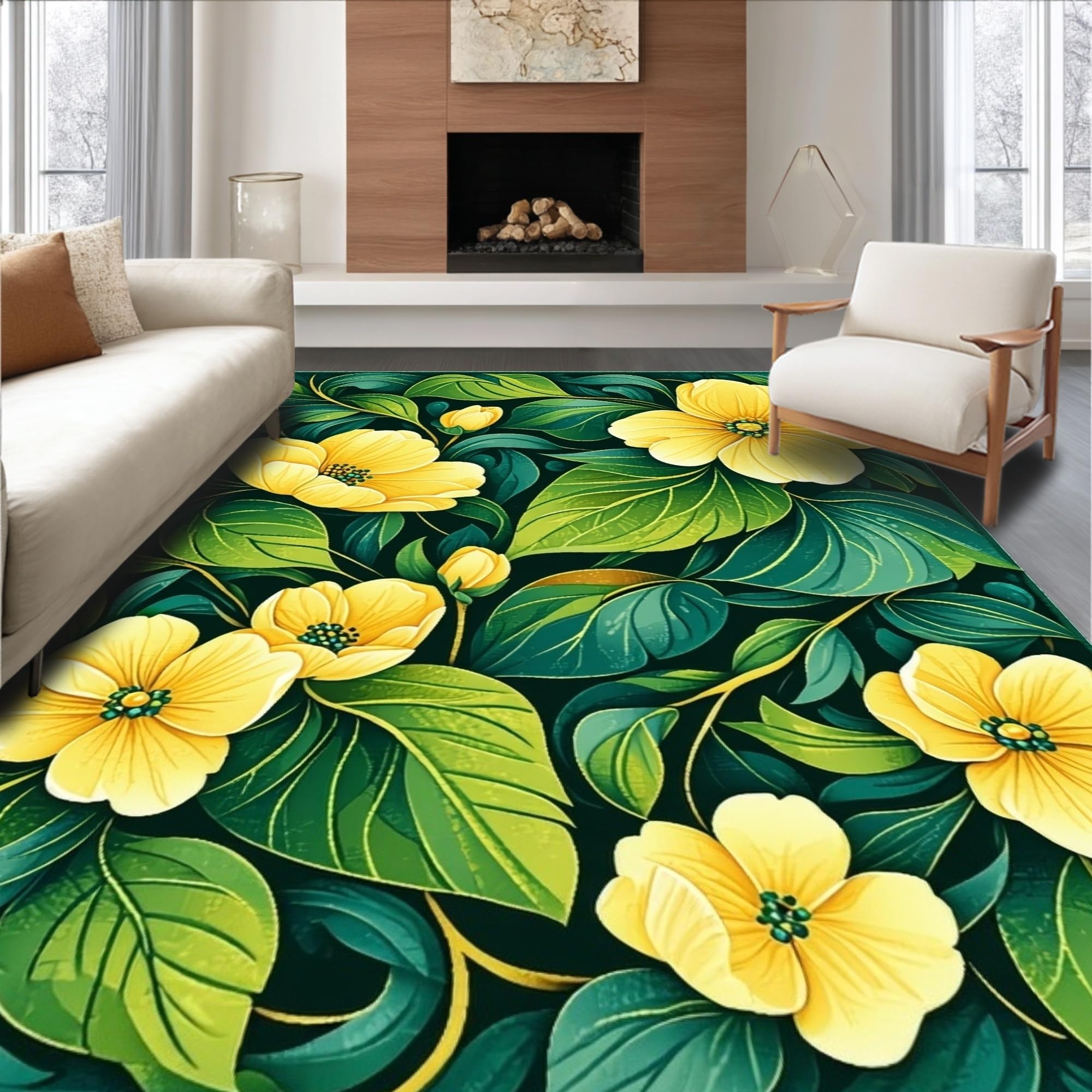 Ultra Soft Area Rug, Non Slip, Stain Resistant, Washable Area Rugs for Living Room, Bedroom, Floral Bath with Yellow and Green Flowers(Yellow) Overview: