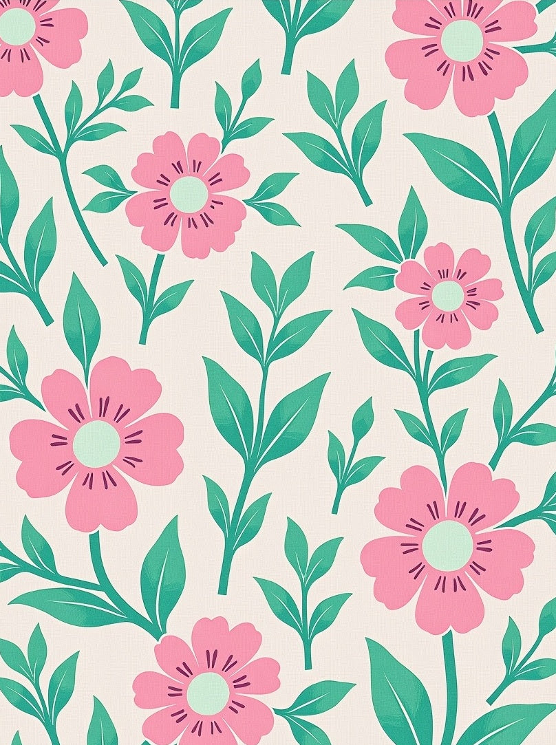 Floral Canopy Design with Airy Blossoms and Stylized Leafy Accents(Pink)