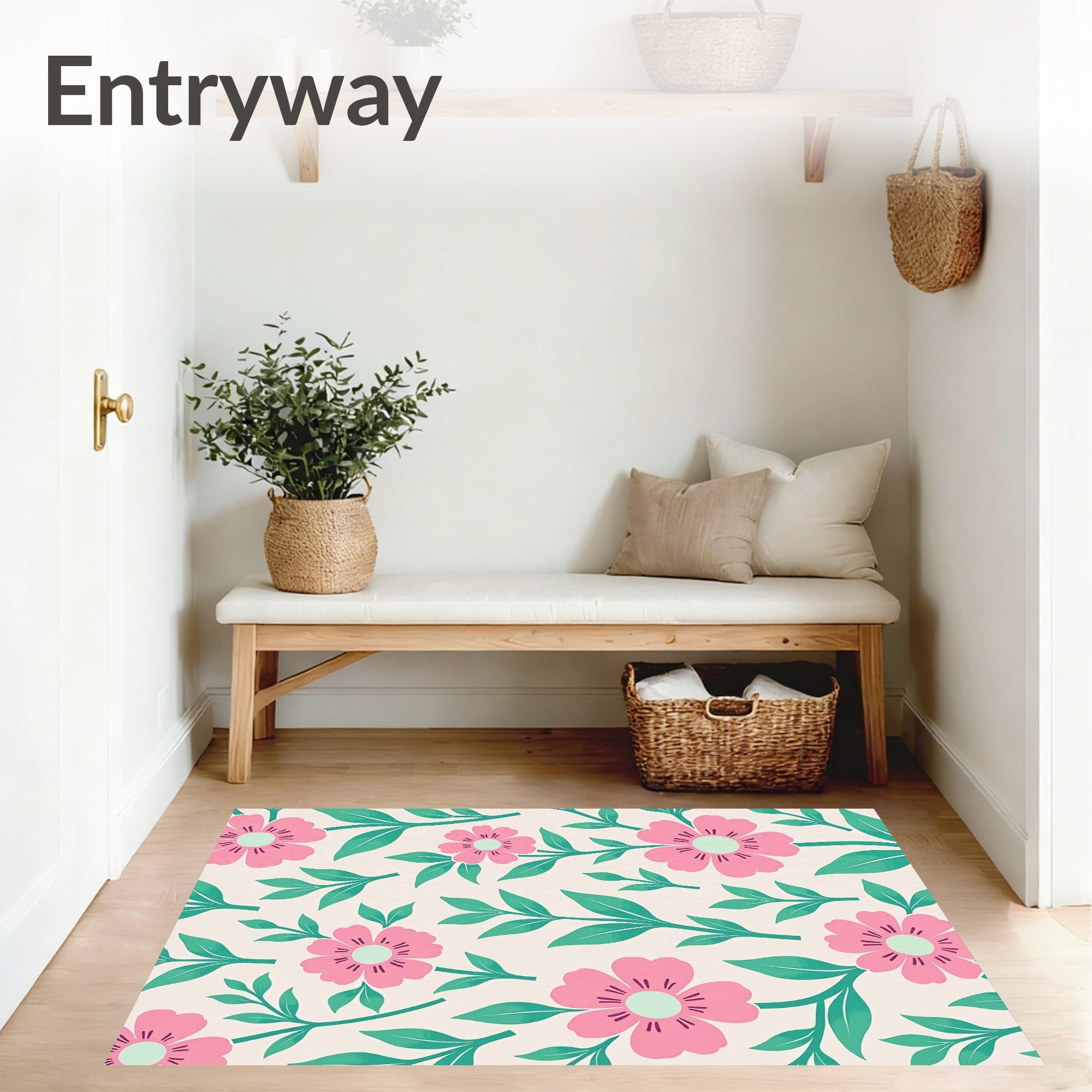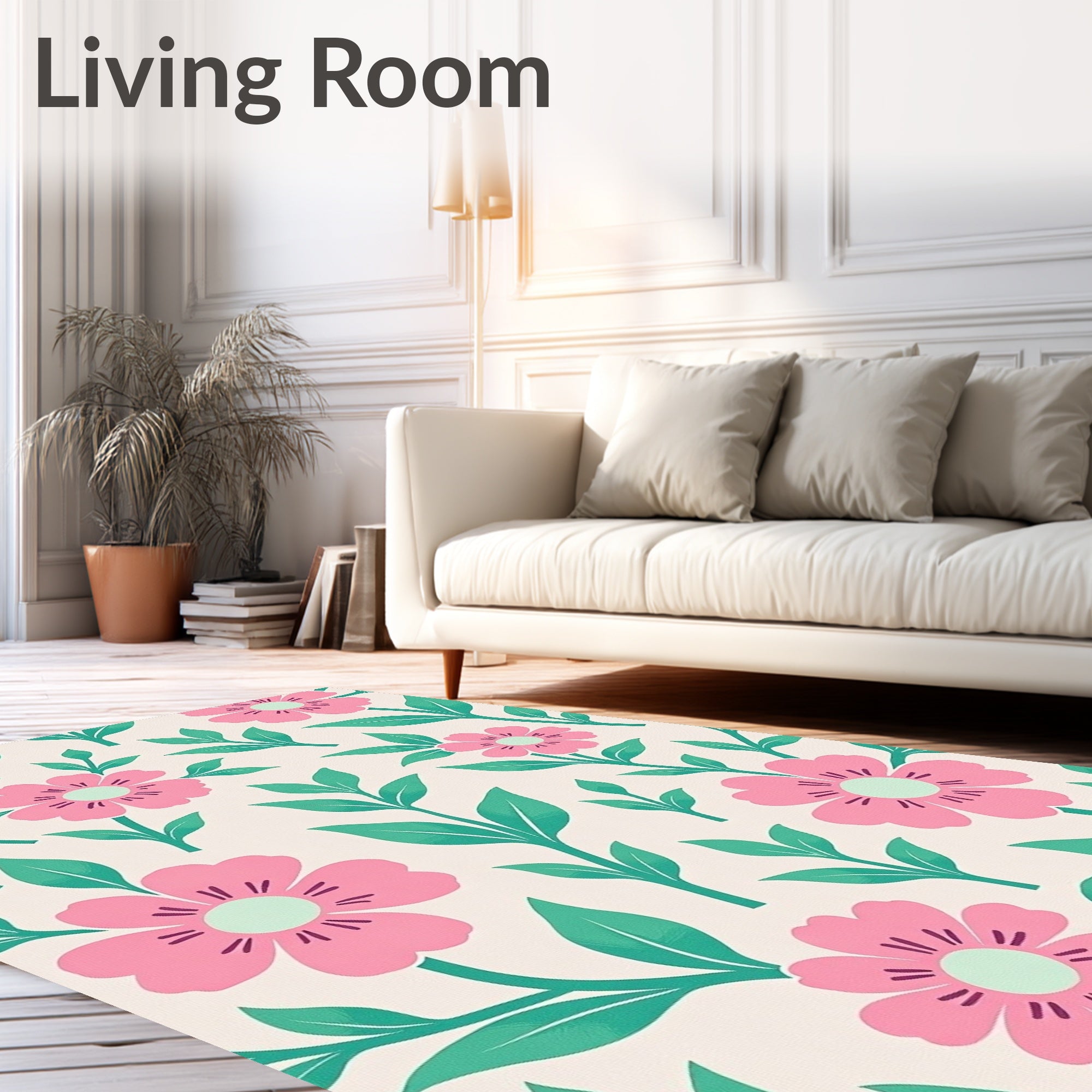 Ultra Soft Area Rug, Non Slip, Stain Resistant, Washable Area Rugs for Living Room, Bedroom, Floral Canopy Design with Airy Blossoms and Stylized Leafy Accents(Pink) Overview: