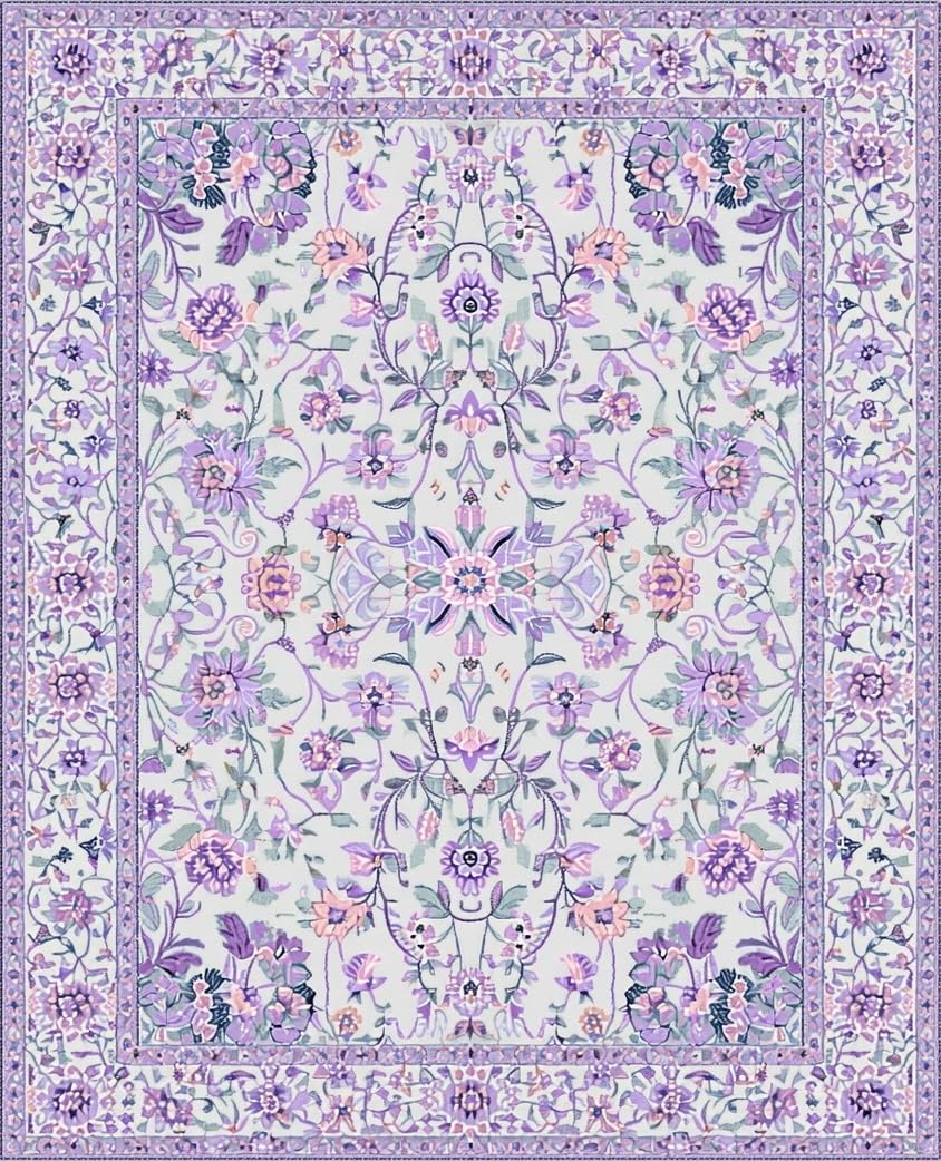 Ultra Soft Area Rug, Non Slip, Stain Resistant, Washable Area Rugs for Living Room, Bedroom, Floral Cat Inspired Area Rug(White) Overview: