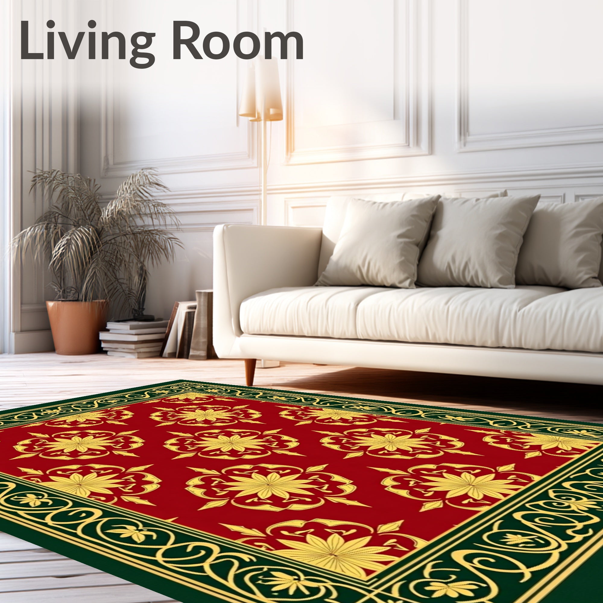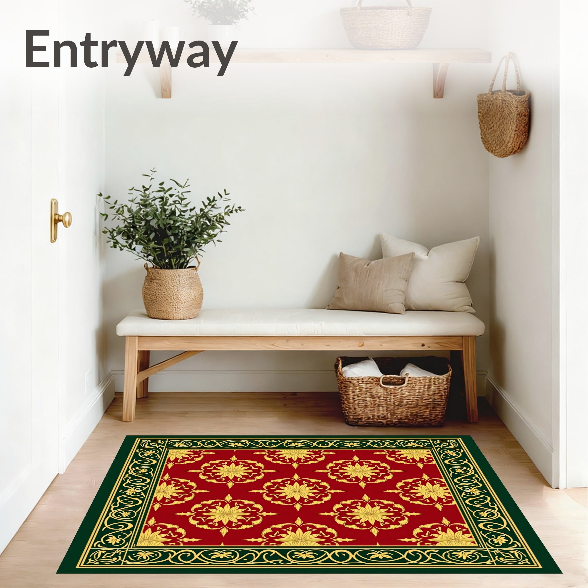 Flatwoven High Traffic Area Rug, Floral Latticework with Baroque Scroll and Holiday Starburst, Non Slip, Stain Resistant, Washable Area Rugs for Living Room, Bedroom (Red) Overview: