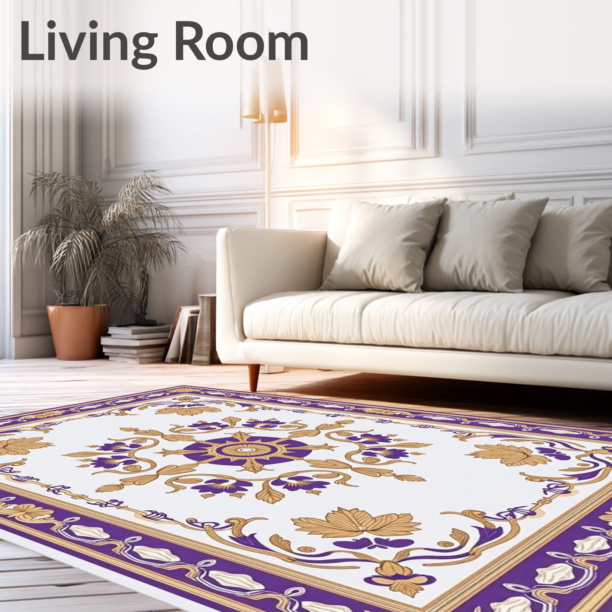 Ultra Soft Area Rug, Non Slip, Stain Resistant, Washable Area Rugs for Living Room, Bedroom, Floral Medallion Transitional Eclectic Luxury(Purple) Overview: