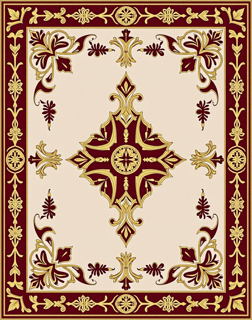 Floral Medallion with Ornate Botanical Motifs(Ivory)