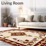 Flatwoven High Traffic Area Rug, Floral Medallion with Ornate Botanical Motifs, Non Slip, Stain Resistant, Washable Area Rugs for Living Room, Bedroom (Ivory) Overview:
