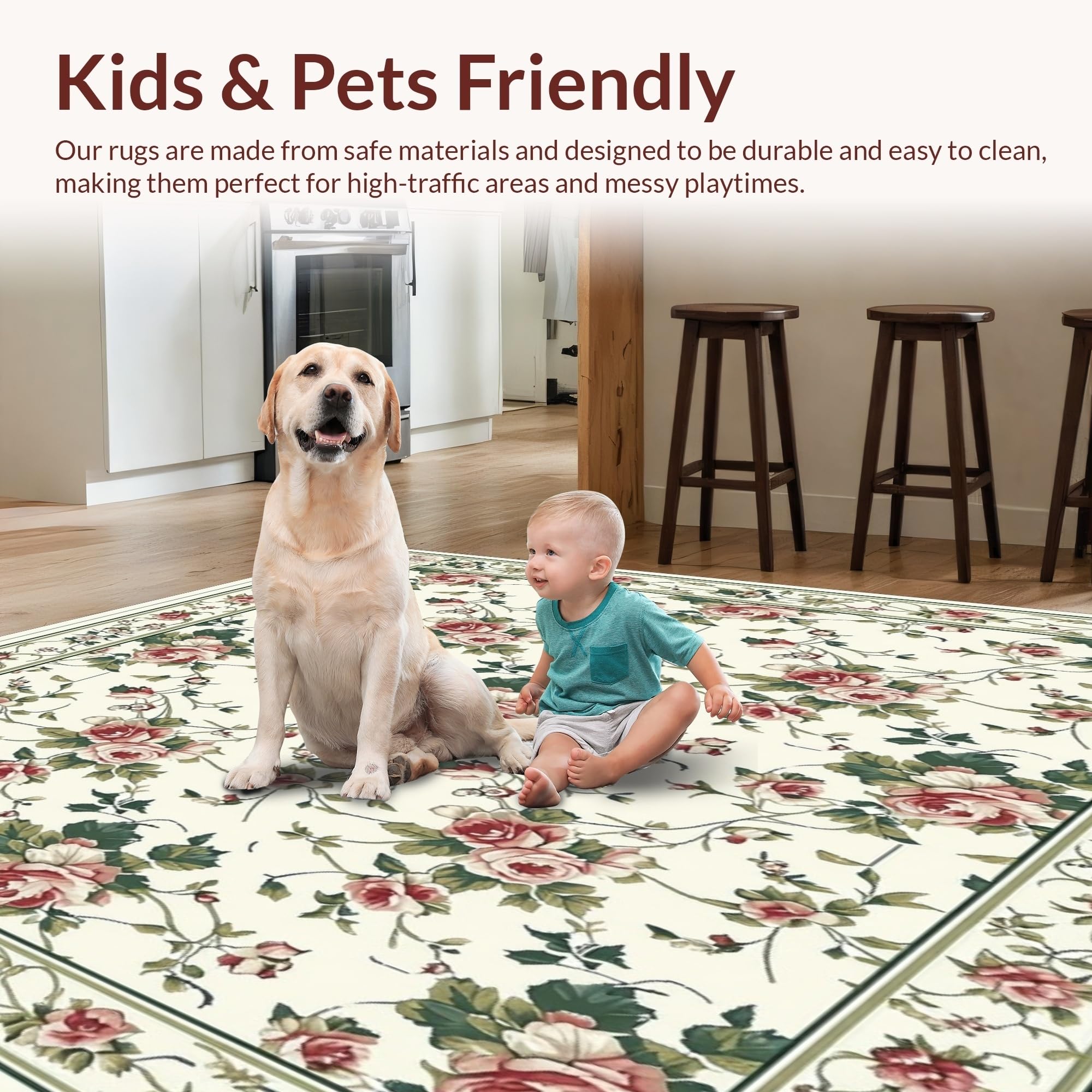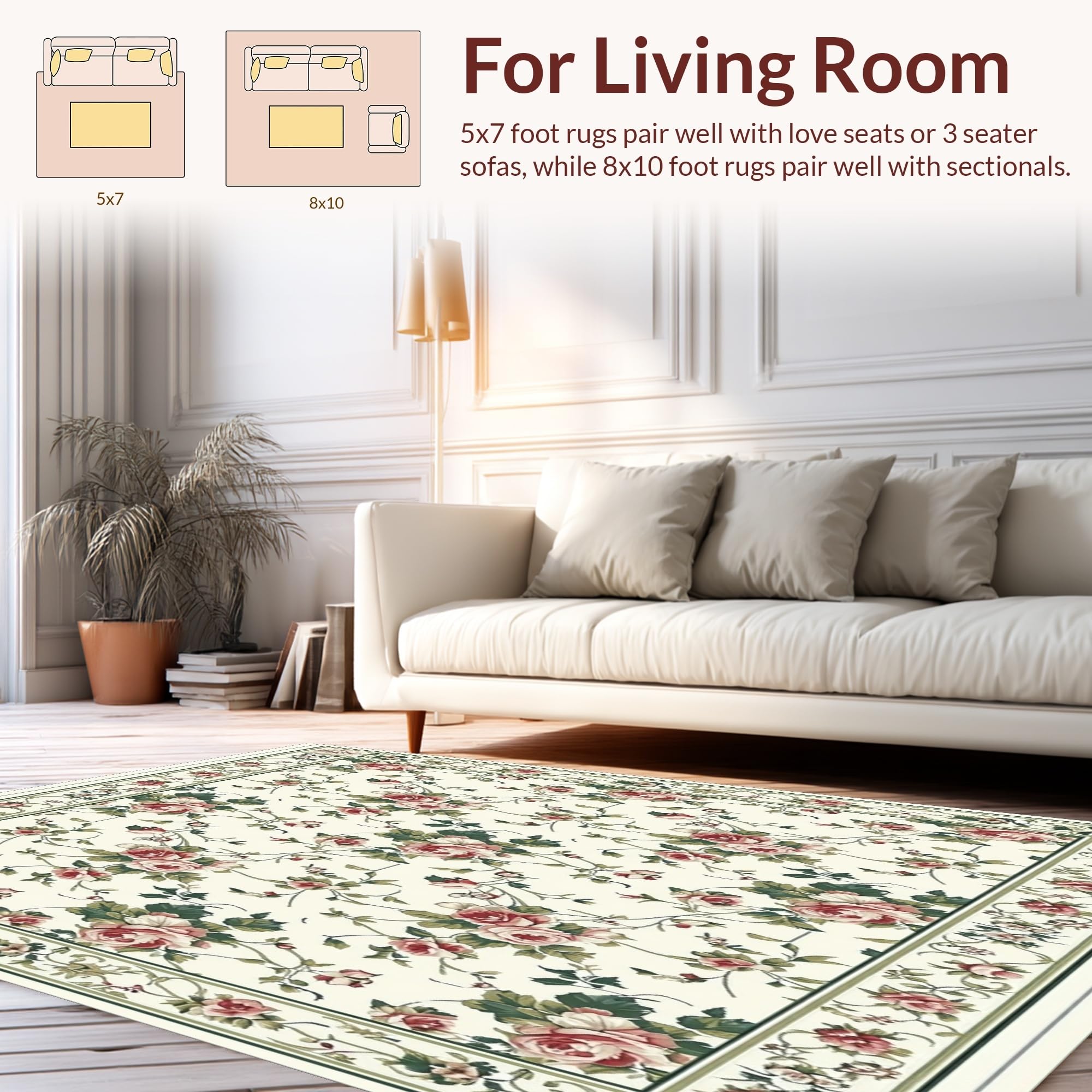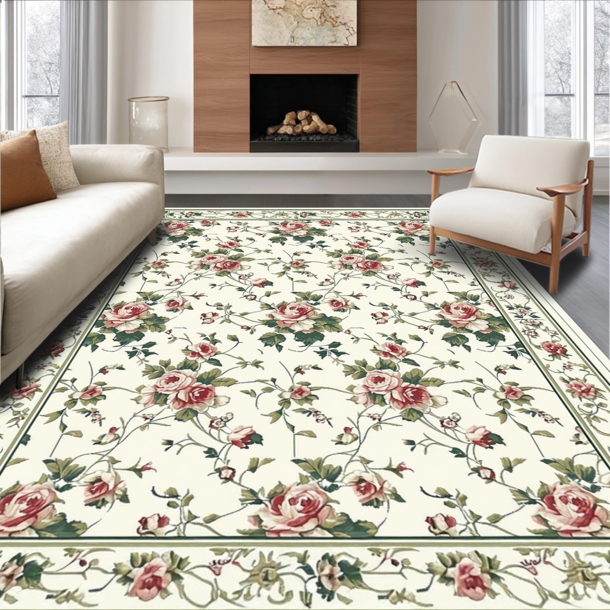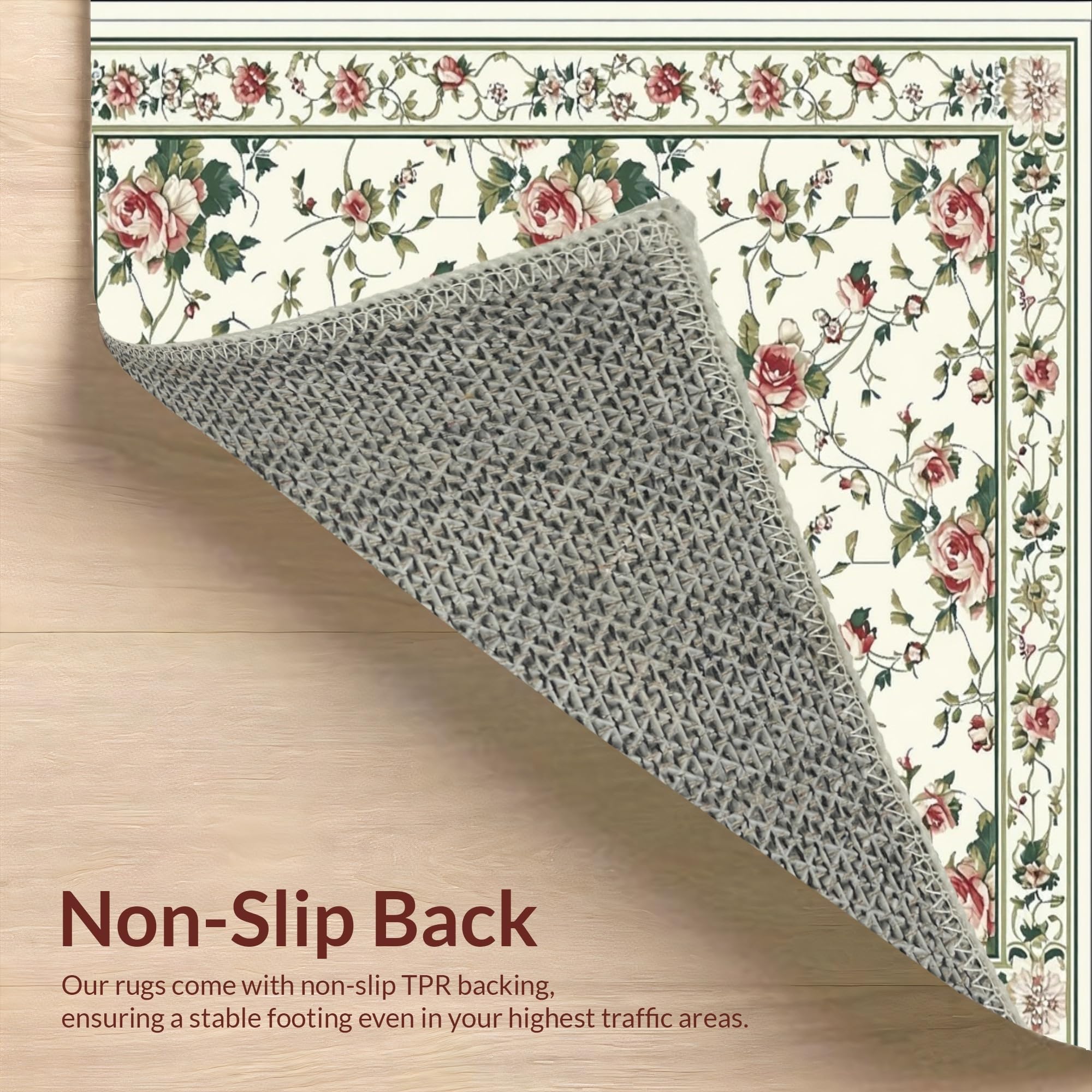 Ultra Soft Area Rug, Non Slip, Stain Resistant, Washable Area Rugs for Living Room, Bedroom, Floral Rose Runner Rug(Ivory) Overview: