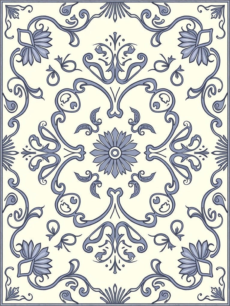 Floral Scrollwork Paisley Ornate Symmetrical(Ivory)