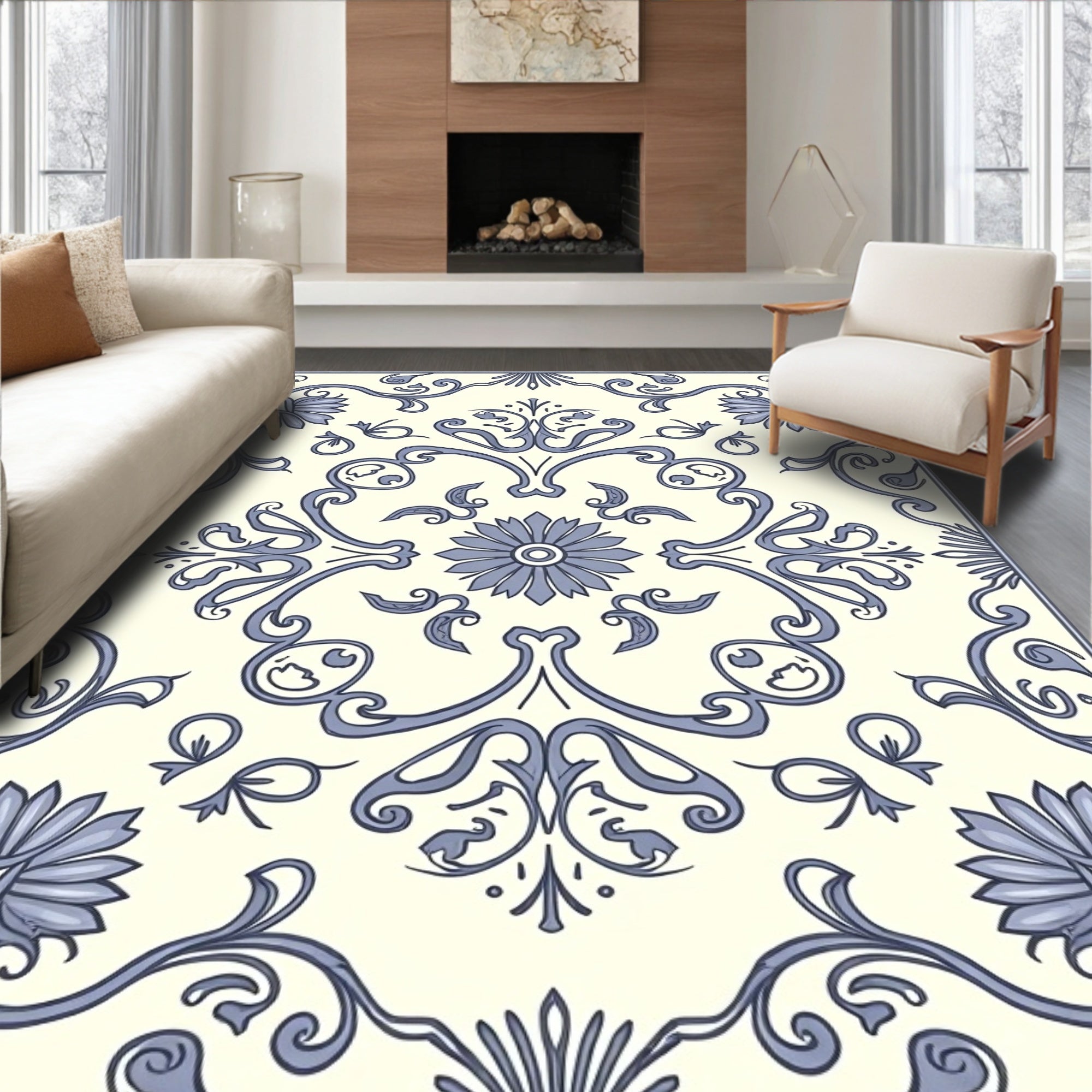 Flatwoven High Traffic Area Rug, Floral Scrollwork Paisley Ornate Symmetrical, Non Slip, Stain Resistant, Washable Area Rugs for Living Room, Bedroom (Ivory) Overview: