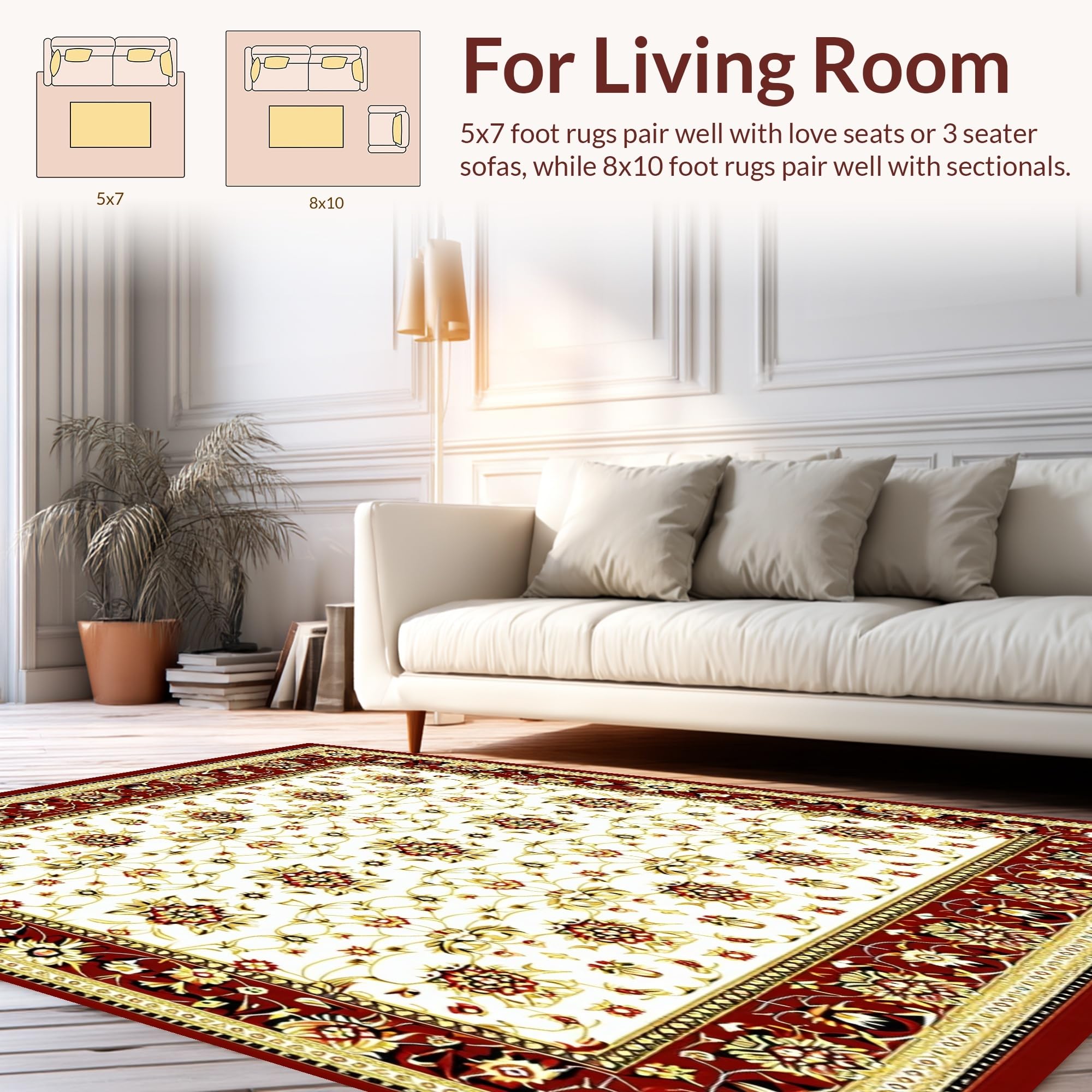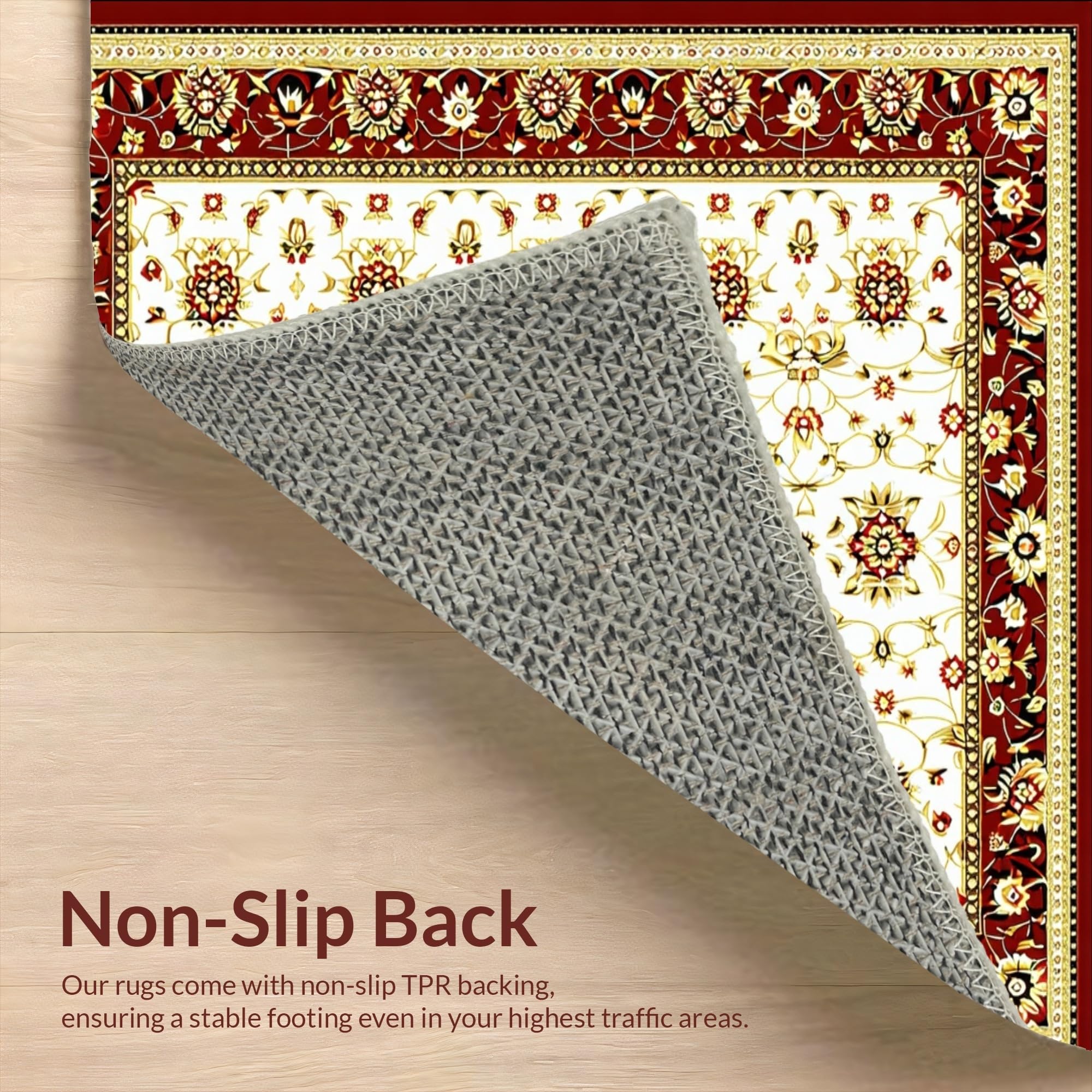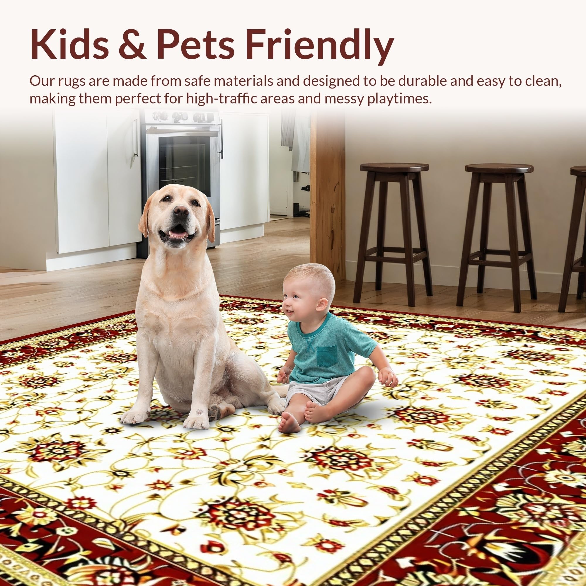 Ultra Soft Area Rug, Non Slip, Stain Resistant, Washable Area Rugs for Living Room, Bedroom, Floral Symmetrical(White) Overview:
