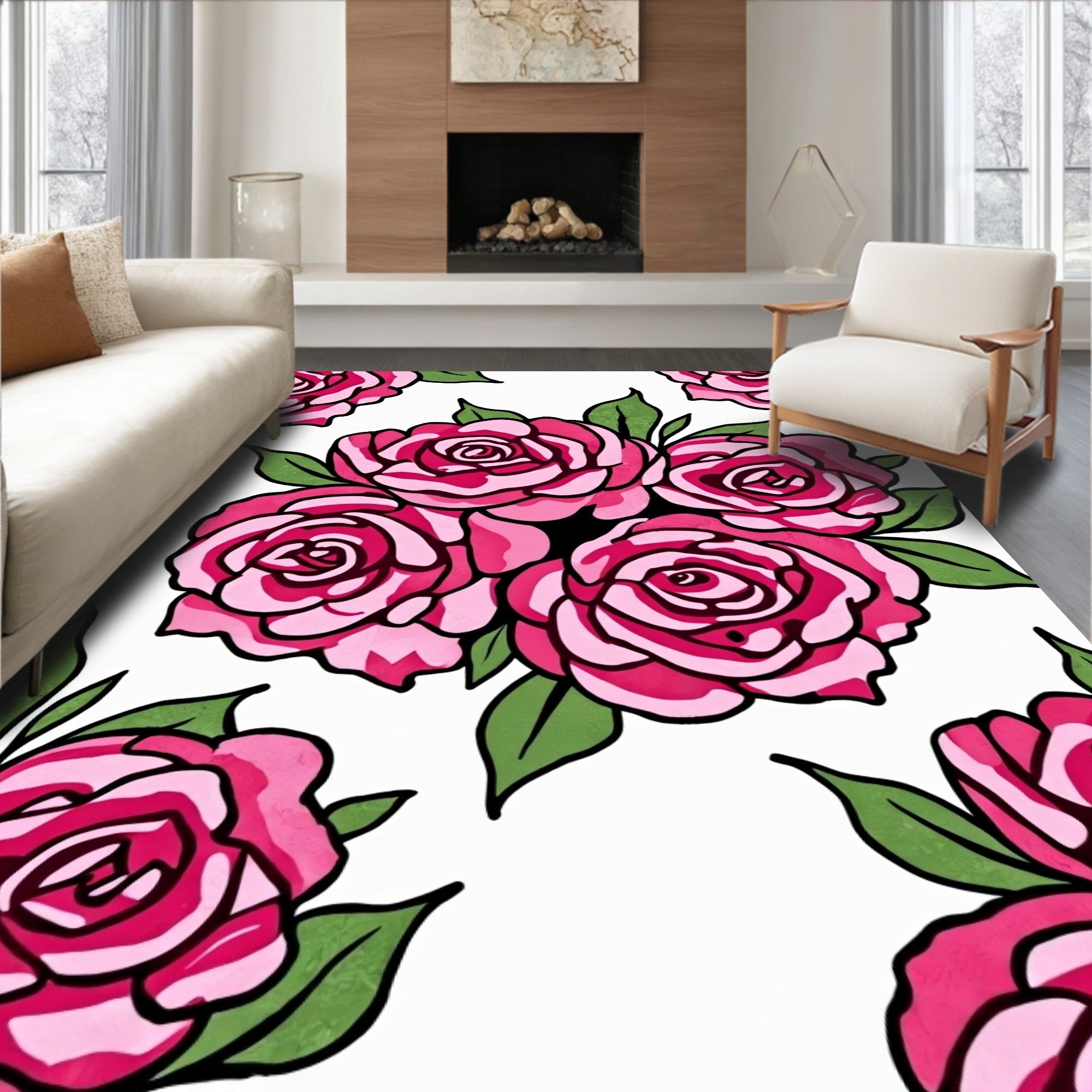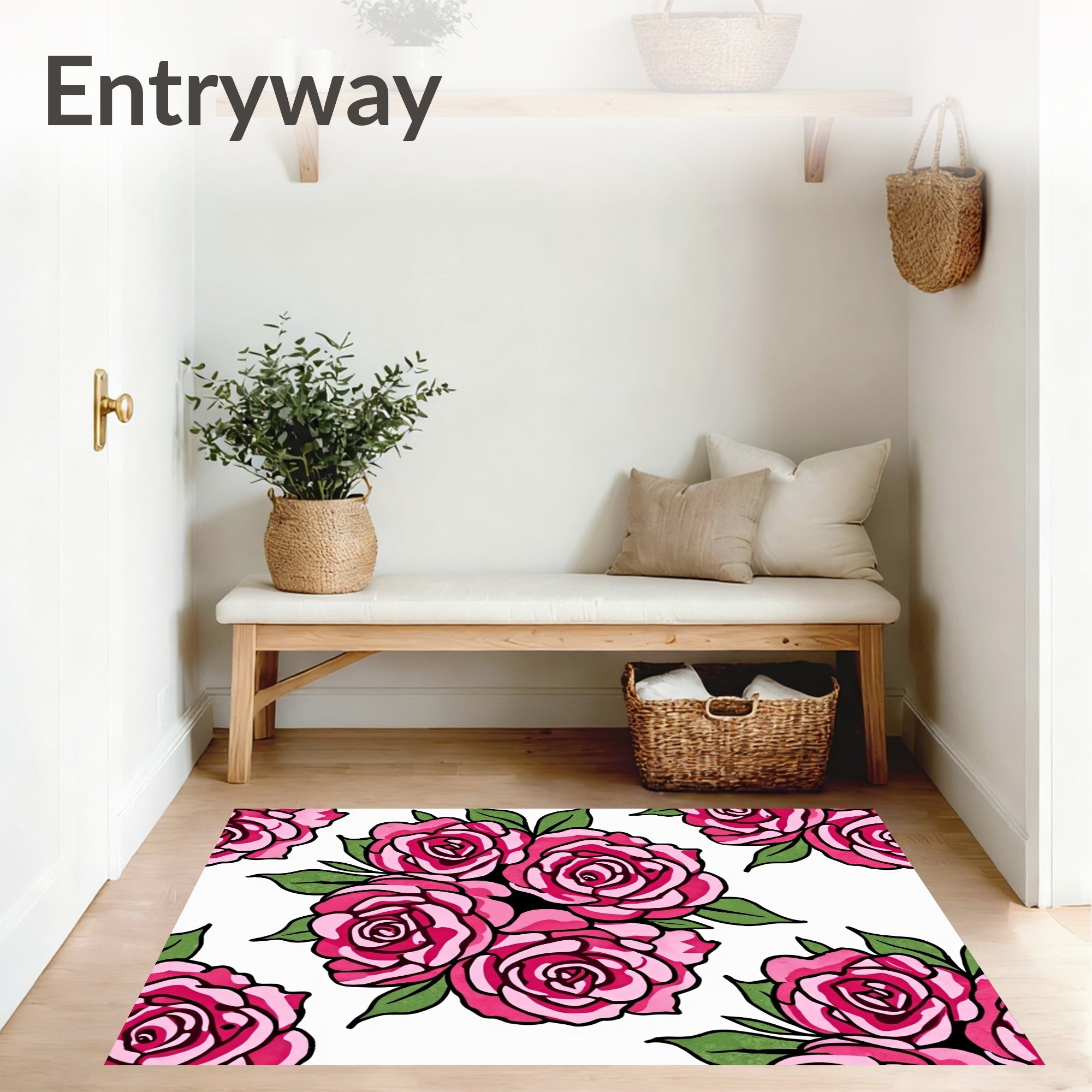 Flatwoven High Traffic Area Rug, Floral Symphony With Artisan Crafted Bouquet Design, Non Slip, Stain Resistant, Washable Area Rugs for Living Room, Bedroom (Pink) Overview: