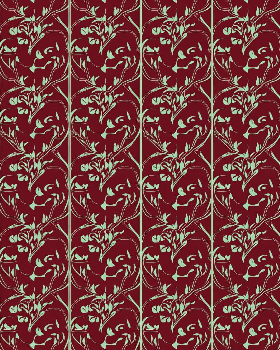 Floral Vine Trellis with Botanical Scroll Design(Red)