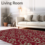 Flatwoven High Traffic Area Rug, Floral Vine Trellis with Botanical Scroll Design, Non Slip, Stain Resistant, Washable Area Rugs for Living Room, Bedroom (Red) Overview: