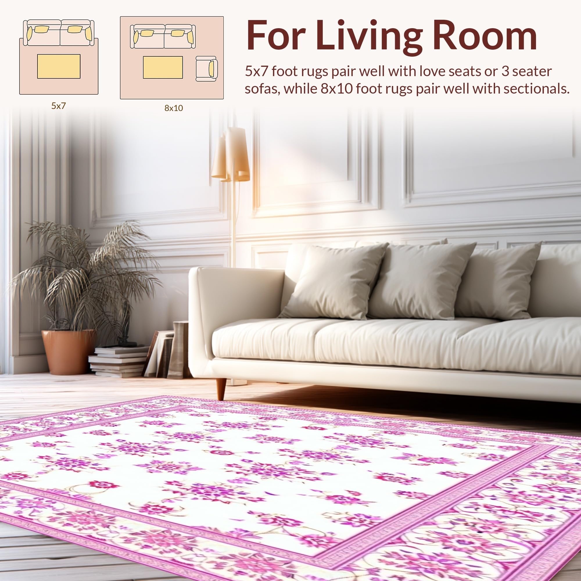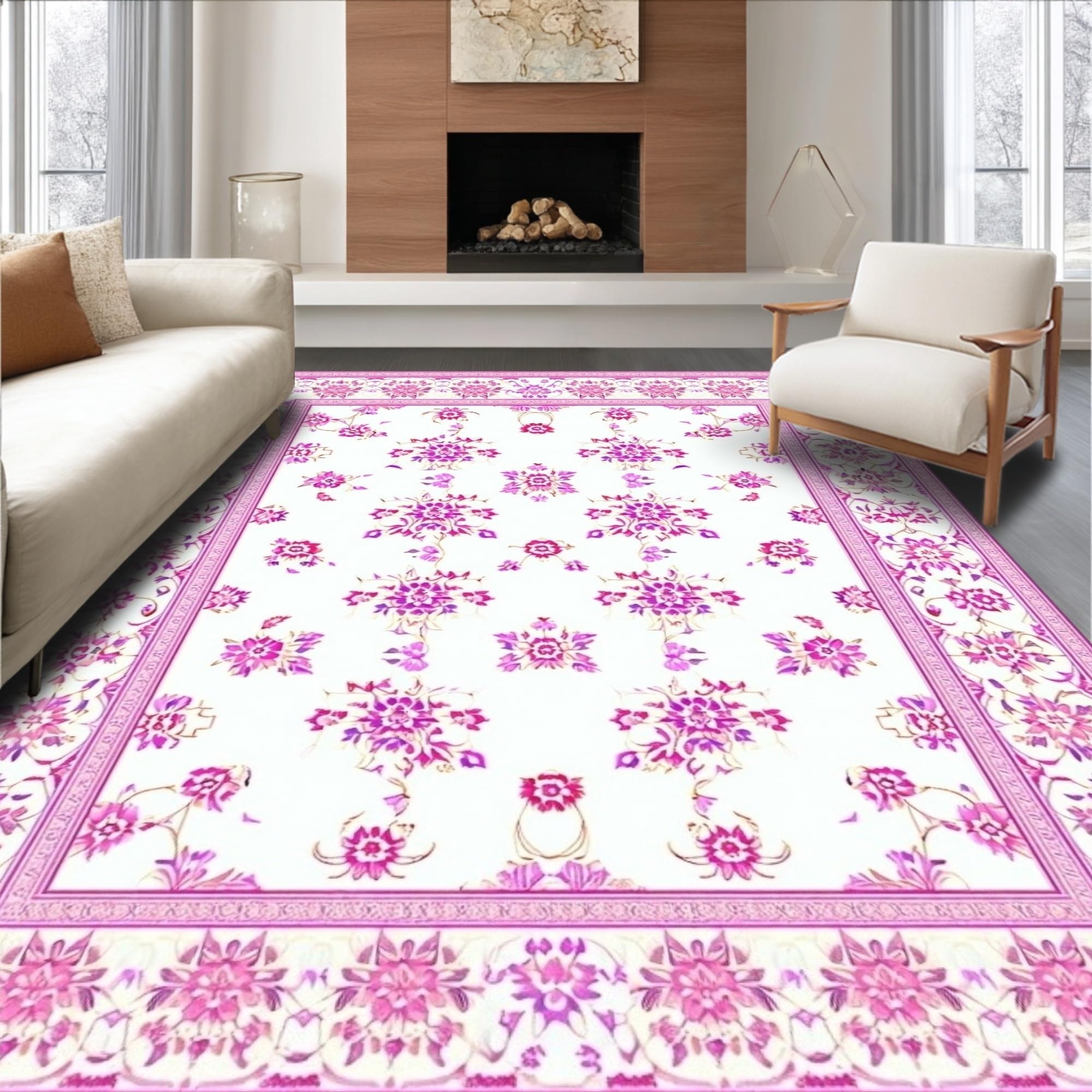 Ultra Soft Area Rug, Non Slip, Stain Resistant, Washable Area Rugs for Living Room, Bedroom, Flower for Girls Room(White) Overview: