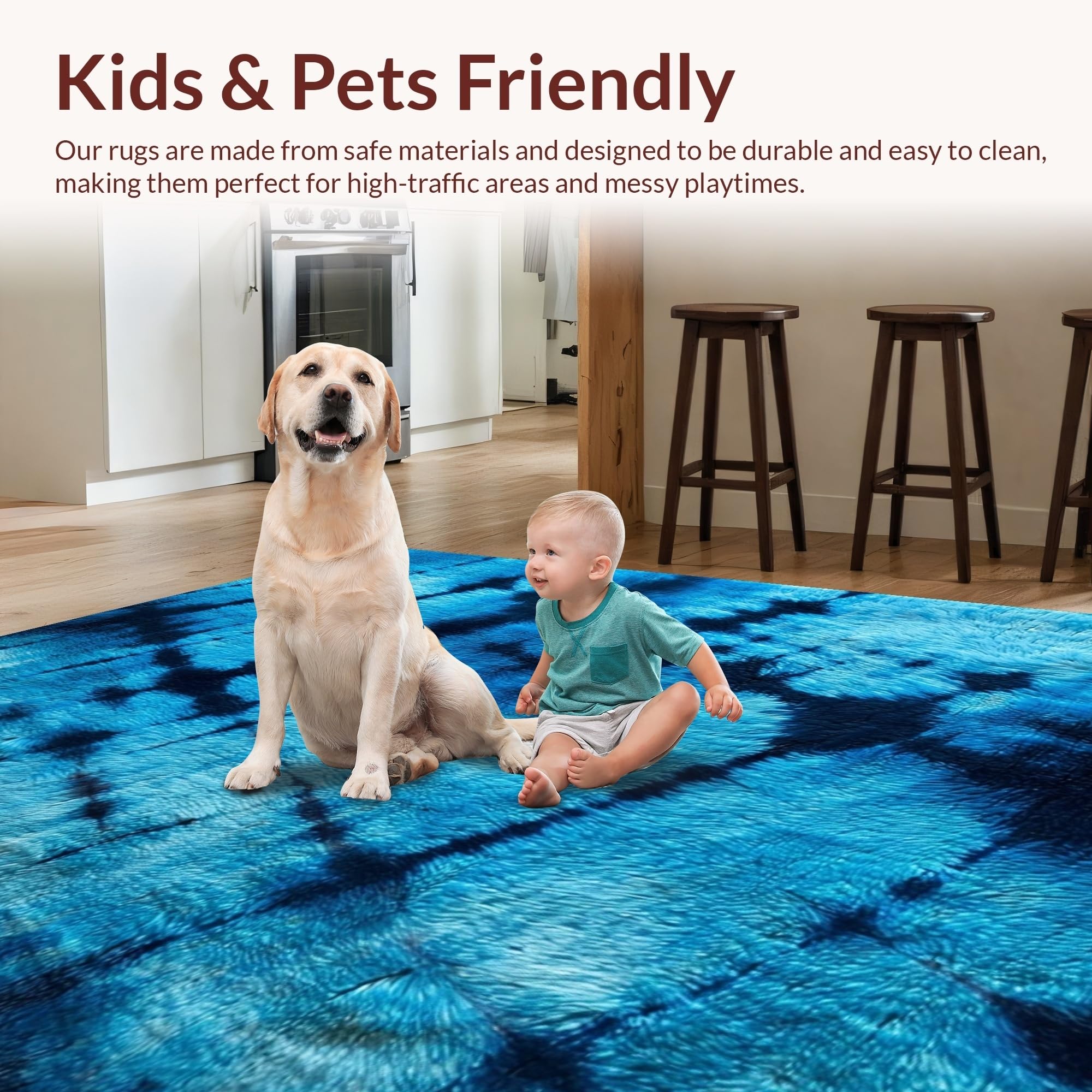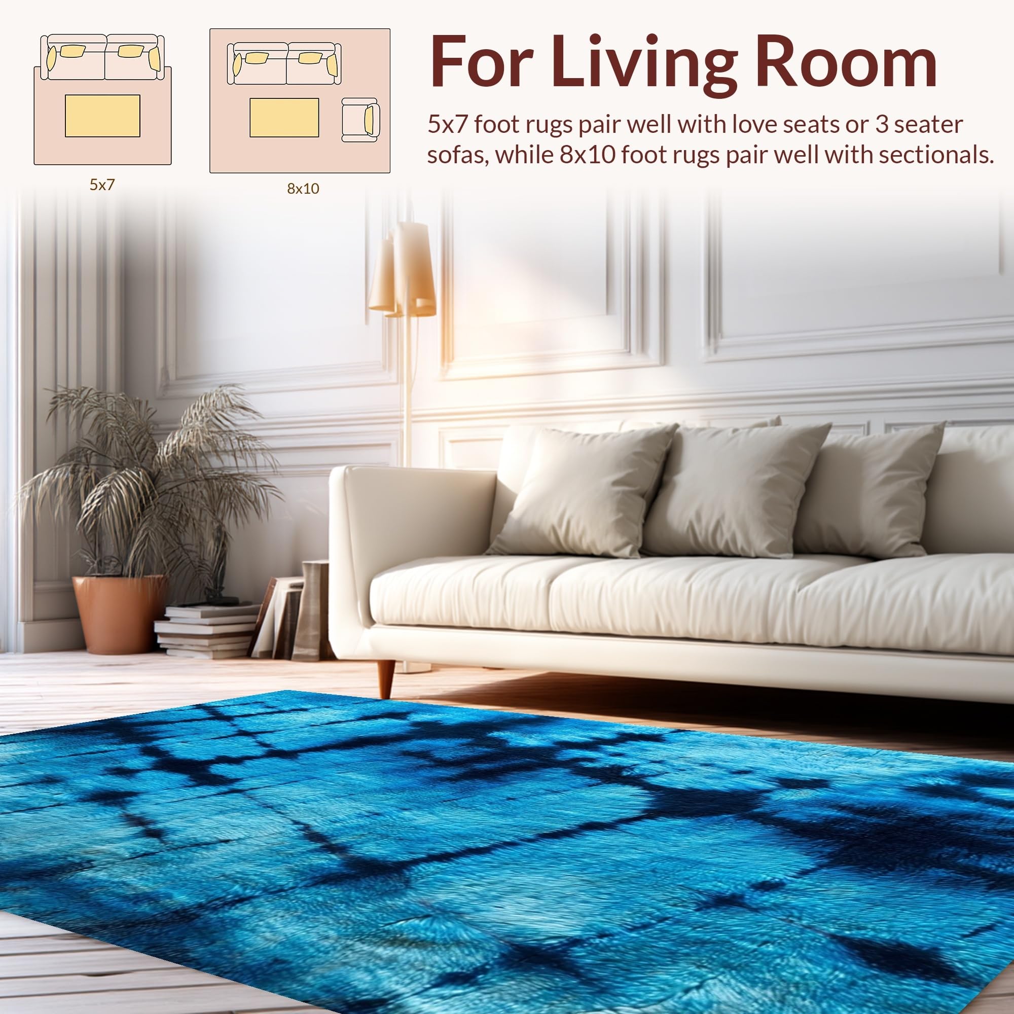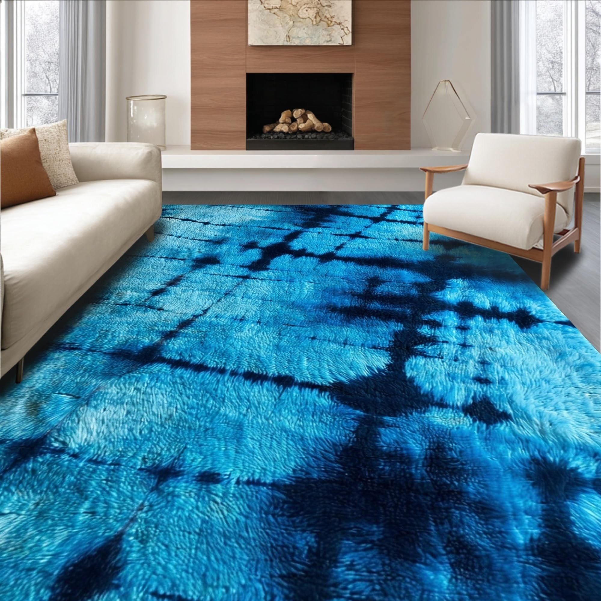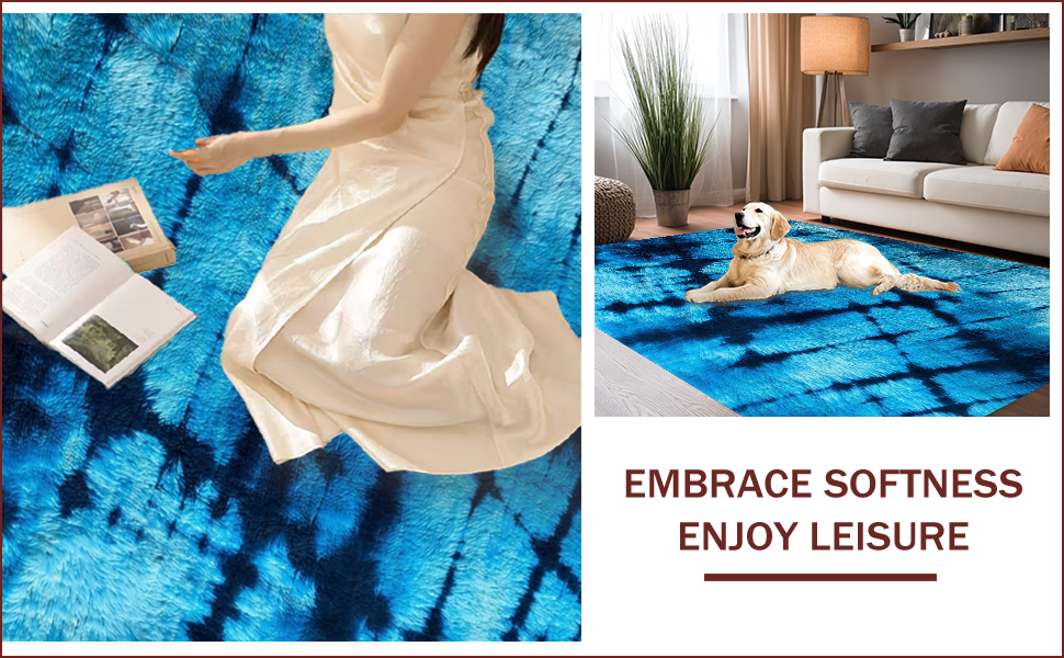 Ultra Soft Area Rug, Non Slip, Stain Resistant, Washable Area Rugs for Living Room, Bedroom, Fluffy Dark Blue Dorm Rug with Cozy Vegan Aesthetic(Blue) Overview: