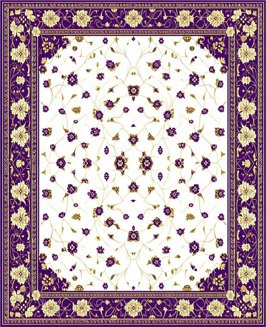 Fluffy Rectangle Abstract Floral Motifs(Purple)
