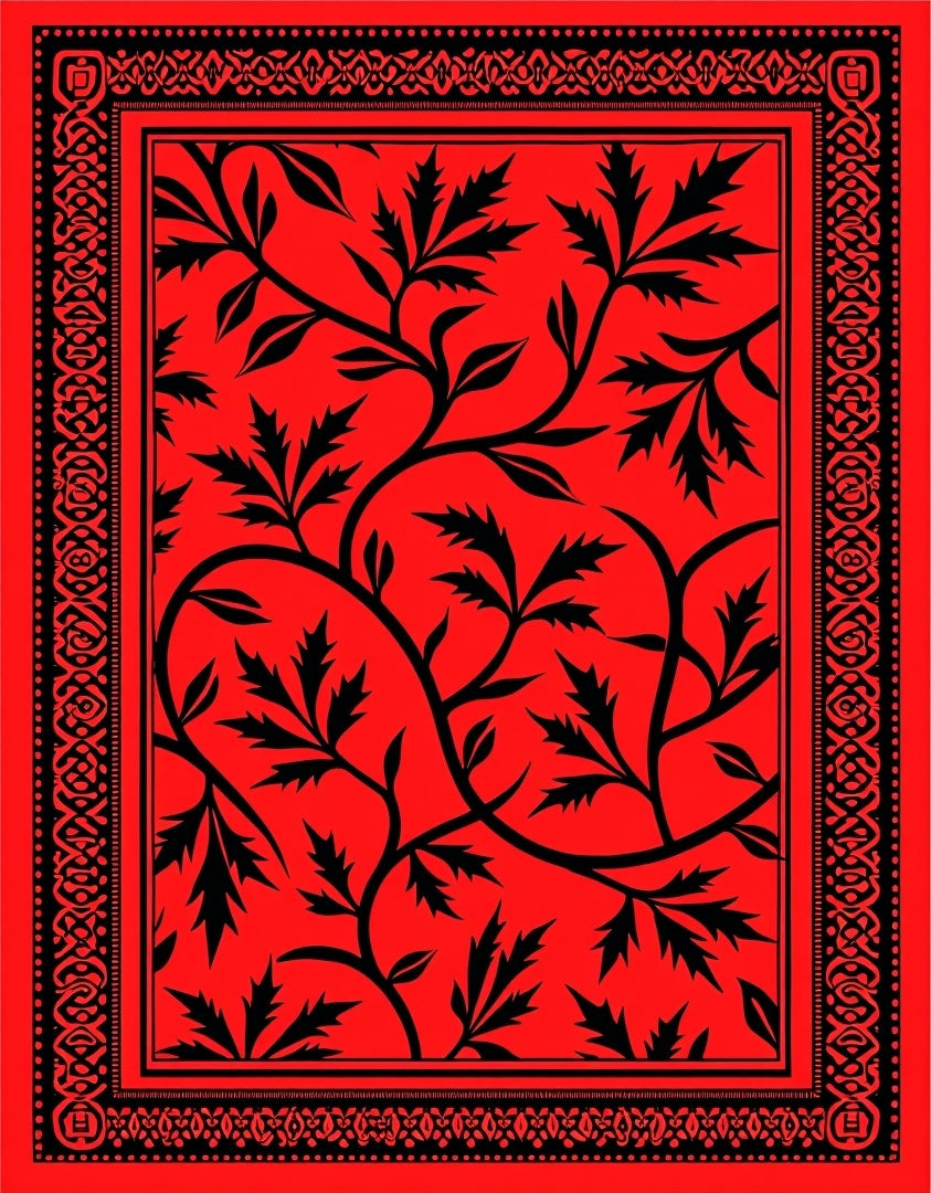 Folk Art Holly Vine with Intertwined Motifs(Red)