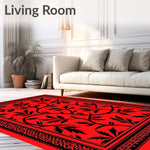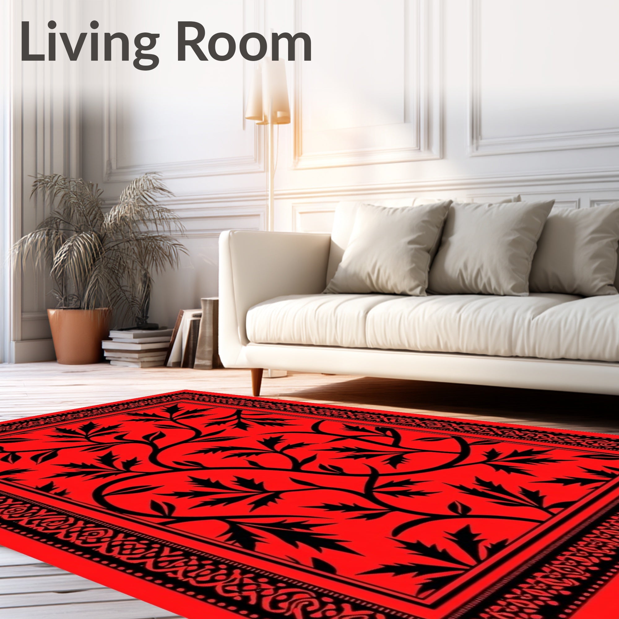 Flatwoven High Traffic Area Rug, Folk Art Holly Vine with Intertwined Motifs, Non Slip, Stain Resistant, Washable Area Rugs for Living Room, Bedroom (Red) Overview: