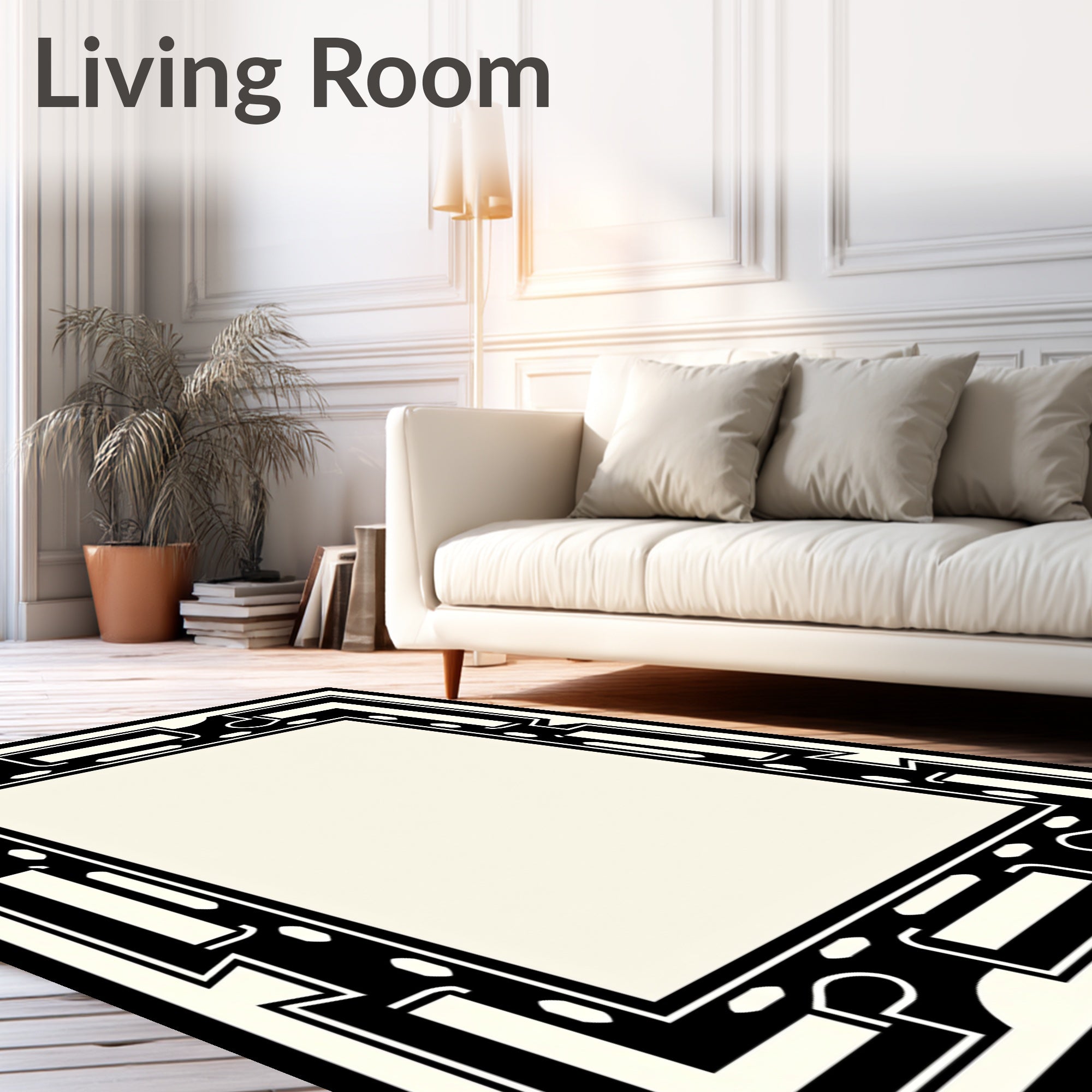 Ultra Soft Area Rug, Non Slip, Stain Resistant, Washable Area Rugs for Living Room, Bedroom, Framed Contour Decorative Artistic(Black) Overview:
