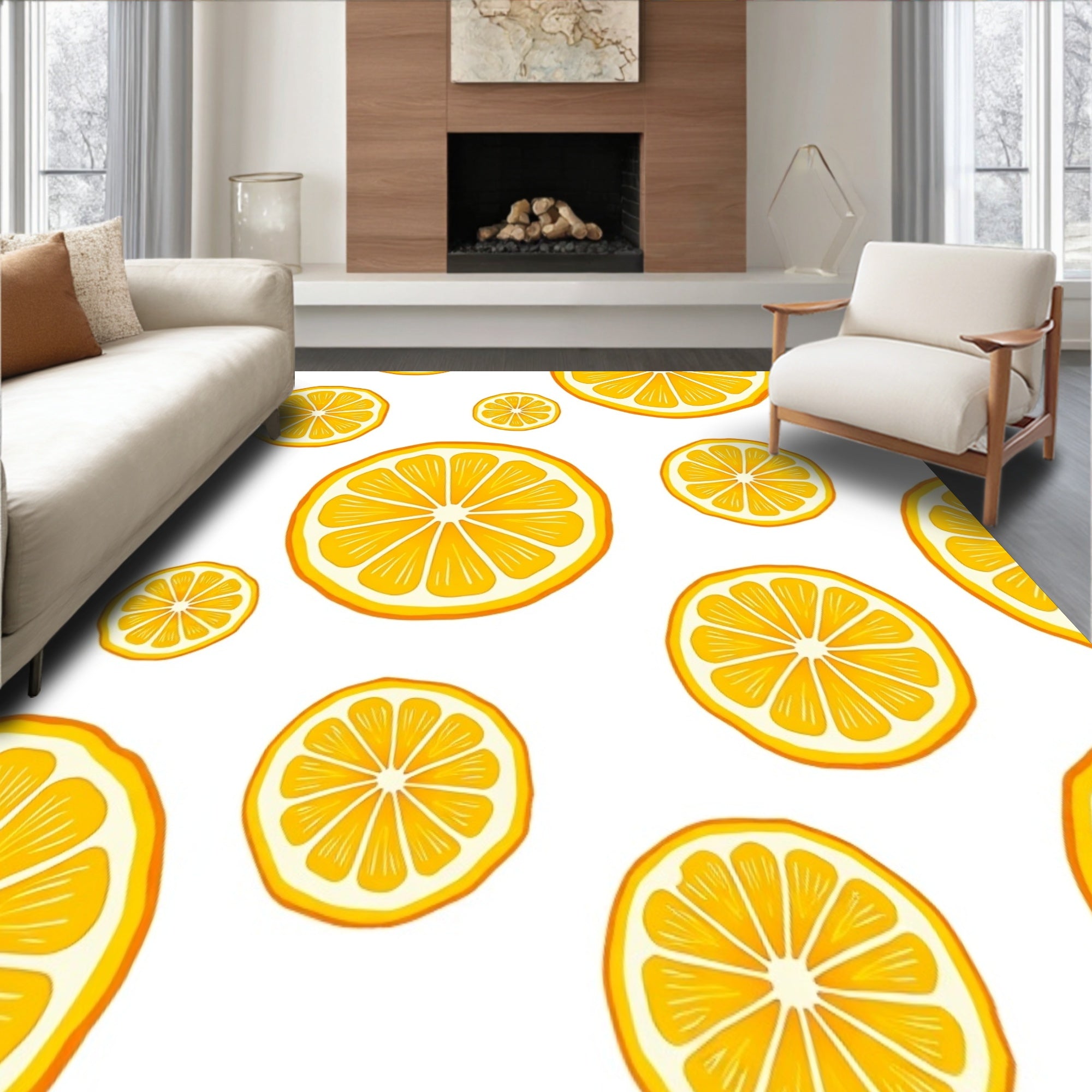 Ultra Soft Area Rug, Non Slip, Stain Resistant, Washable Area Rugs for Living Room, Bedroom, Fresh Citrus Zest Botanical Art Decorative Anti Fatigue(Yellow) Overview: