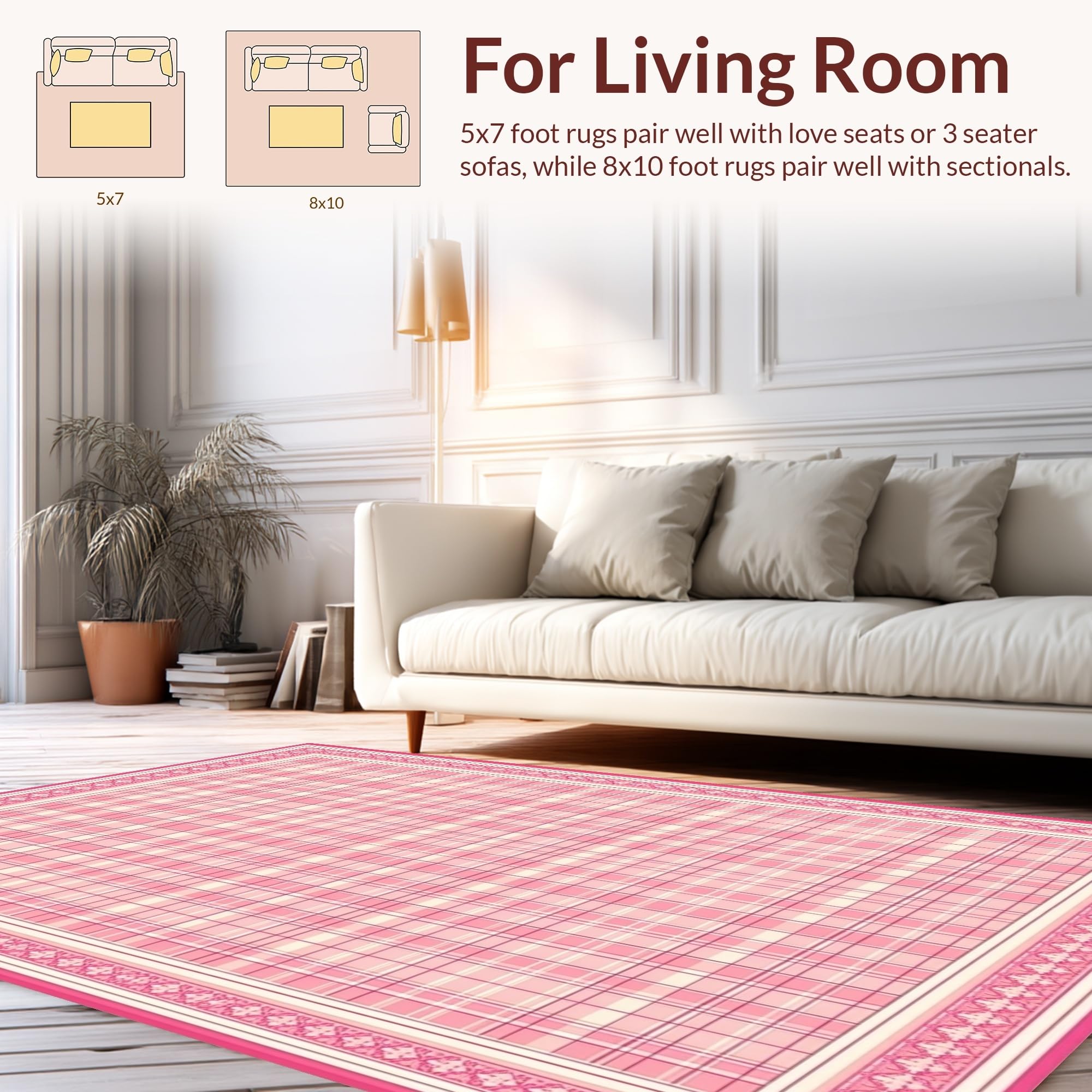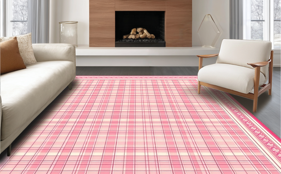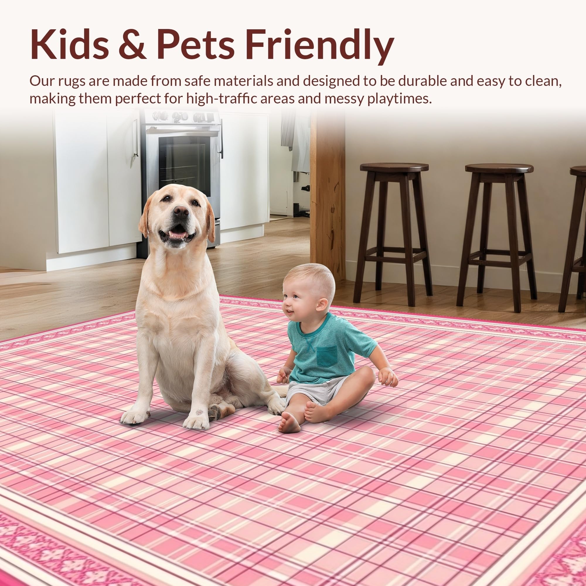 Ultra Soft Area Rug, Non Slip, Stain Resistant, Washable Area Rugs for Living Room, Bedroom, Fresh Contemporary Graphic Patterns(Pink) Overview: