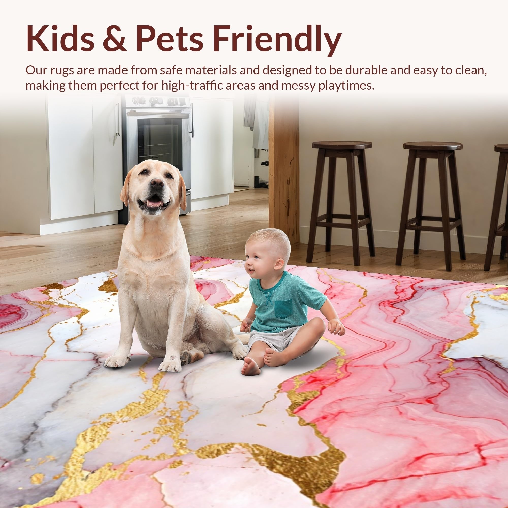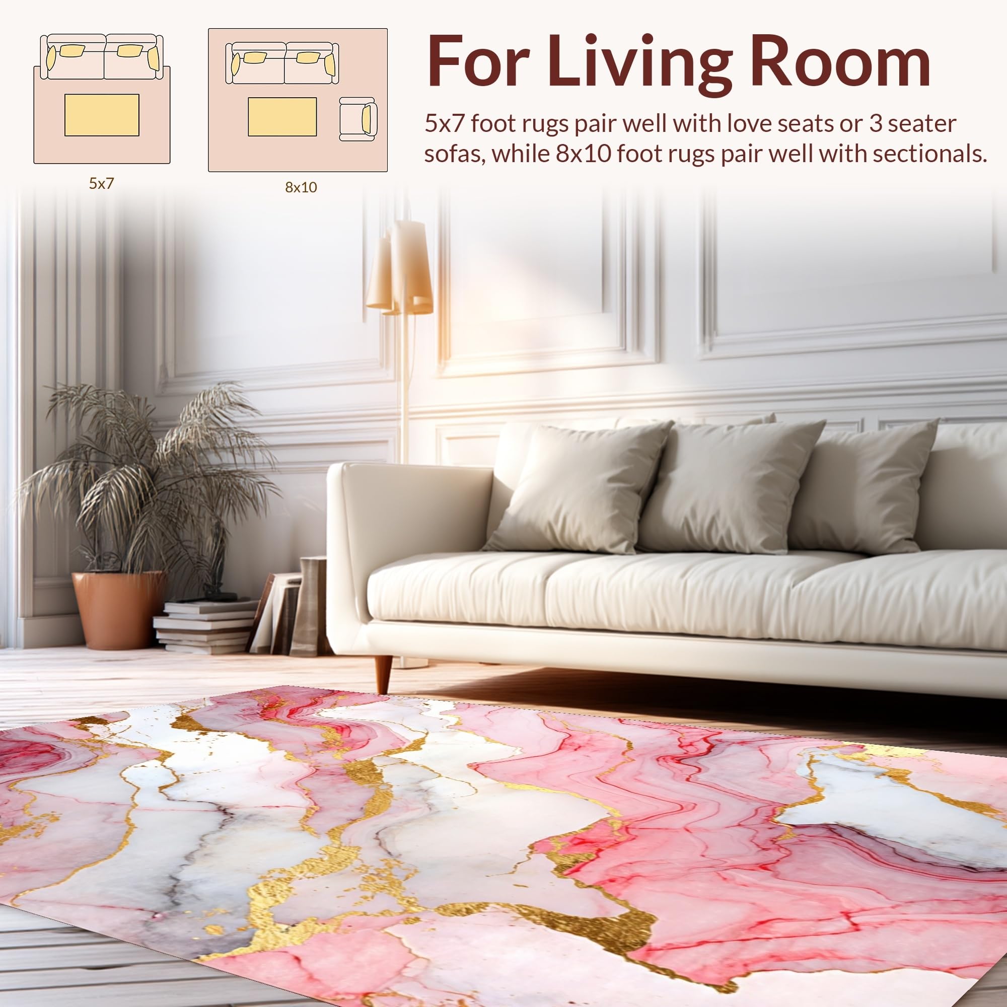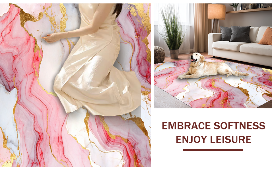 Ultra Soft Area Rug, Non Slip, Stain Resistant, Washable Area Rugs for Living Room, Bedroom, Fresh Contemporary Marble Visuals(Pink) Overview: