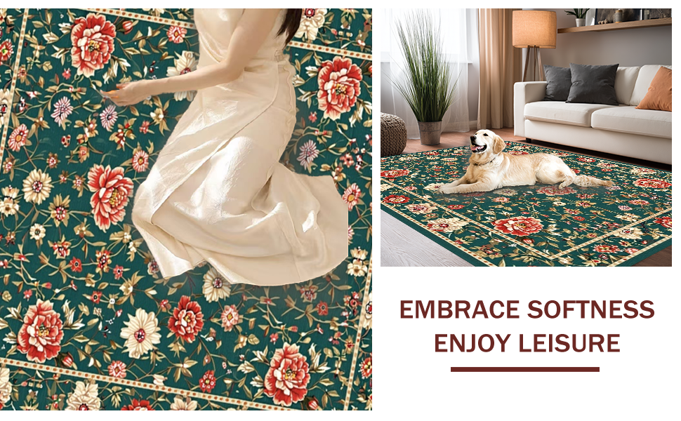 Ultra Soft Area Rug, Non Slip, Stain Resistant, Washable Area Rugs for Living Room, Bedroom, Fresh Eco-Friendly Floral Style(Green) Overview: