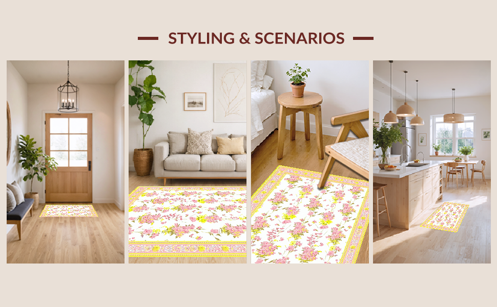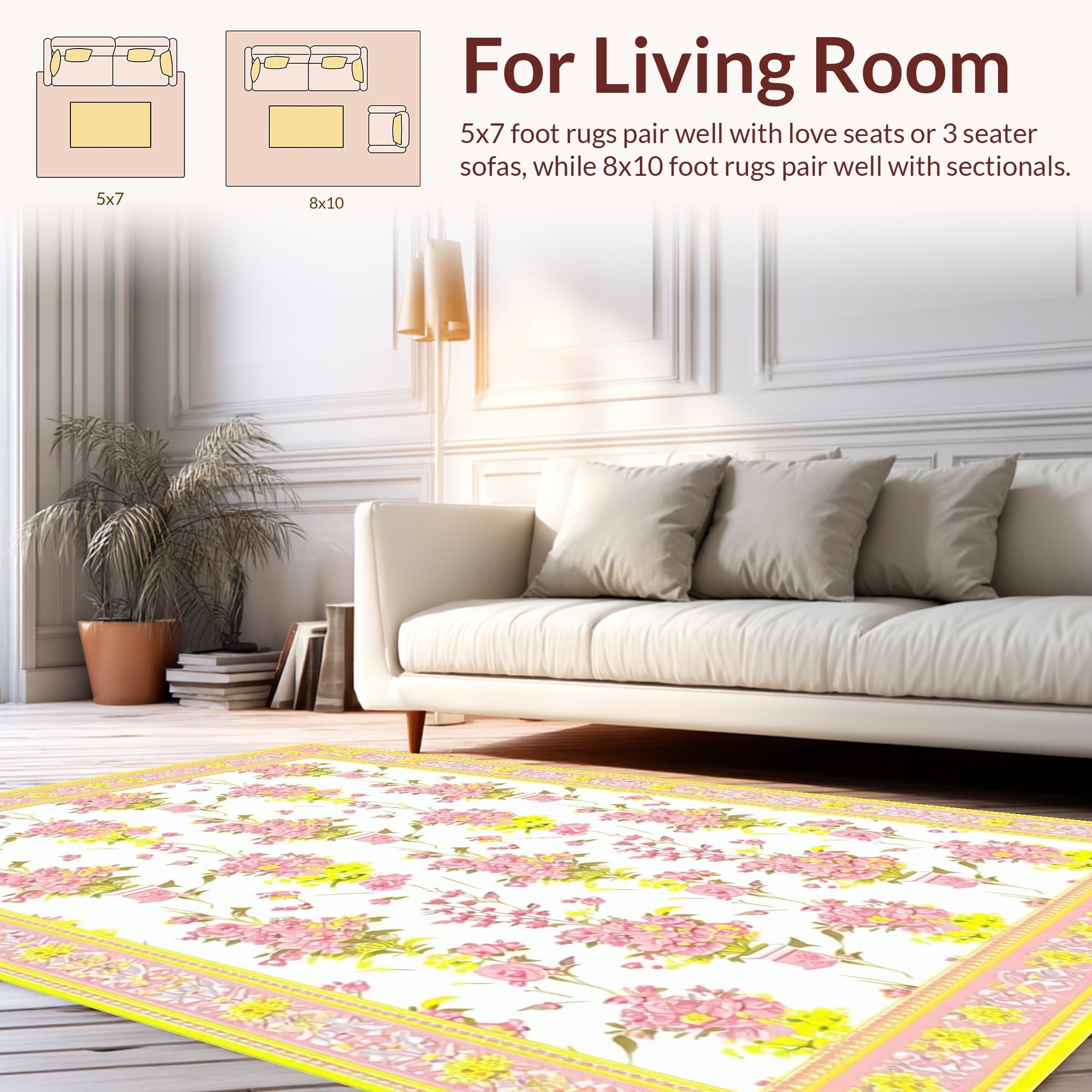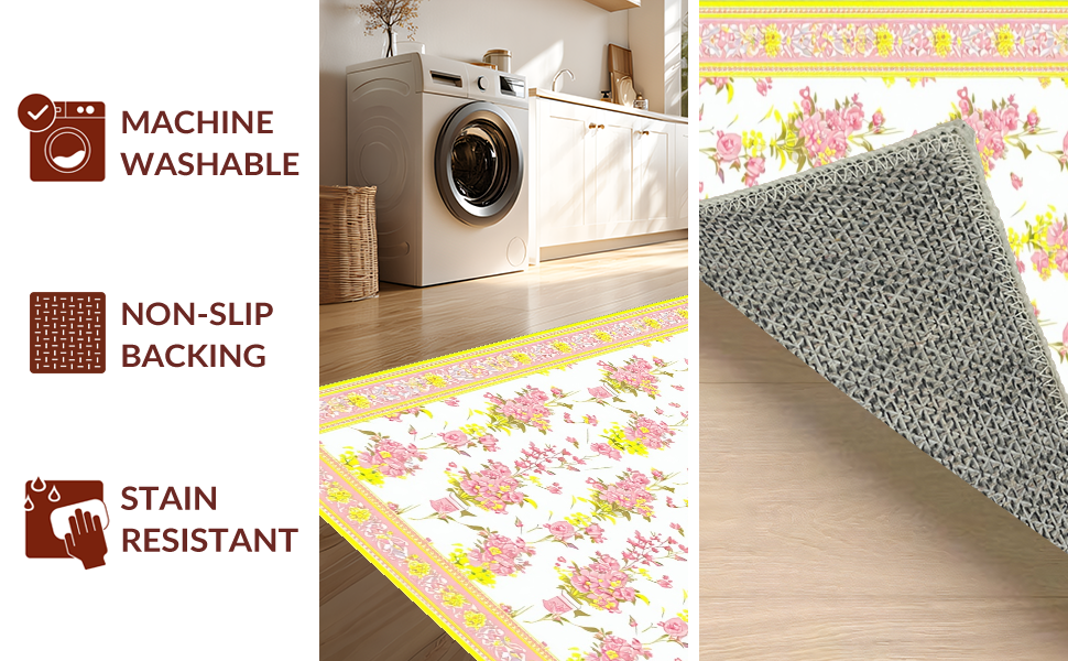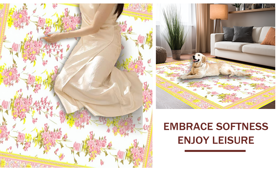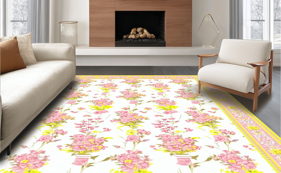Ultra Soft Area Rug, Non Slip, Stain Resistant, Washable Area Rugs for Living Room, Bedroom, Fresh Floral Aesthetic for Home(Pink) Overview: