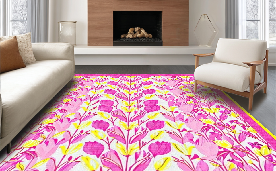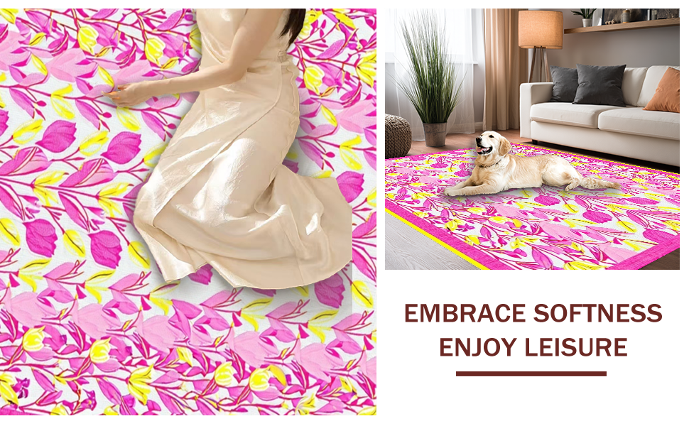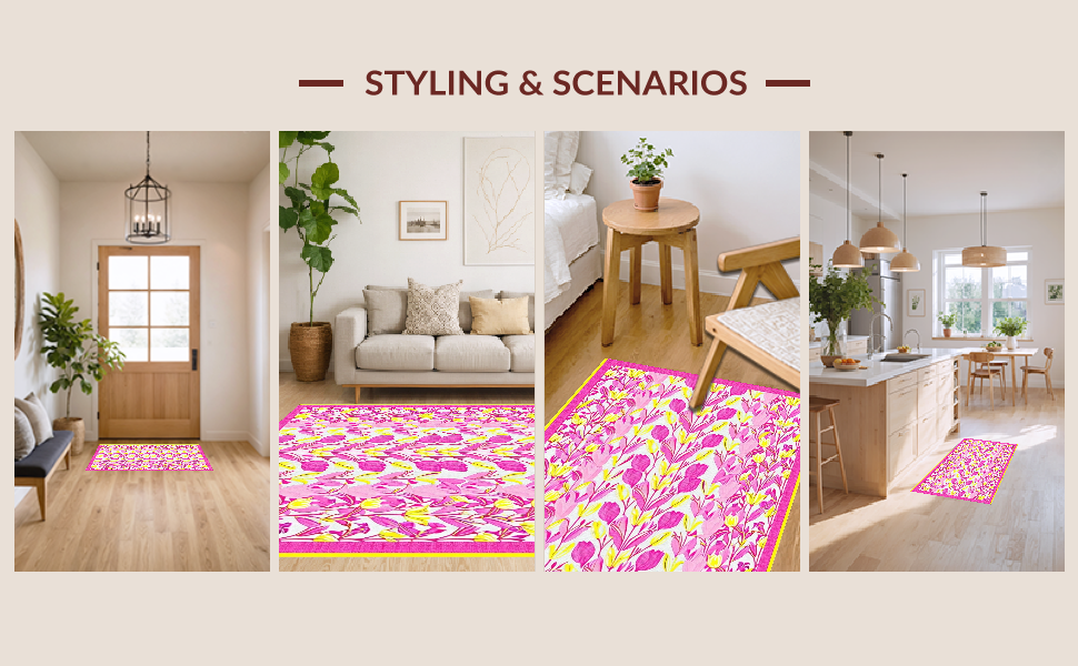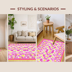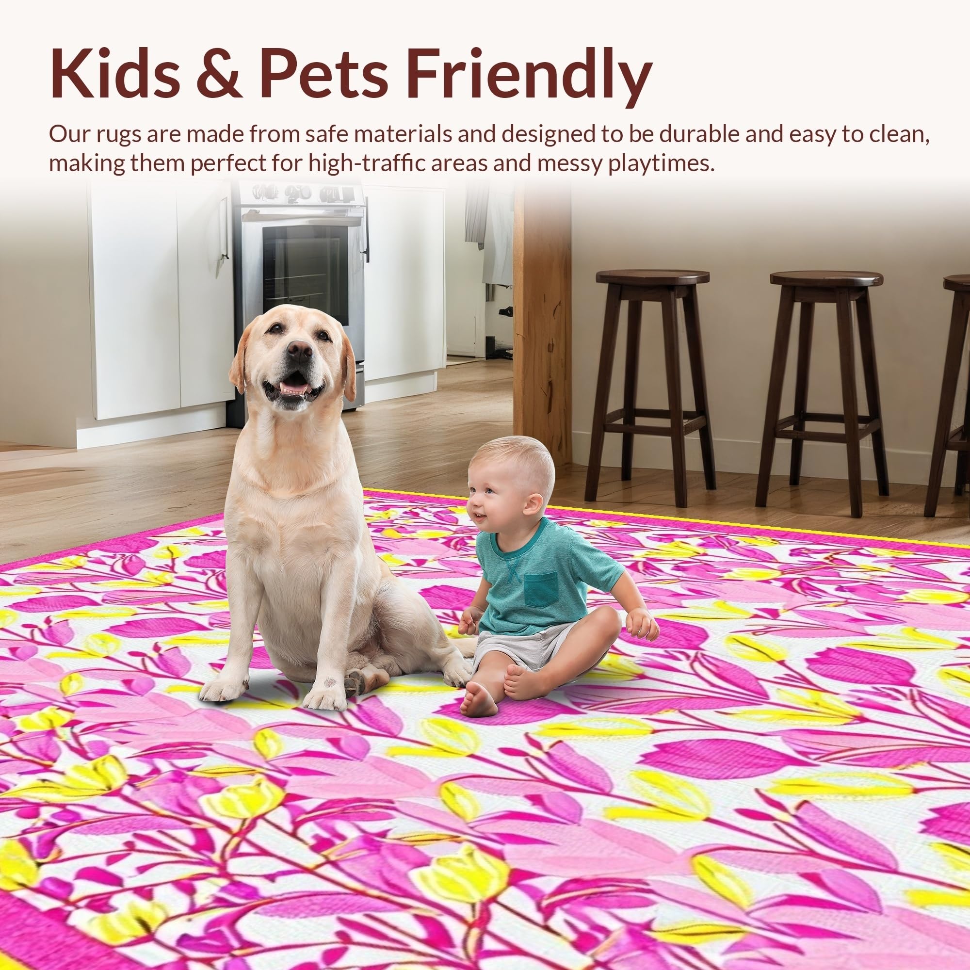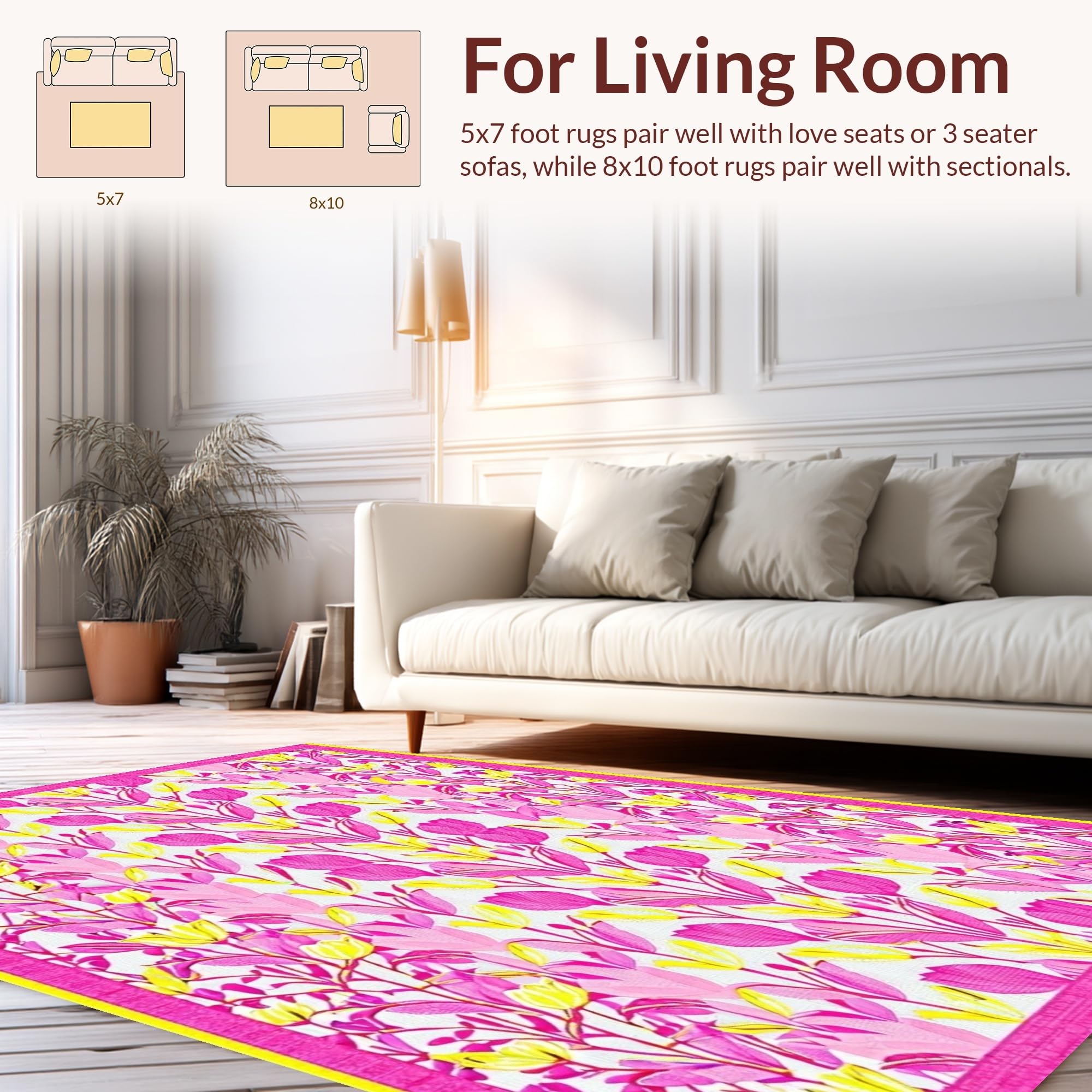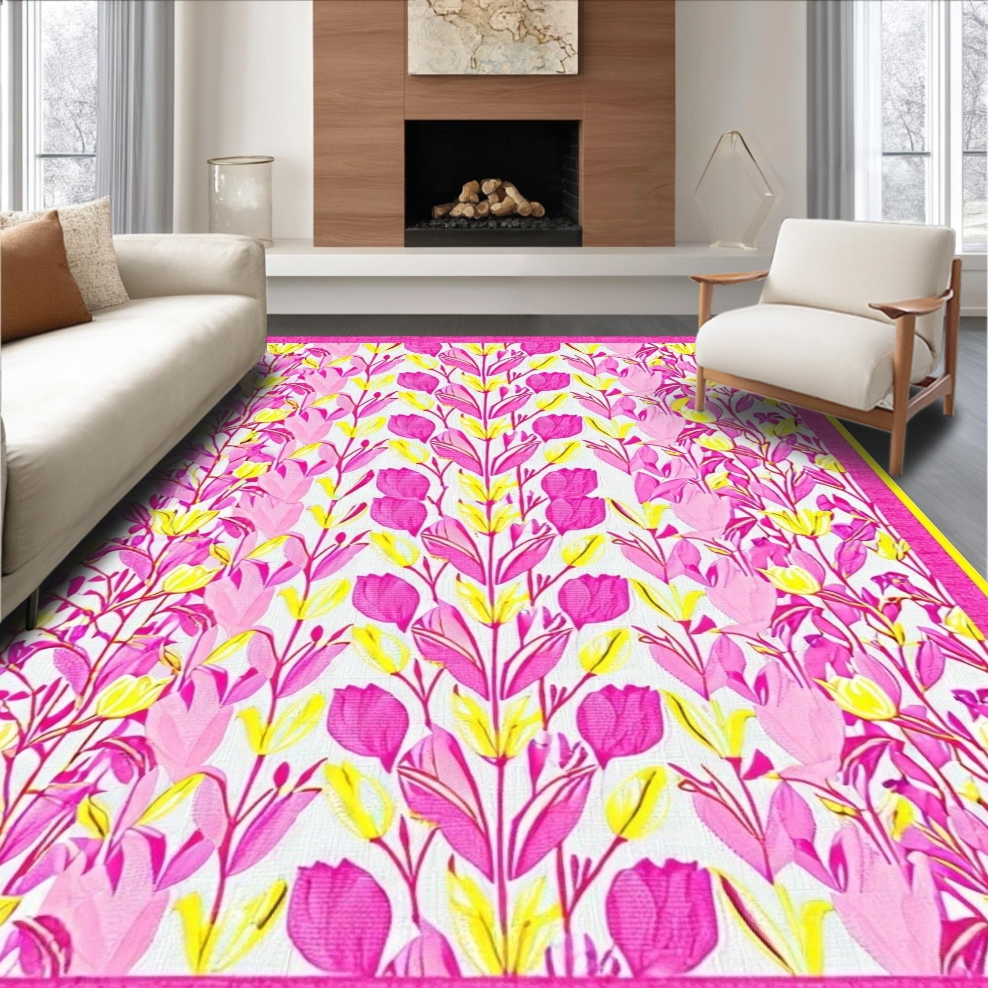 Ultra Soft Area Rug, Non Slip, Stain Resistant, Washable Area Rugs for Living Room, Bedroom, Fresh Seasonal Botanical Theme(Pink) Overview: