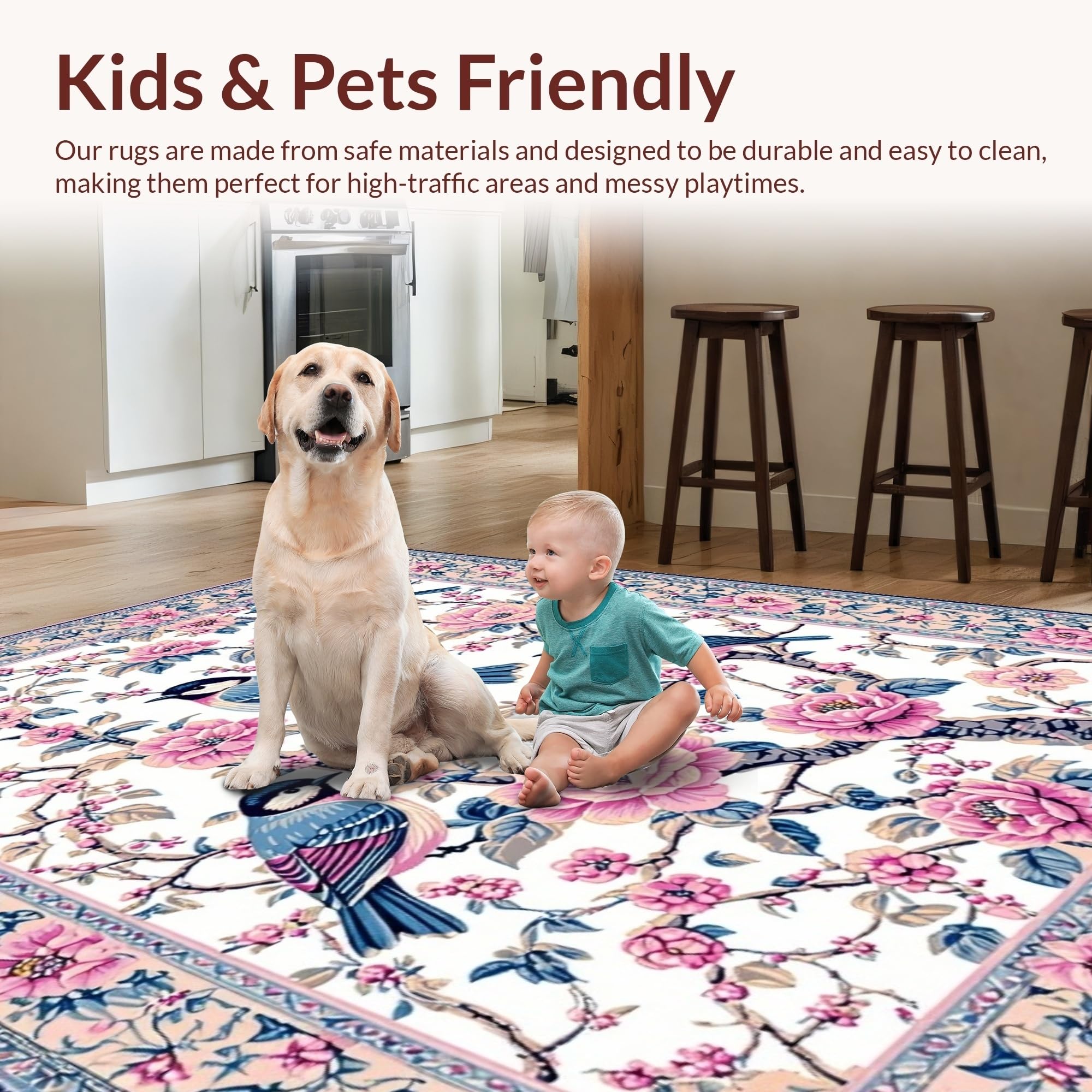 Ultra Soft Area Rug, Non Slip, Stain Resistant, Washable Area Rugs for Living Room, Bedroom, Fresh Springtime Floral Harmony(White) Overview:
